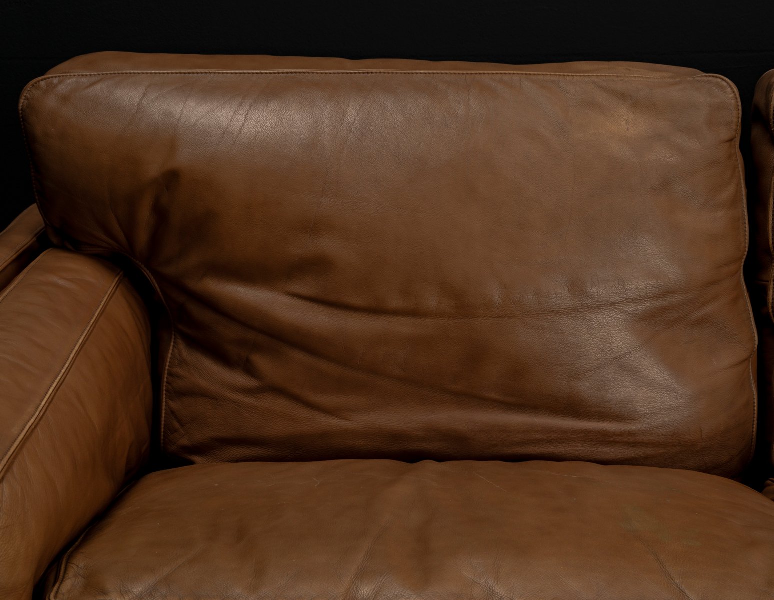 Pierluigi Cerri, born in Milan in 1939, studied at the Politecnico di Milano and co-founded Gregotti Associati, a firm that gained international recognition through numerous competitions in architecture and urban planning. In addition to his work as an architect and designer, Cerri shaped the visual communication of major brands such as Prada, Ferrari, and Pirelli. He has received numerous awards for his work, including the prestigious Compasso d'Oro. Cerri's design for the Frau Frau sofa combines a clear formal language with the highest level of craftsmanship. The design, the fine cognac leather, and the fully removable cushions combine exceptional seating comfort with timeless elegance. Thanks to its tranquil appeal and high-quality craftsmanship, the sofa can be easily integrated into a wide variety of living spaces, from classic to modern. It exudes presence yet understated character, a true piece of furniture with character. The sofa has undergone professional cleaning and disinfection, and the leather has been carefully restored to maintain its beauty.