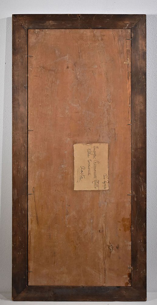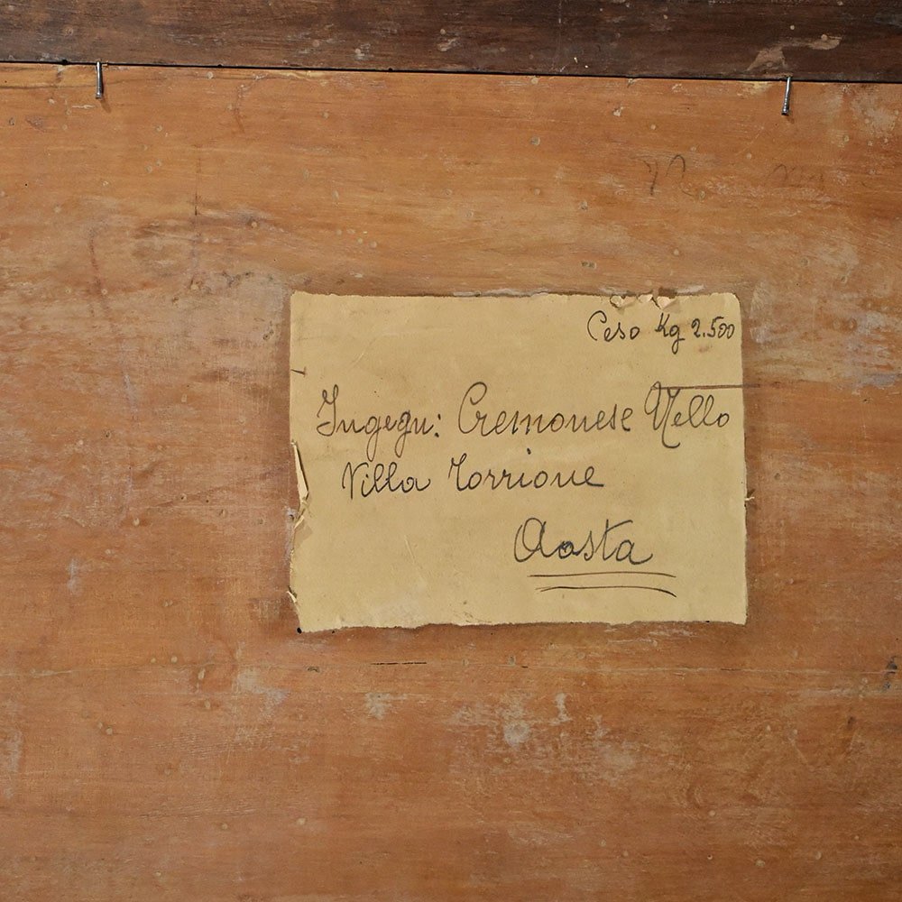 Attached to the back of the painting is a label with the address of the person who owned the work in the past.