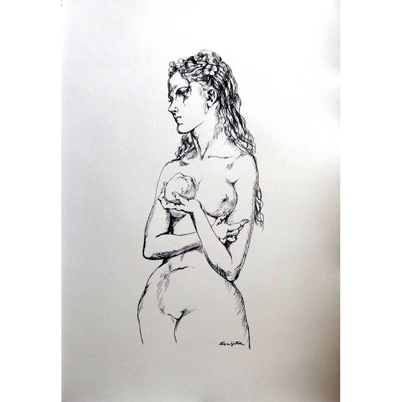 Léonard Foujita Eve With an Apple Original Lithograph Signed in the plate 50 x 38 cm Reference: Sylvie Buisson #60.29 Léonard Foujita (French/Japanese, 1886–1968) The Three Graces Original Lithograph 76 x 54 cm Signed in the plate Reference: Sylvie Buisson réf. #60.28 (vol. 1, p.531) Léonard Foujita (French/Japanese, 1886–1968) Léonard Tsugouharu Foujita was a painter and printmaker, born in Edogawa, Tokyo. He received his formal training at the Imperial School of Fine Arts, quickly attracting success, with commissions from the emperors of Korea and Japan. In 1913, he traveled to Paris, immediately befriending many of the leading painters of the day, including Pablo Picasso, Juan Gris, Henri Matisse, Henri Rousseau, and Chaim Soutine. Born 1886 (Meiji 19) to a family of a medical officer at Shin-Ogawamachi, Shinjuku-Ku, Tokyo. Following the advise of Mori Ōgai who was a superior to Foujita’s father, Foujita entered the Tokyo School of Fine Arts (now Tokyo University of the Arts). Not fully satisfied with the main trend of bright pleinairisme-style paintings, Foujita found himself in France at the age of 26 in 1913. In 1929, Foujita returned temporarily to Japan for the first time in 16 years to attend the exhibition celebrating his triumphant return. He continued his activities in Japan after 1933. When the Sino‐Japanese war started, with the intention to contribute to his own country, he concentrated in painting large-sized war paintings. Such activities were harshly criticized after the war by the art circles accusing him as a collaborator of the war. Foujita left Japan taking responsibility of such activities. Returning to Paris with the intention of never going back to Japan, Foujita acquired French nationality in 1955. In 1959 at the age of 72, Catholic Church baptized Foujita at the Cathédrale Notre-Dame de Reims and christened Léonard. In his later years, wanting to show the gratitude to the Cathédrale Notre-Dame de Reims, he intended a construction of a chapel, la chapelle Notre-Dame-de-la-Paix (also known as the Foujita Chapel). He died two years after the completion of the chapel.