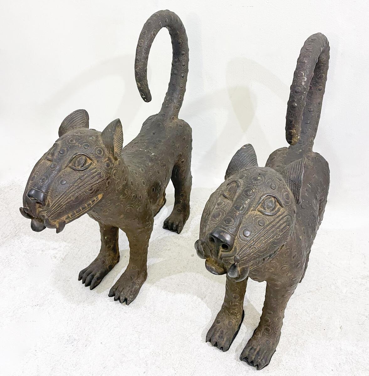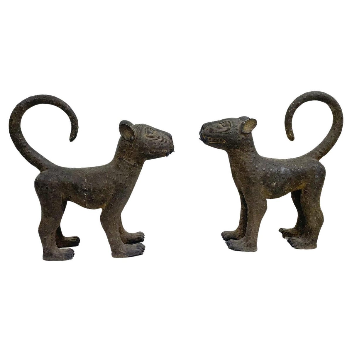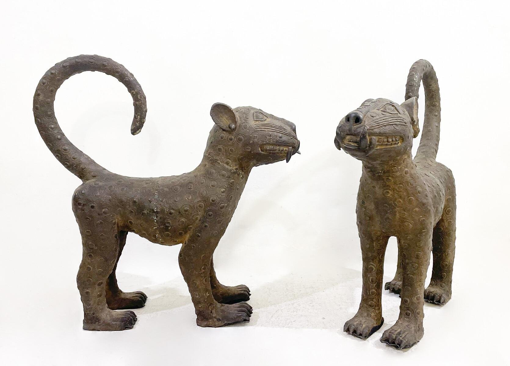 Leoparden aus Bronze, 1930er, 2er Set