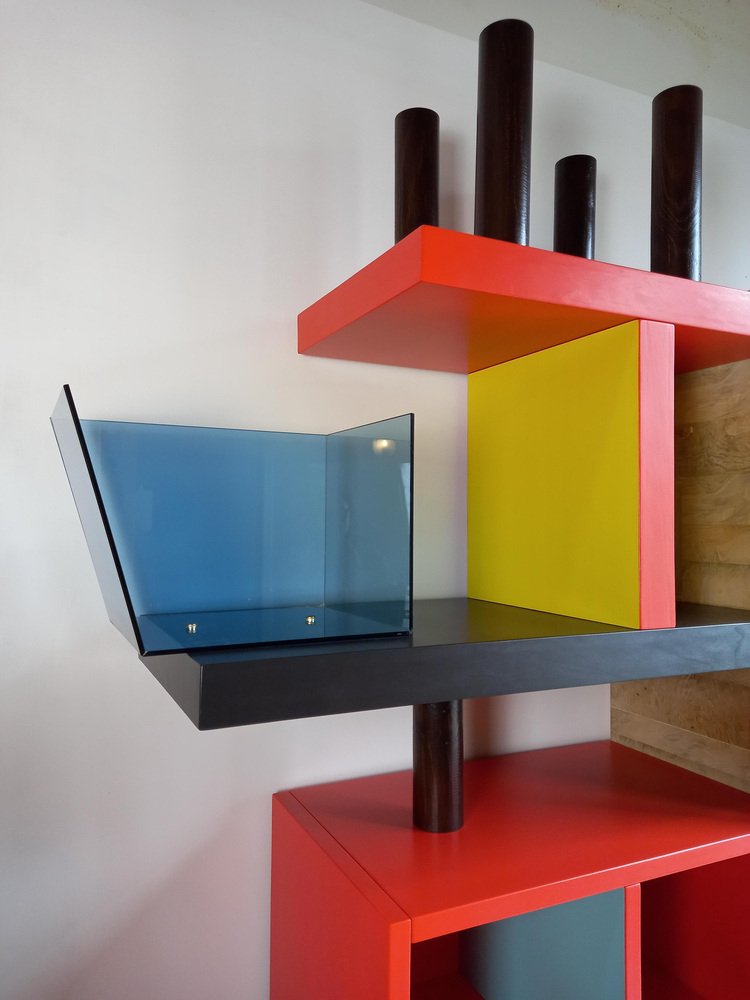 Ettore Sottsass designed this beautiful bookcase in 1985 and in 1992 the executive project for the Meccani Arredamenti company, Cascina (Pisa) Italy.