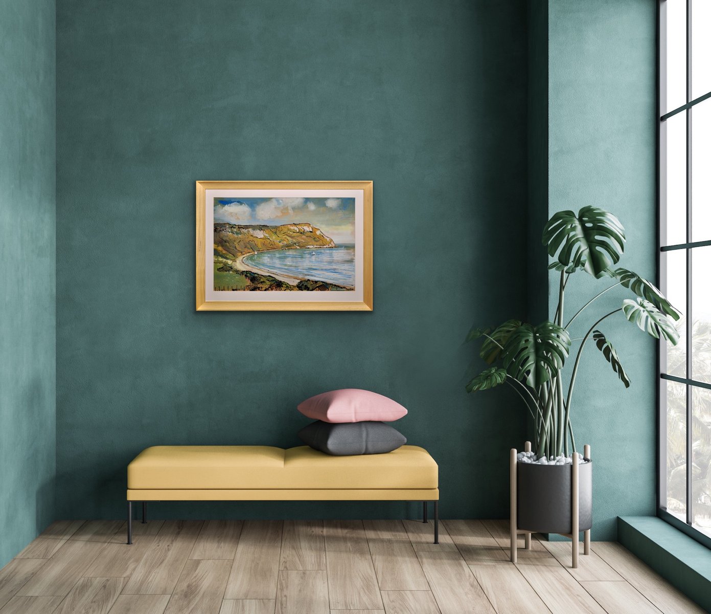 The painting is presented and supplied in a sympathetic contemporary frame (which is shown in these photographs), mounted using conservation materials and behind non-reflective Artglass AR 70™.