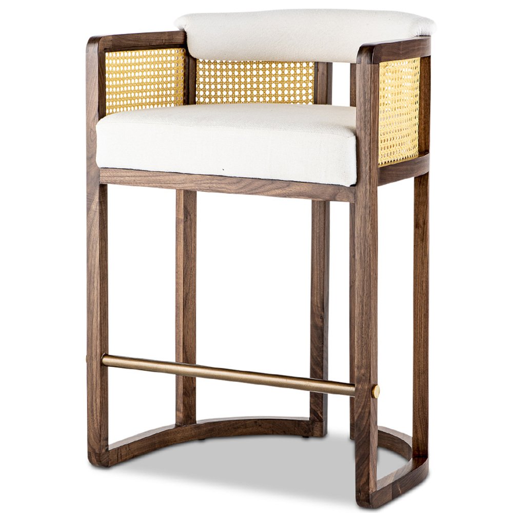Featuring a solid Walnut timber frame with an inset of woven mesh rattan, the Livingston Chair exudes natural sophistication. The seat is upholstered in a premium off-white linen fabric, while the finishing touches include solid brass fixings for an added hint of luxury.