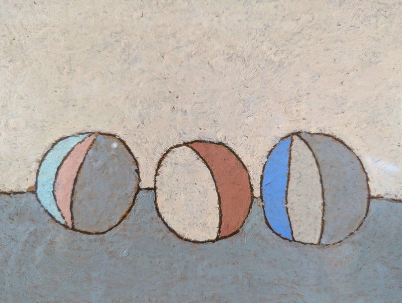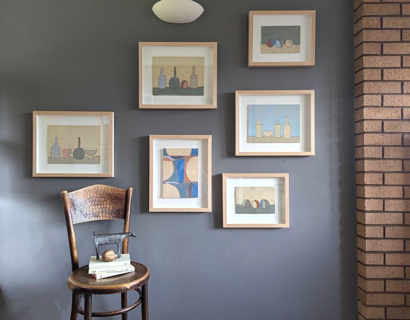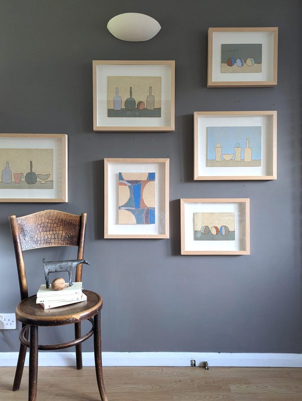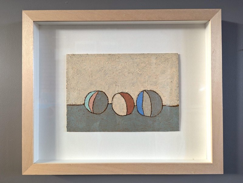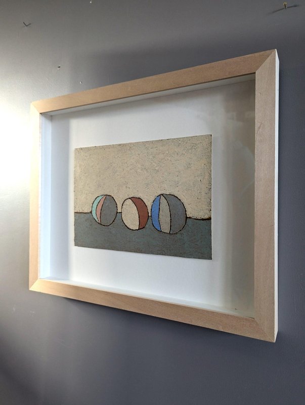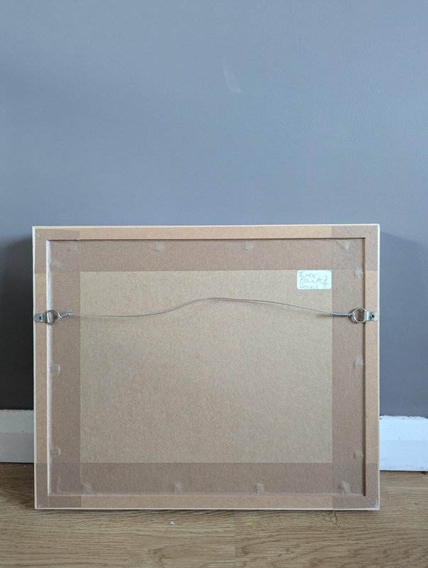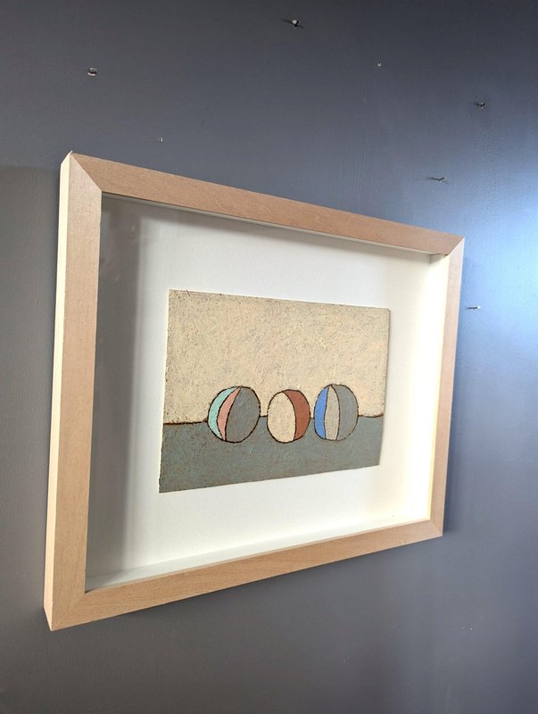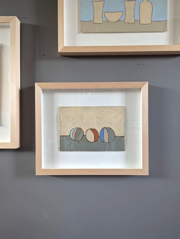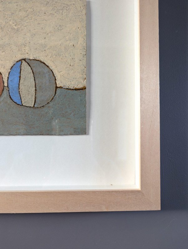 An engaging and powerful abstract composition by British contemporary artist Lloyd Durling, executed in graphite, oil pastel, and oil stick on Arches paper, and dated 2022. This painting embodies a sense of tranquillity and balance through its thoughtful composition, muted tones, and textured surface. The abstracted forms, reminiscent of stones or play objects, evoke a quiet, contemplative mood. Its minimalist style invites the viewer to appreciate the beauty of simple shapes and subtle variations in colour and texture, making it a poetic and meditative piece. This painting is a beautifully restrained and contemplative work, blending abstract and minimalist elements. The soft colour palette, organic textures, and balanced composition create a peaceful, introspective atmosphere. Its simplicity invites viewers to engage with the subtle details and textures, making it a quietly compelling piece. Lloyd is based in London and his practice is painting-based. His first international solo show was in 2010 at Golden in Chicago and he has exhibited widely throughout Europe, Asia and the US. In 2017 he was awarded a Pollock-Krasner Foundation grant. Lloyd’s works are held in public and private collections worldwide, including the Whitworth Art Gallery and Museum, Progressive collection, America and Nomura Bank, Japan. This painting is mounted and presented in a light wood frame, behind glass. Both painting and frame are in excellent condition. Size: 32 x 39 cm (including frame)