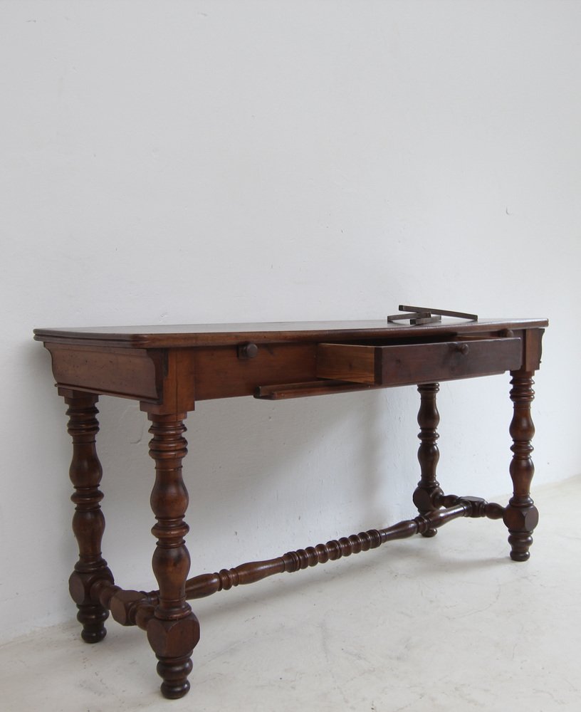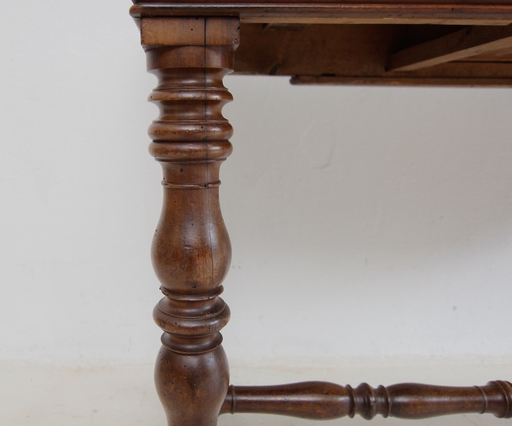 Ein seltenes authentisches Stück mit leichten altersbedingten Gebrauchsspuren, darunter alte Holzwurmkanäle (nicht aktiv!). Stabil und einsatzbereit. Auszugsstangen erneuert. Die Oberfläche wurde sorgfältig gereinigt, ohne die schöne Patina zu zerstören. Anschließend mit Wachs poliert.