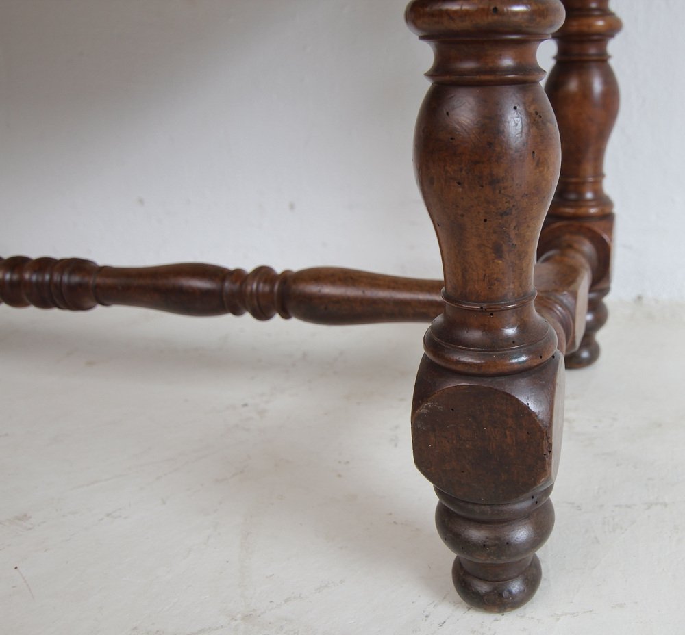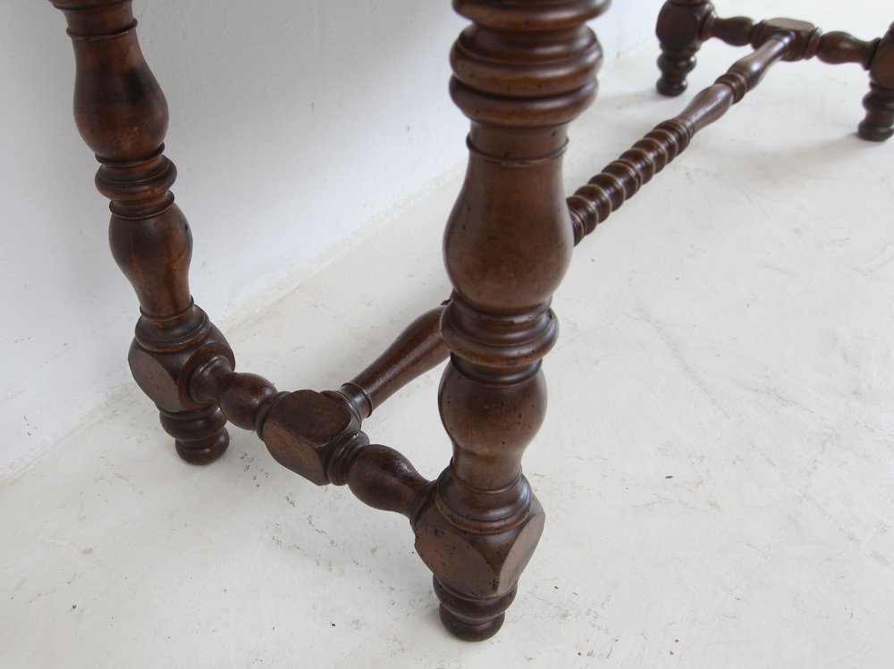 Louis-Philippe-Schneidetisch ('table de tailleur' oder 'table de coupe') mit Meterstäben. Frankreich, Mitte 19. Jahrhundert. Nussbaum mit ausgezeichneter Patina.