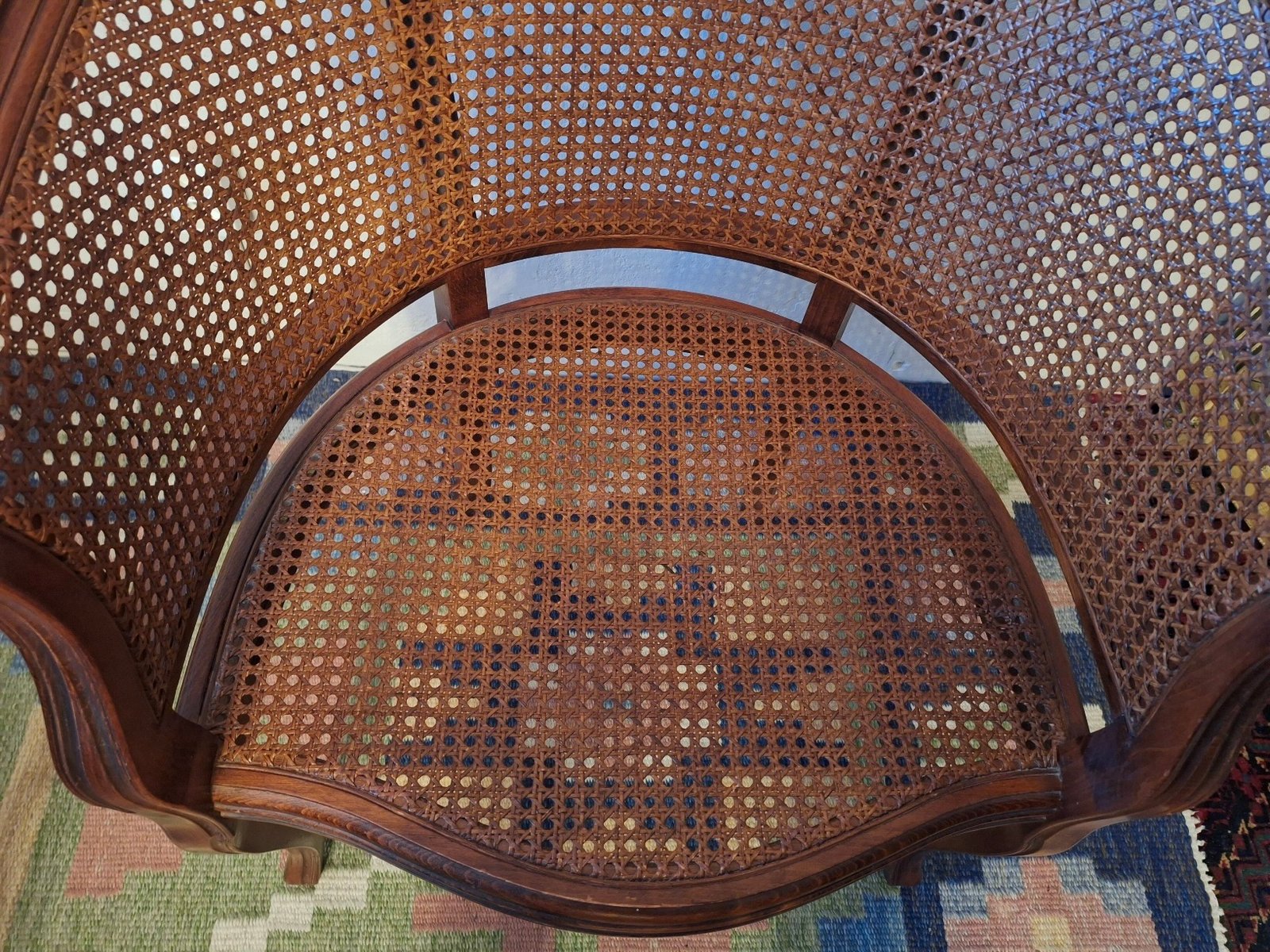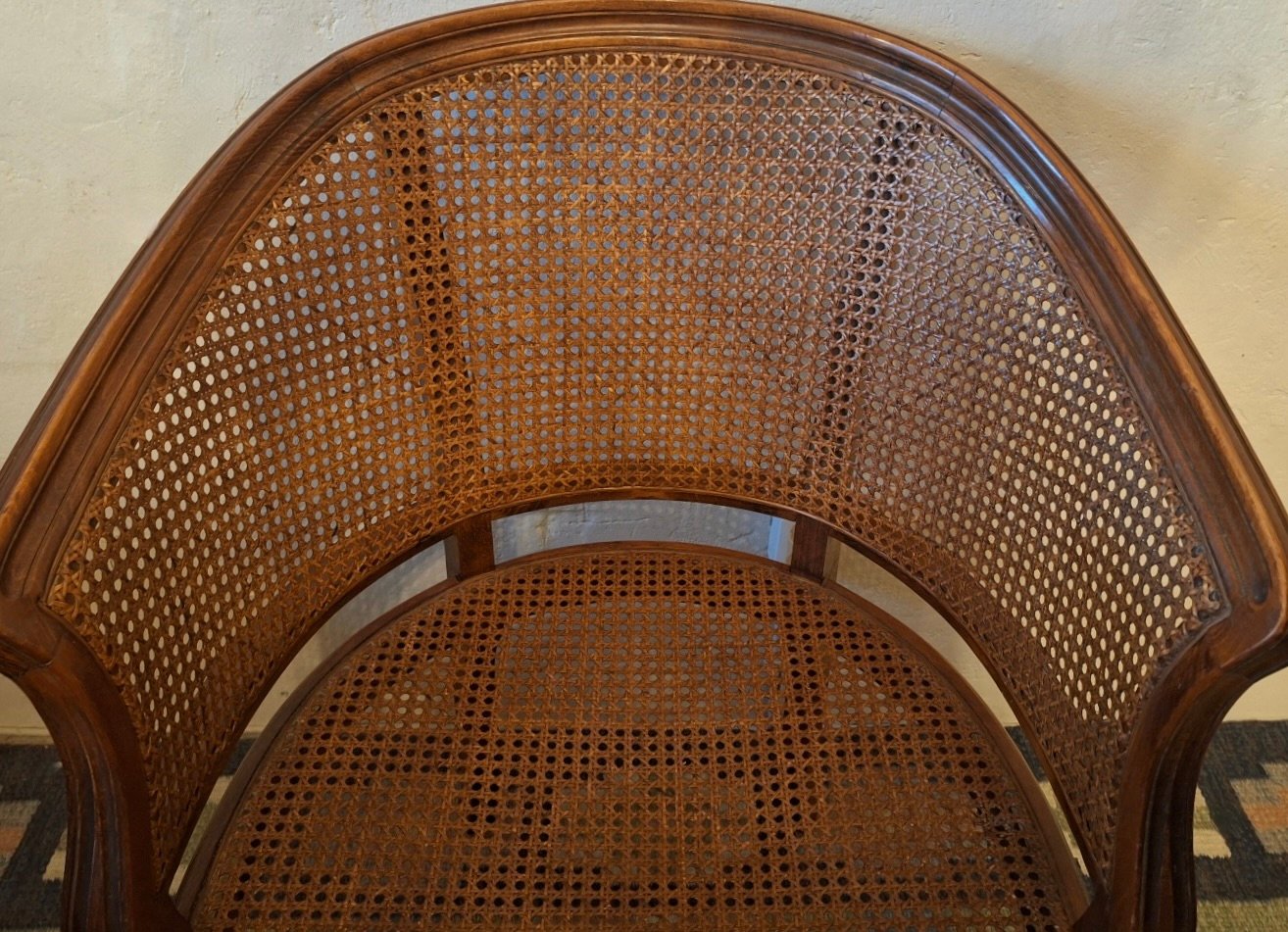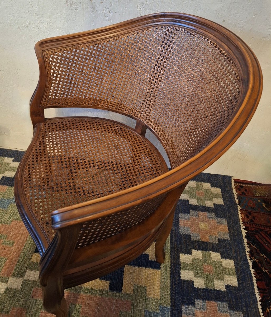 Louis XV Halbmond Sessel aus Rattan & Hartholz, Frühes 20. Jh.