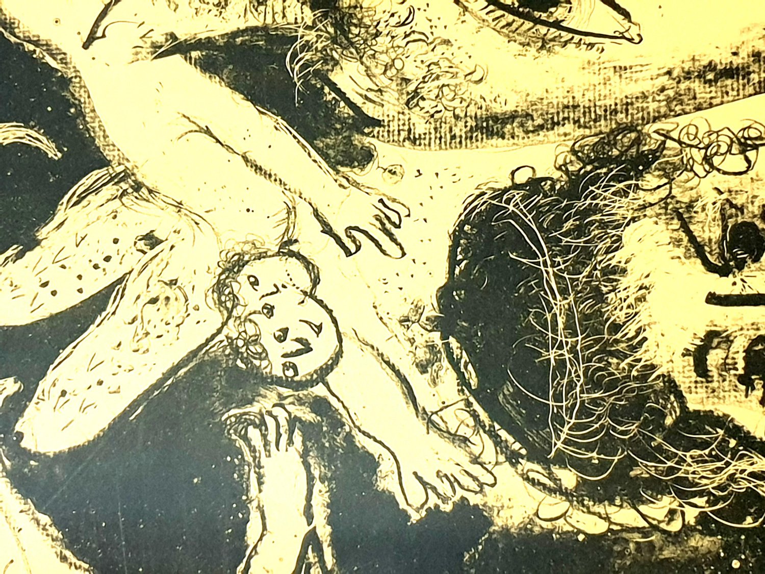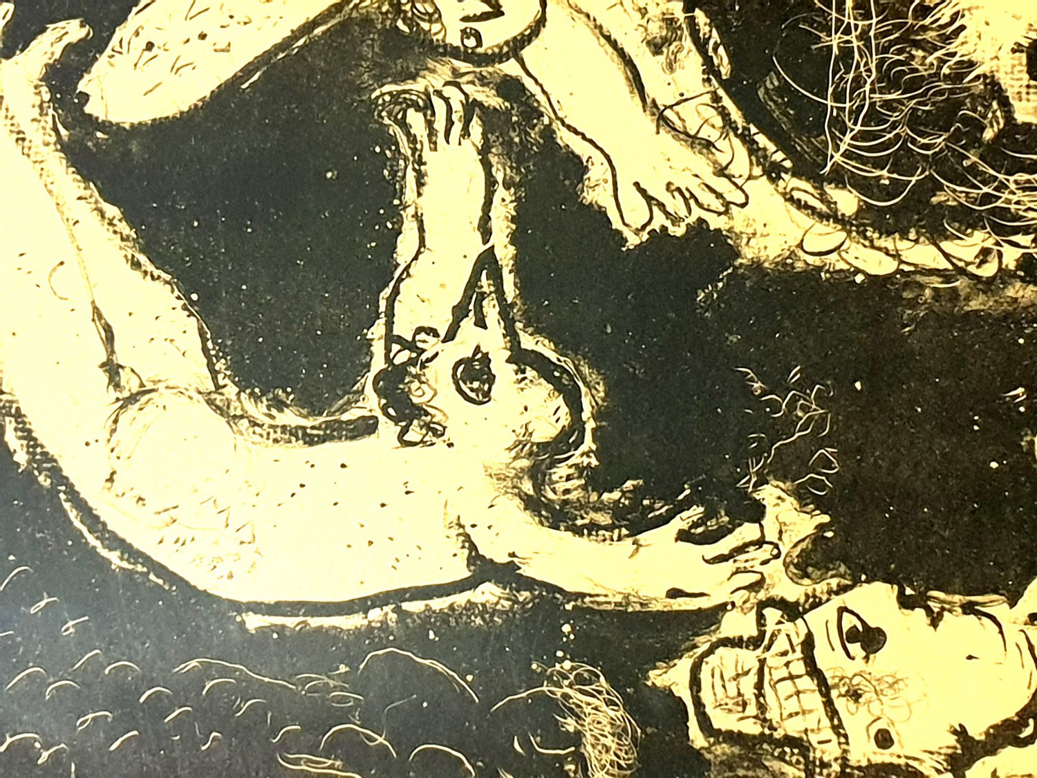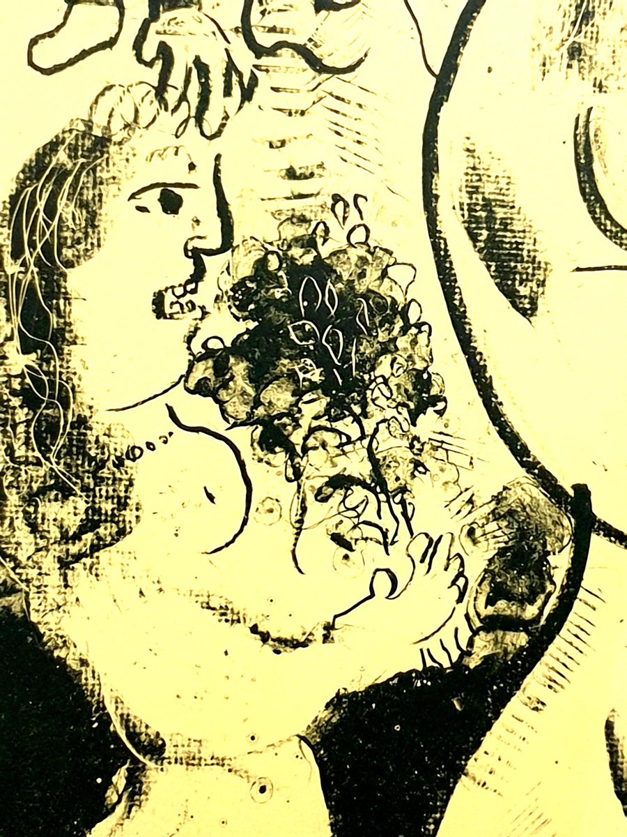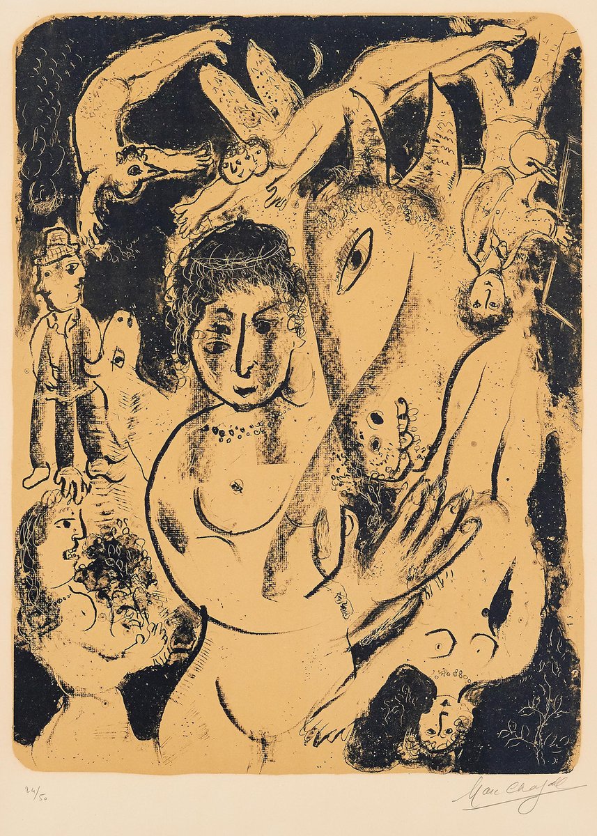 Marc Chagall - Ein Sommernachtstraum - Original Handsigned Lithographie 1975 Maße: 97.5 x 71,5 cm Handsigniert und nummeriert Auflage: 50 Referenz: Mourlot 745 Marc Chagall (geb. 1887) Marc Chagall wurde 1887 in Weißrussland geboren und entwickelte früh ein Interesse an der Kunst. Nach einem Studium der Malerei verließ er 1907 Russland und ging nach Paris, wo er in einer Künstlerkolonie am Rande der Stadt lebte. Indem er seine persönliche, traumhafte Bildsprache mit Anklängen an den damals in Frankreich populären Fauvismus und Kubismus verband, schuf Chagall seine nachhaltigsten Werke - darunter Ich und das Dorf (1911) -, von denen einige in den Ausstellungen des Salon des Indépendants zu sehen waren. Nachdem er 1914 zu einem Besuch nach Witebsk zurückgekehrt war, hielt der Ausbruch des Ersten Weltkriegs Chagall in Russland gefangen. Er kehrte 1923 nach Frankreich zurück, war aber gezwungen, das Land und die Verfolgung durch die Nazis während des Zweiten Weltkriegs zu verlassen. In den USA fand Chagall Asyl und beschäftigte sich mit Bühnen- und Kostümdesign, bevor er 1948 nach Frankreich zurückkehrte. In seinen späteren Jahren experimentierte er mit neuen Kunstformen und erhielt zahlreiche großformatige Auftragsarbeiten. Chagall starb 1985 in St.-Paul-de-Vence. Das Dorf Marc Chagall wurde am 7. Juli 1887 in einer kleinen chassidischen Gemeinde am Rande von Witebsk, Weißrussland, geboren. Sein Vater war Fischhändler, und seine Mutter betrieb einen kleinen Laden im Dorf. Als Kind besuchte Chagall die jüdische Volksschule, wo er Hebräisch und die Bibel lernte, bevor er später die russische öffentliche Schule besuchte. Während dieser Zeit begann er, die Grundlagen des Zeichnens zu erlernen, aber was vielleicht noch wichtiger ist, er saugte die Welt um ihn herum auf und speicherte die Bilder und Themen, die in den meisten seiner späteren Werke vorkommen sollten. Im Alter von 19 Jahren schrieb sich Chagall an einer privaten, rein jüdischen Kunstschule ein und begann seine formale Ausbildung in Malerei, wobei er kurzzeitig bei dem Porträtkünstler Yehuda Pen studierte. Allerdings verließ er die Schule nach einigen Monaten und zog 1907 nach St. Petersburg, um an der Kaiserlichen Gesellschaft zum Schutz der schönen Künste zu studieren. Im folgenden Jahr schrieb er sich an der Svanseva-Schule ein und lernte bei dem Bühnenbildner Léon Bakst, dessen Arbeiten in Sergei Diaghilevs Ballets Russes zu sehen waren. Diese frühe Erfahrung sollte sich auch für Chagalls spätere Karriere als wichtig erweisen. Trotz dieser formalen Unterweisung und der weit verbreiteten Popularität des Realismus in Russland zu dieser Zeit, etablierte Chagall bereits seinen eigenen persönlichen Stil, der eine eher traumhafte Unwirklichkeit und die Menschen, Orte und Bilder, die ihm am Herzen lagen, beinhaltete. Einige Beispiele aus dieser Zeit sind sein Fenster Witebsk (1908) und Meine Verlobte mit schwarzen Handschuhen (1909), das Bella Rosenfeld darstellte, mit der er sich kürzlich verlobt hatte. Der Bienenstock Trotz seiner Romanze mit Bella ermöglichte 1911 eine Zuwendung des russischen Parlamentsmitglieds und Kunstmäzens Maxim Binaver Chagall den Umzug nach Paris. Nachdem er sich kurzzeitig im Viertel Montparnasse niedergelassen hatte, zog Chagall weiter in eine Künstlerkolonie, die als La Ruche ("Der Bienenkorb") bekannt war, wo er begann, Seite an Seite mit abstrakten Malern wie Amedeo Modigliani und Fernand Léger sowie dem Avantgarde-Dichter Guillaume Apollinaire zu arbeiten. Auf ihr Drängen hin und unter dem Einfluss des wild gewordenen Fauvismus und Kubismus hellte Chagall seine Palette auf und drängte seinen Stil immer weiter von der Realität weg. Ich und das Dorf (1911) und Hommage an Apollinaire (1912) gehören zu seinen frühen Pariser Werken, die weithin als seine erfolgreichste und repräsentativste Periode gelten. Obwohl sich sein Werk stilistisch von dem seiner kubistischen Zeitgenossen abhob, stellte Chagall von 1912 bis 1914 mehrere Gemälde auf der jährlichen Ausstellung Salon des Indépendants aus, wo Werke von Künstlern wie Juan Gris, Marcel Duchamp und Robert Delaunay für Aufsehen in der Pariser Kunstwelt sorgten. Chagalls Popularität begann sich über La Ruche hinaus zu verbreiten, und im Mai 1914 reiste er nach Berlin, um bei der Organisation seiner ersten Einzelausstellung in der Galerie Der Sturm zu helfen. Chagall blieb in der Stadt, bis die hochgelobte Ausstellung im Juni eröffnet wurde. Dann kehrte er nach Witebsk zurück, nicht ahnend, welche schicksalhaften Ereignisse ihn erwarten würden. Krieg, Frieden und Revolution Im August 1914 verhinderte der Ausbruch des Ersten Weltkriegs Chagalls Pläne, nach Paris zurückzukehren. Der Konflikt tat jedoch wenig, um den Fluss seiner kreativen Produktion zu stoppen. Stattdessen verschaffte er sich lediglich einen direkten Zugang zu den Kindheitsszenen, die für seine Arbeit so wichtig waren, wie in Gemälden wie Jude in Grün (1914) und Über Witebsk (1914) zu sehen. In seinen Gemälden aus dieser Zeit finden sich gelegentlich auch Bilder, die die Auswirkungen des Krieges auf die Region zeigen, wie in Verwundeter Soldat (1914) und Marschieren (1915). Aber trotz der Härten des Lebens während des Krieges sollte sich diese Zeit für Chagall auch als eine freudige Zeit erweisen. Im Juli 1915 heiratete er Bella, und sie brachte im folgenden Jahr eine Tochter, Ida, zur Welt. Ihr Erscheinen in Werken wie Birthday (1915), Bella und Ida am Fenster (1917) und einigen seiner "Liebespaare"-Gemälde geben einen Eindruck von der Insel häuslicher Glückseligkeit, die Chagall inmitten des Chaos war. Um dem Militärdienst zu entgehen und bei seiner neuen Familie zu bleiben, nahm Chagall eine Stelle als Angestellter im Ministerium für Kriegswirtschaft in St. Petersburg an. Dort begann er mit der Arbeit an seiner Autobiografie und tauchte auch in die lokale Kunstszene ein, wo er sich unter anderem mit dem Schriftsteller 