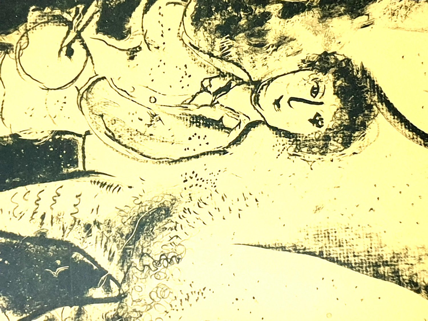 Marc Chagall - A Midsummer Night's dream - Original Handsigned Lithograph 1975 Dimensions: 97.5 x 71.5 cm Handsigned and numbered Edition: 50 Reference: Mourlot 745 Marc Chagall (born in 1887) Marc Chagall was born in Belarus in 1887 and developed an early interest in art. After studying painting, in 1907 he left Russia for Paris, where he lived in an artist colony on the city’s outskirts. Fusing his own personal, dreamlike imagery with hints of the fauvism and cubism popular in France at the time, Chagall created his most lasting work—including I and the Village (1911)—some of which would be featured in the Salon des Indépendants exhibitions. After returning to Vitebsk for a visit in 1914, the outbreak of WWI trapped Chagall in Russia. He returned to France in 1923 but was forced to flee the country and Nazi persecution during WWII. Finding asylum in the U.S., Chagall became involved in set and costume design before returning to France in 1948. In his later years, he experimented with new art forms and was commissioned to produce numerous large-scale works. Chagall died in St.-Paul-de-Vence in 1985. The Village Marc Chagall was born in a small Hassidic community on the outskirts of Vitebsk, Belarus, on July 7, 1887. His father was a fishmonger, and his mother ran a small sundries shop in the village. As a child, Chagall attended the Jewish elementary school, where he studied Hebrew and the Bible, before later attending the Russian public school. He began to learn the fundamentals of drawing during this time, but perhaps more importantly, he absorbed the world around him, storing away the imagery and themes that would feature largely in most of his later work. At age 19 Chagall enrolled at a private, all-Jewish art school and began his formal education in painting, studying briefly with portrait artist Yehuda Pen. However, he left the school after several months, moving to St. Petersburg in 1907 to study at the Imperial Society for the Protection of Fine Arts. The following year, he enrolled at the Svanseva School, studying with set designer Léon Bakst, whose work had been featured in Sergei Diaghilev's Ballets Russes. This early experience would prove important to Chagall’s later career as well. Despite this formal instruction, and the widespread popularity of realism in Russia at the time, Chagall was already establishing his own personal style, which featured a more dreamlike unreality and the people, places and imagery that were close to his heart. Some examples from this period are his Window Vitebsk (1908) and My Fianceé with Black Gloves (1909), which pictured Bella Rosenfeld, to whom he had recently become engaged. The Beehive Despite his romance with Bella, in 1911 an allowance from Russian parliament member and art patron Maxim Binaver enabled Chagall to move to Paris, France. After settling briefly in the Montparnasse neighborhood, Chagall moved further afield to an artist colony known as La Ruche (“The Beehive”), where he began to work side by side with abstract painters such as Amedeo Modigliani and Fernand Léger as well as the avant-garde poet Guillaume Apollinaire. At their urging, and under the influence of the wildly popular fauvism and cubism, Chagall lightened his palette and pushed his style ever further from reality. I and the Village (1911) and Homage to Apollinaire (1912) are among his early Parisian works, widely considered to be his most successful and representative period. Though his work stood stylistically apart from his cubist contemporaries, from 1912 to 1914 Chagall exhibited several paintings at the annual Salon des Indépendants exhibition, where works by the likes of Juan Gris, Marcel Duchamp and Robert Delaunay were causing a stir in the Paris art world. Chagall’s popularity began to spread beyond La Ruche, and in May 1914 he traveled to Berlin to help organize his first solo exhibition, at Der Sturm Gallery. Chagall remained in the city until the highly acclaimed show opened that June. He then returned to Vitebsk, unaware of the fateful events to come. War, Peace and Revolution In August 1914 the outbreak of World War I precluded Chagall’s plans to return to Paris. The conflict did little to stem the flow of his creative output, however, instead merely giving him direct access to the childhood scenes so essential to his work, as seen in paintings such as Jew in Green (1914) and Over Vitebsk (1914). His paintings from this period also occasionally featured images of the war’s impact on the region, as with Wounded Soldier (1914) and Marching (1915). But despite the hardships of life during wartime, this would also prove to be a joyful period for Chagall. In July 1915 he married Bella, and she gave birth to a daughter, Ida, the following year. Their appearance in works such as Birthday (1915), Bella and Ida by the Window (1917) and several of his “Lovers” paintings give a glimpse of the island of domestic bliss that was Chagall’s amidst the chaos. To avoid military service and stay with his new family, Chagall took a position as a clerk in the Ministry of War Economy in St. Petersburg. While there he began work on his autobiography and also immersed himself in the local art scene, befriending novelist Boris Pasternak, among others. He also exhibited his work in the city and soon gained considerable recognition. That notoriety would prove important in the aftermath of the 1917 Russian Revolution when he was appointed as the Commissar of Fine Arts in Vitebsk. In his new post, Chagall undertook various projects in the region, including the 1919 founding of the Academy of the Arts. Despite these endeavors, differences among his colleagues eventually disillusioned Chagall. In 1920 he relinquished his position and moved his family to Moscow, the post-revolution capital of Russia. In Moscow, Chagall was soon commissioned to create sets and costumes for various productions at the Moscow State Yiddish Theater, where he would paint a se