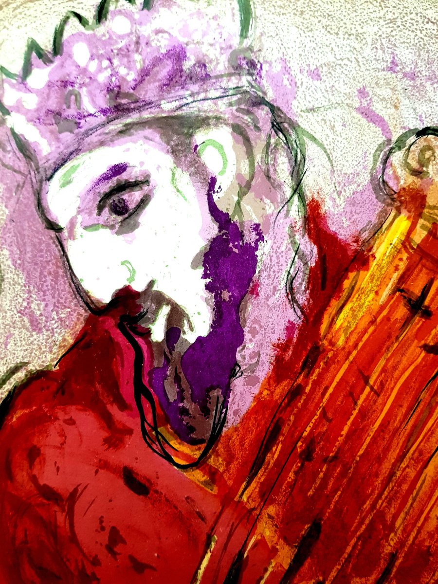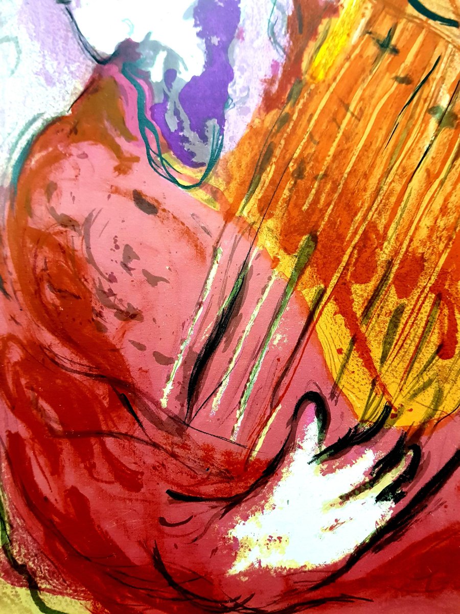 Marc Chagall, Original Lithograph depicting an instant of the Bible. Technique: Original lithograph in colours Year: 1956 Sizes: 35,5 x 26 cm / 14'' x 10.2'' (sheet) Published by: Éditions de la Revue Verve, Tériade, Paris Printed by: Atelier Mourlot, Paris Documentation / References: Mourlot, F., Chagall Lithograph [II] 1957-1962, A. Sauret, Monte Carlo 1963, nos. 234 and 257 Marc Chagall (born in 1887) Marc Chagall was born in Belarus in 1887 and developed an early interest in art. After studying painting, in 1907 he left Russia for Paris, where he lived in an artist colony on the city’s outskirts. Fusing his own personal, dreamlike imagery with hints of the fauvism and cubism popular in France at the time, Chagall created his most lasting work—including I and the Village (1911)—some of which would be featured in the Salon des Indépendants exhibitions. After returning to Vitebsk for a visit in 1914, the outbreak of WWI trapped Chagall in Russia. He returned to France in 1923 but was forced to flee the country and Nazi persecution during WWII. Finding asylum in the U.S., Chagall became involved in set and costume design before returning to France in 1948. In his later years, he experimented with new art forms and was commissioned to produce numerous large-scale works. Chagall died in St.-Paul-de-Vence in 1985. The Village Marc Chagall was born in a small Hassidic community on the outskirts of Vitebsk, Belarus, on July 7, 1887. His father was a fishmonger, and his mother ran a small sundries shop in the village. As a child, Chagall attended the Jewish elementary school, where he studied Hebrew and the Bible, before later attending the Russian public school. He began to learn the fundamentals of drawing during this time, but perhaps more importantly, he absorbed the world around him, storing away the imagery and themes that would feature largely in most of his later work. At age 19 Chagall enrolled at a private, all-Jewish art school and began his formal education in painting, studying briefly with portrait artist Yehuda Pen. However, he left the school after several months, moving to St. Petersburg in 1907 to study at the Imperial Society for the Protection of Fine Arts. The following year, he enrolled at the Svanseva School, studying with set designer Léon Bakst, whose work had been featured in Sergei Diaghilev's Ballets Russes. This early experience would prove important to Chagall’s later career as well. Despite this formal instruction, and the widespread popularity of realism in Russia at the time, Chagall was already establishing his own personal style, which featured a more dreamlike unreality and the people, places and imagery that were close to his heart. Some examples from this period are his Window Vitebsk (1908) and My Fianceé with Black Gloves (1909), which pictured Bella Rosenfeld, to whom he had recently become engaged. The Beehive Despite his romance with Bella, in 1911 an allowance from Russian parliament member and art patron Maxim Binaver enabled Chagall to move to Paris, France. After settling briefly in the Montparnasse neighborhood, Chagall moved further afield to an artist colony known as La Ruche (“The Beehive”), where he began to work side by side with abstract painters such as Amedeo Modigliani and Fernand Léger as well as the avant-garde poet Guillaume Apollinaire. At their urging, and under the influence of the wildly popular fauvism and cubism, Chagall lightened his palette and pushed his style ever further from reality. I and the Village (1911) and Homage to Apollinaire (1912) are among his early Parisian works, widely considered to be his most successful and representative period. Though his work stood stylistically apart from his cubist contemporaries, from 1912 to 1914 Chagall exhibited several paintings at the annual Salon des Indépendants exhibition, where works by the likes of Juan Gris, Marcel Duchamp and Robert Delaunay were causing a stir in the Paris art world. Chagall’s popularity began to spread beyond La Ruche, and in May 1914 he traveled to Berlin to help organize his first solo exhibition, at Der Sturm Gallery. Chagall remained in the city until the highly acclaimed show opened that June. He then returned to Vitebsk, unaware of the fateful events to come. War, Peace and Revolution In August 1914 the outbreak of World War I precluded Chagall’s plans to return to Paris. The conflict did little to stem the flow of his creative output, however, instead merely giving him direct access to the childhood scenes so essential to his work, as seen in paintings such as Jew in Green (1914) and Over Vitebsk (1914). His paintings from this period also occasionally featured images of the war’s impact on the region, as with Wounded Soldier (1914) and Marching (1915). But despite the hardships of life during wartime, this would also prove to be a joyful period for Chagall. In July 1915 he married Bella, and she gave birth to a daughter, Ida, the following year. Their appearance in works such as Birthday (1915), Bella and Ida by the Window (1917) and several of his “Lovers” paintings give a glimpse of the island of domestic bliss that was Chagall’s amidst the chaos. To avoid military service and stay with his new family, Chagall took a position as a clerk in the Ministry of War Economy in St. Petersburg. While there he began work on his autobiography and also immersed himself in the local art scene, befriending novelist Boris Pasternak, among others. He also exhibited his work in the city and soon gained considerable recognition. That notoriety would prove important in the aftermath of the 1917 Russian Revolution when he was appointed as the Commissar of Fine Arts in Vitebsk. In his new post, Chagall undertook various projects in the region, including the 1919 founding of the Academy of the Arts. Despite these endeavors, differences among his colleagues eventually disillusioned Chagall. In 1920 he relinquished his position and moved
