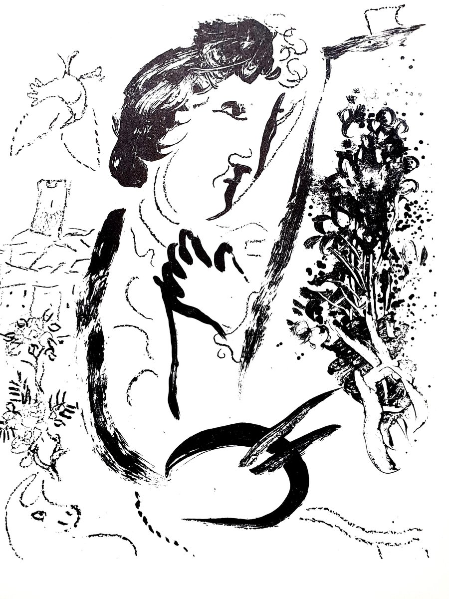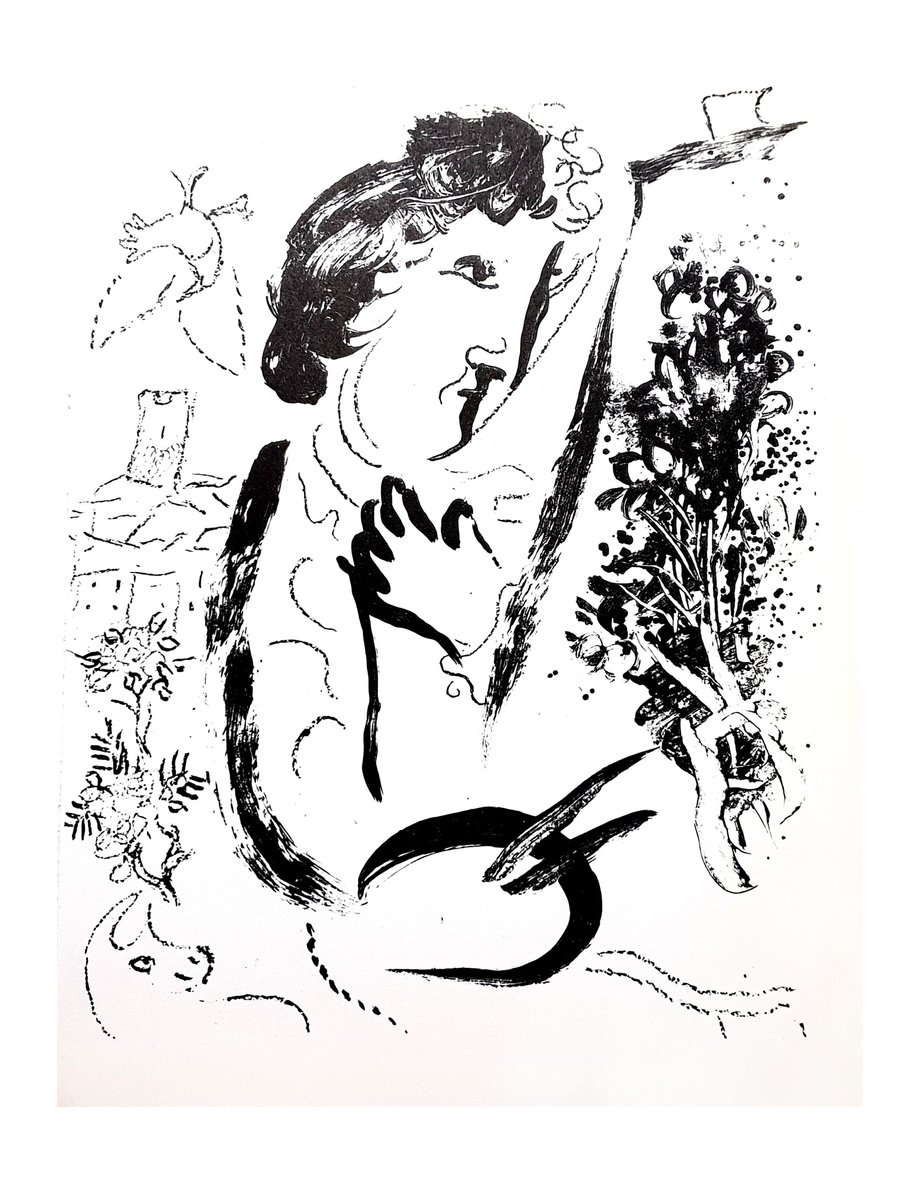 Marc Chagall Original Lithograph 1963 Dimensions: 32 x 24 cm Reference: Chagall Lithographe 1957-1962. VOLUME II. Unsigned edition of over 5,000 Condition : Excellent Marc Chagall (born in 1887) Marc Chagall was born in Belarus in 1887 and developed an early interest in art. After studying painting, in 1907 he left Russia for Paris, where he lived in an artist colony on the city’s outskirts. Fusing his own personal, dreamlike imagery with hints of the fauvism and cubism popular in France at the time, Chagall created his most lasting work—including I and the Village (1911)—some of which would be featured in the Salon des Indépendants exhibitions. After returning to Vitebsk for a visit in 1914, the outbreak of WWI trapped Chagall in Russia. He returned to France in 1923 but was forced to flee the country and Nazi persecution during WWII. Finding asylum in the U.S., Chagall became involved in set and costume design before returning to France in 1948. In his later years, he experimented with new art forms and was commissioned to produce numerous large-scale works. Chagall died in St.-Paul-de-Vence in 1985. The Village Marc Chagall was born in a small Hassidic community on the outskirts of Vitebsk, Belarus, on July 7, 1887. His father was a fishmonger, and his mother ran a small sundries shop in the village. As a child, Chagall attended the Jewish elementary school, where he studied Hebrew and the Bible, before later attending the Russian public school. He began to learn the fundamentals of drawing during this time, but perhaps more importantly, he absorbed the world around him, storing away the imagery and themes that would feature largely in most of his later work. At age 19 Chagall enrolled at a private, all-Jewish art school and began his formal education in painting, studying briefly with portrait artist Yehuda Pen. However, he left the school after several months, moving to St. Petersburg in 1907 to study at the Imperial Society for the Protection of Fine Arts. The following year, he enrolled at the Svanseva School, studying with set designer Léon Bakst, whose work had been featured in Sergei Diaghilev's Ballets Russes. This early experience would prove important to Chagall’s later career as well. Despite this formal instruction, and the widespread popularity of realism in Russia at the time, Chagall was already establishing his own personal style, which featured a more dreamlike unreality and the people, places and imagery that were close to his heart. Some examples from this period are his Window Vitebsk (1908) and My Fianceé with Black Gloves (1909), which pictured Bella Rosenfeld, to whom he had recently become engaged. The Beehive Despite his romance with Bella, in 1911 an allowance from Russian parliament member and art patron Maxim Binaver enabled Chagall to move to Paris, France. After settling briefly in the Montparnasse neighborhood, Chagall moved further afield to an artist colony known as La Ruche (“The Beehive”), where he began to work side by side with abstract painters such as Amedeo Modigliani and Fernand Léger as well as the avant-garde poet Guillaume Apollinaire. At their urging, and under the influence of the wildly popular fauvism and cubism, Chagall lightened his palette and pushed his style ever further from reality. I and the Village (1911) and Homage to Apollinaire (1912) are among his early Parisian works, widely considered to be his most successful and representative period. Though his work stood stylistically apart from his cubist contemporaries, from 1912 to 1914 Chagall exhibited several paintings at the annual Salon des Indépendants exhibition, where works by the likes of Juan Gris, Marcel Duchamp and Robert Delaunay were causing a stir in the Paris art world. Chagall’s popularity began to spread beyond La Ruche, and in May 1914 he traveled to Berlin to help organize his first solo exhibition, at Der Sturm Gallery. Chagall remained in the city until the highly acclaimed show opened that June. He then returned to Vitebsk, unaware of the fateful events to come. War, Peace and Revolution In August 1914 the outbreak of World War I precluded Chagall’s plans to return to Paris. The conflict did little to stem the flow of his creative output, however, instead merely giving him direct access to the childhood scenes so essential to his work, as seen in paintings such as Jew in Green (1914) and Over Vitebsk (1914). His paintings from this period also occasionally featured images of the war’s impact on the region, as with Wounded Soldier (1914) and Marching (1915). But despite the hardships of life during wartime, this would also prove to be a joyful period for Chagall. In July 1915 he married Bella, and she gave birth to a daughter, Ida, the following year. Their appearance in works such as Birthday (1915), Bella and Ida by the Window (1917) and several of his “Lovers” paintings give a glimpse of the island of domestic bliss that was Chagall’s amidst the chaos. To avoid military service and stay with his new family, Chagall took a position as a clerk in the Ministry of War Economy in St. Petersburg. While there he began work on his autobiography and also immersed himself in the local art scene, befriending novelist Boris Pasternak, among others. He also exhibited his work in the city and soon gained considerable recognition. That notoriety would prove important in the aftermath of the 1917 Russian Revolution when he was appointed as the Commissar of Fine Arts in Vitebsk. In his new post, Chagall undertook various projects in the region, including the 1919 founding of the Academy of the Arts. Despite these endeavors, differences among his colleagues eventually disillusioned Chagall. In 1920 he relinquished his position and moved his family to Moscow, the post-revolution capital of Russia. In Moscow, Chagall was soon commissioned to create sets and costumes for various productions at the Moscow State Yiddish Theater, where he would paint a 