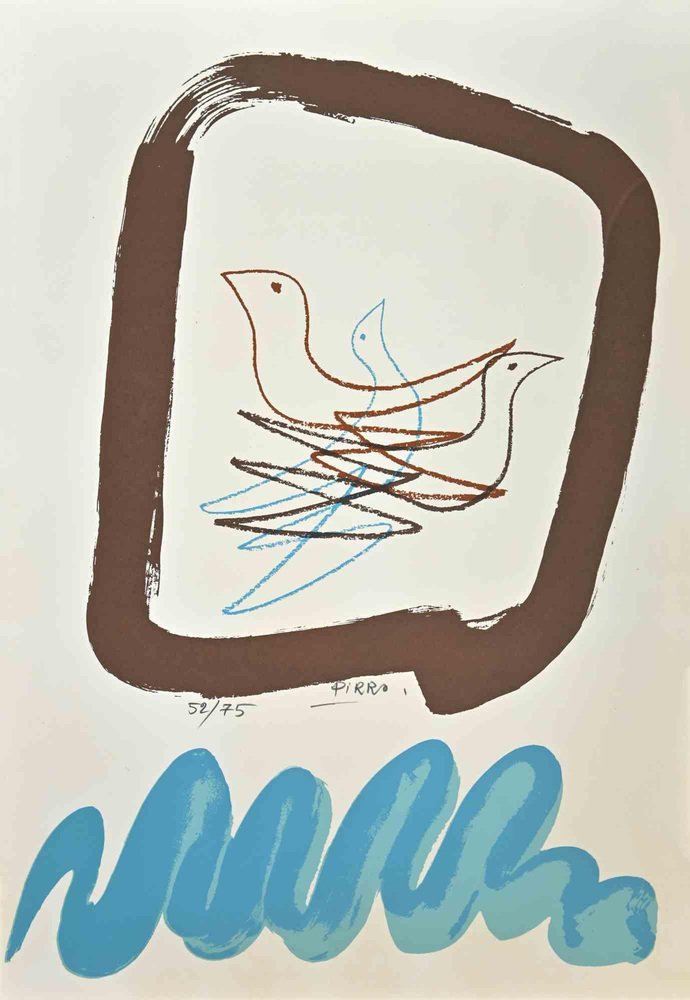 Marcello Pirro, Tauben, Lithographie, 1970er