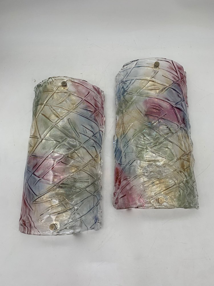Mazzega zugeschriebene Wandlampen aus Muranoglas, 1980er, 2er Set