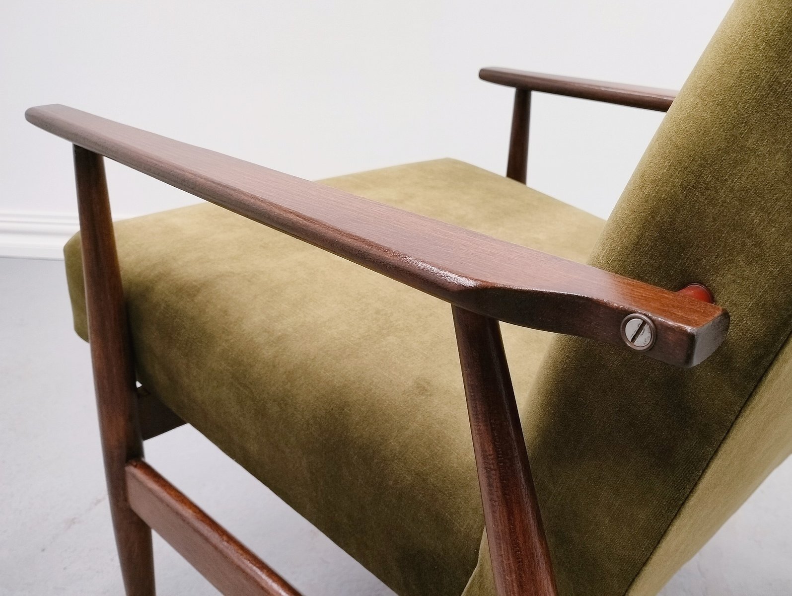 Bring a piece of design history into your home with this rare Henryk Lis armchair, a striking example of Polish mid-century modern furniture from the 1960s. Known for its clean lines, elegant proportions, and expert craftsmanship, this armchair captures the timeless appeal of Eastern European mid-century design.