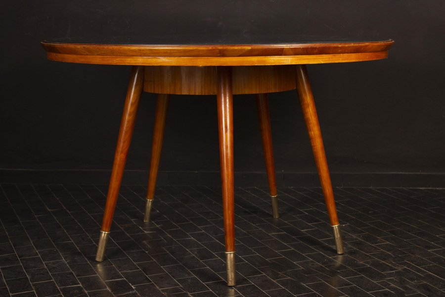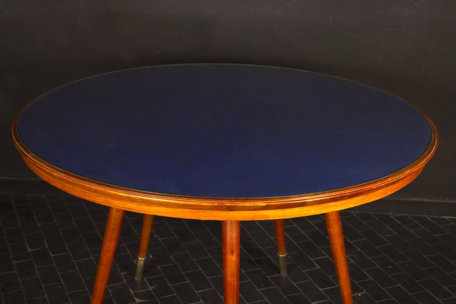 Mid-Century Ess- oder Beistelltisch mit blauer Tischplatte