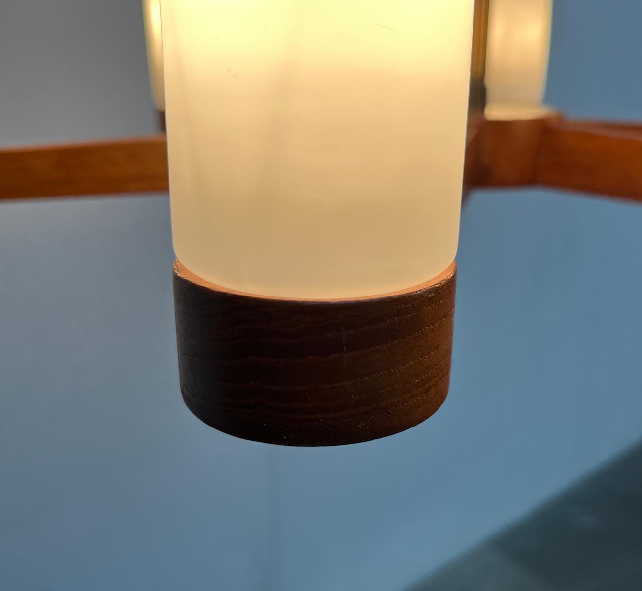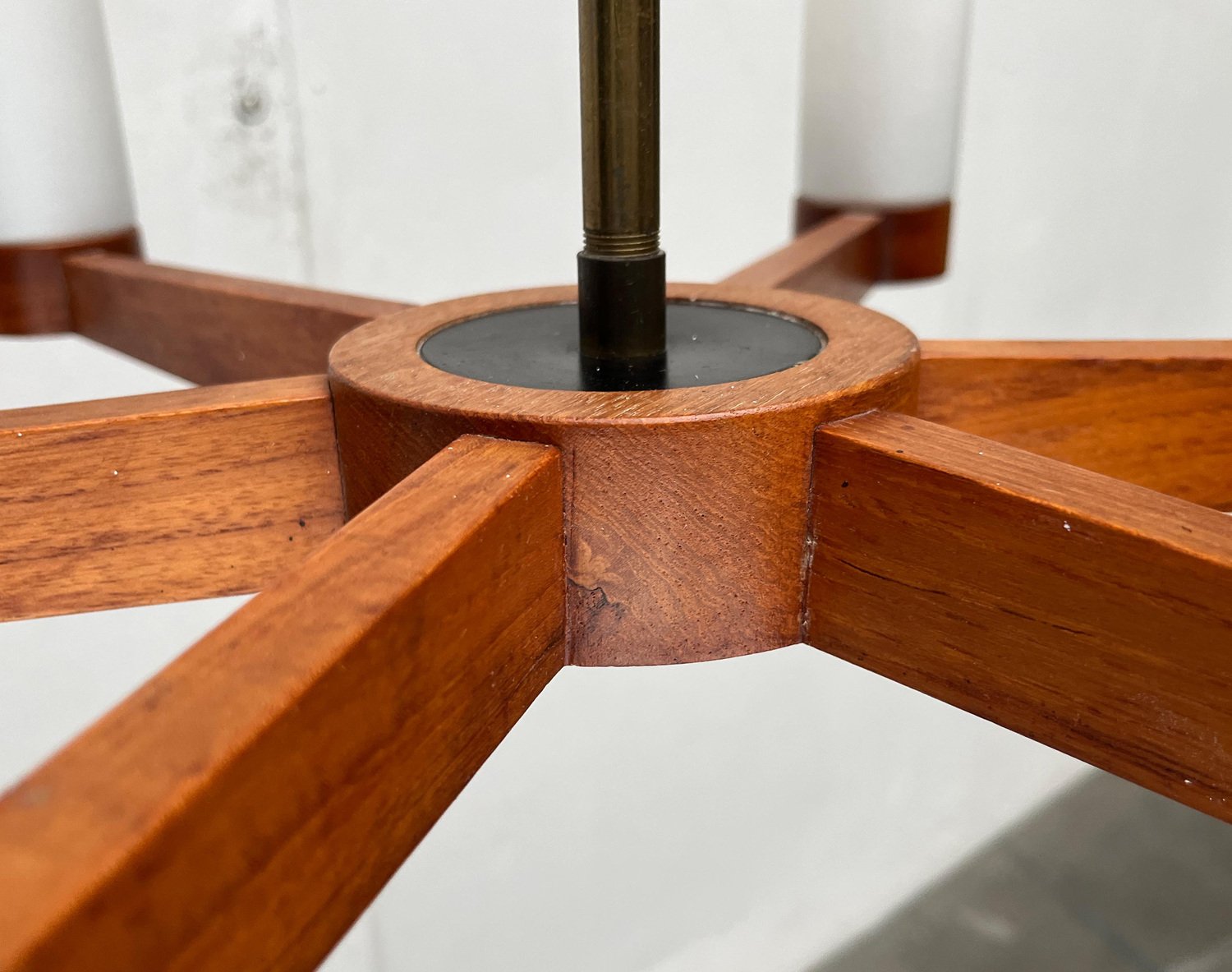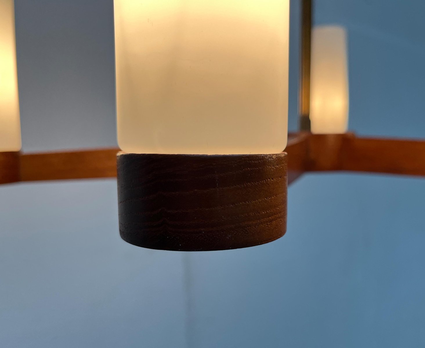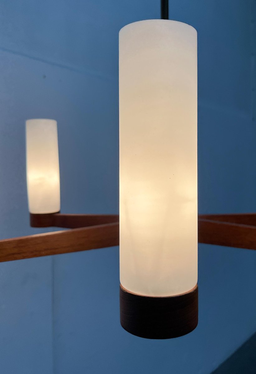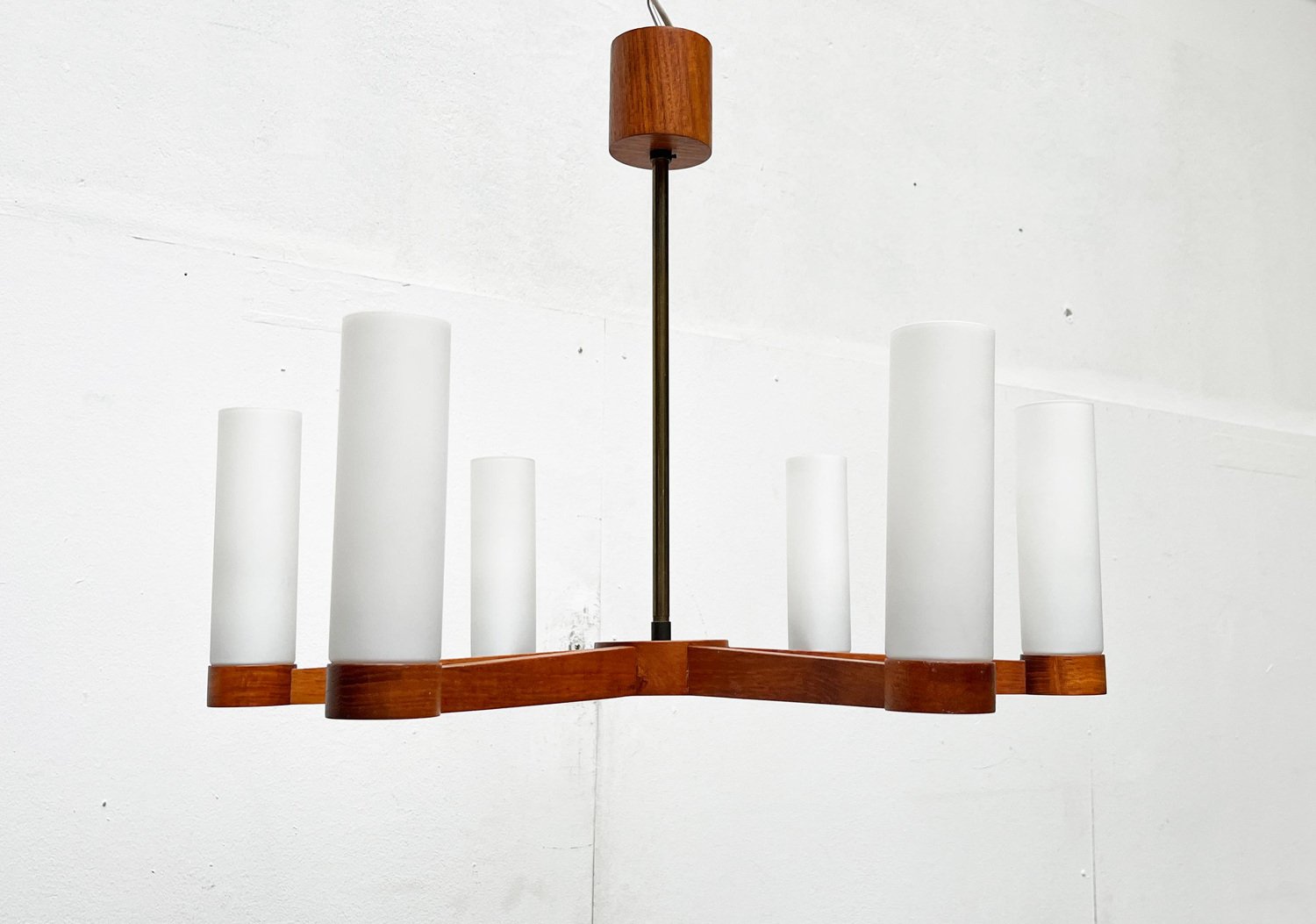 Mid-Century Hängelampe aus Teak & Glas, 1960er