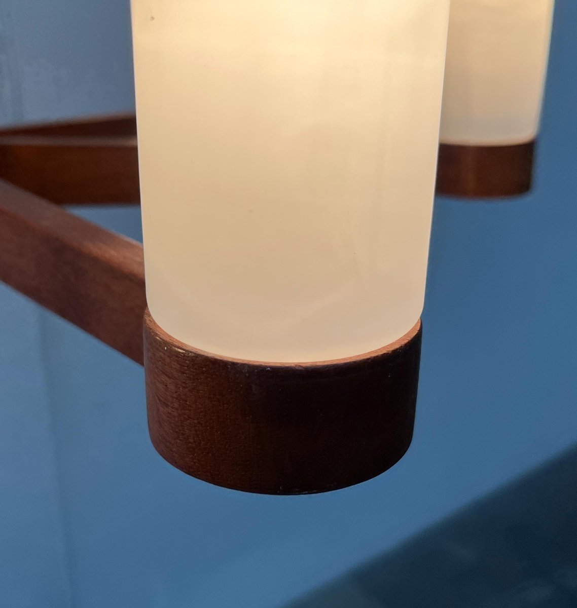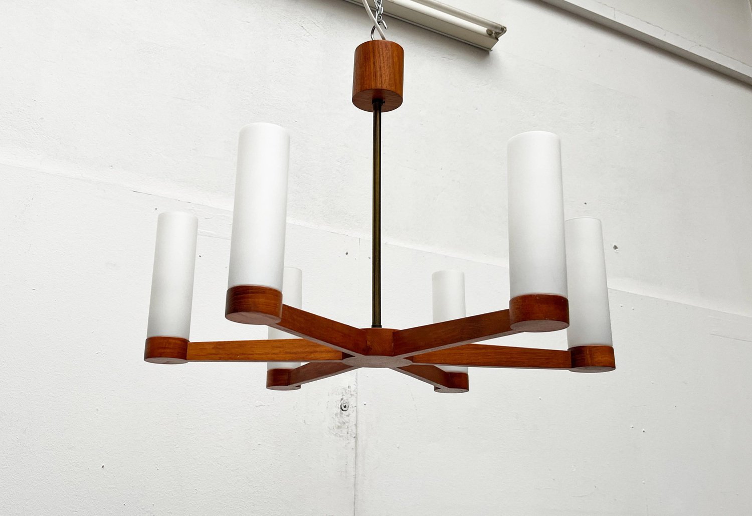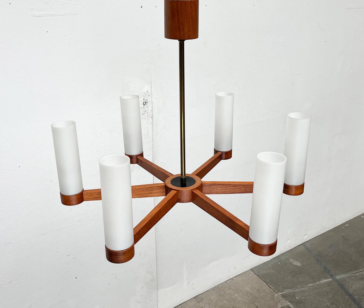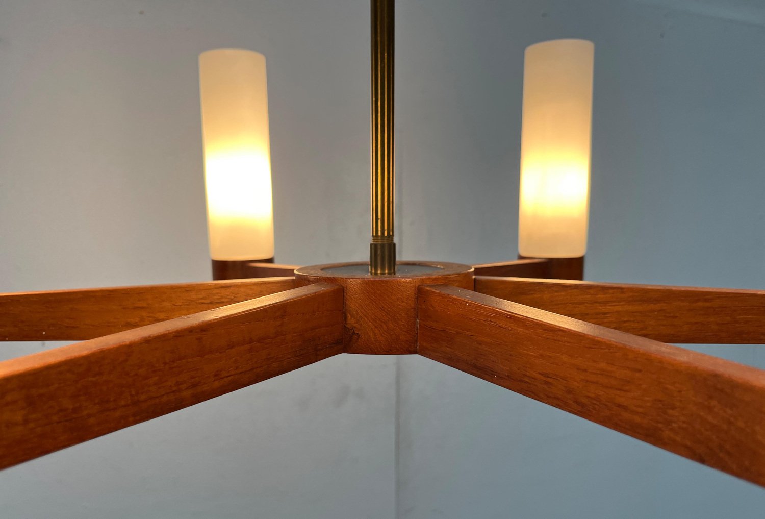 Mid-Century Hängelampe aus Teak & Glas, 1960er
