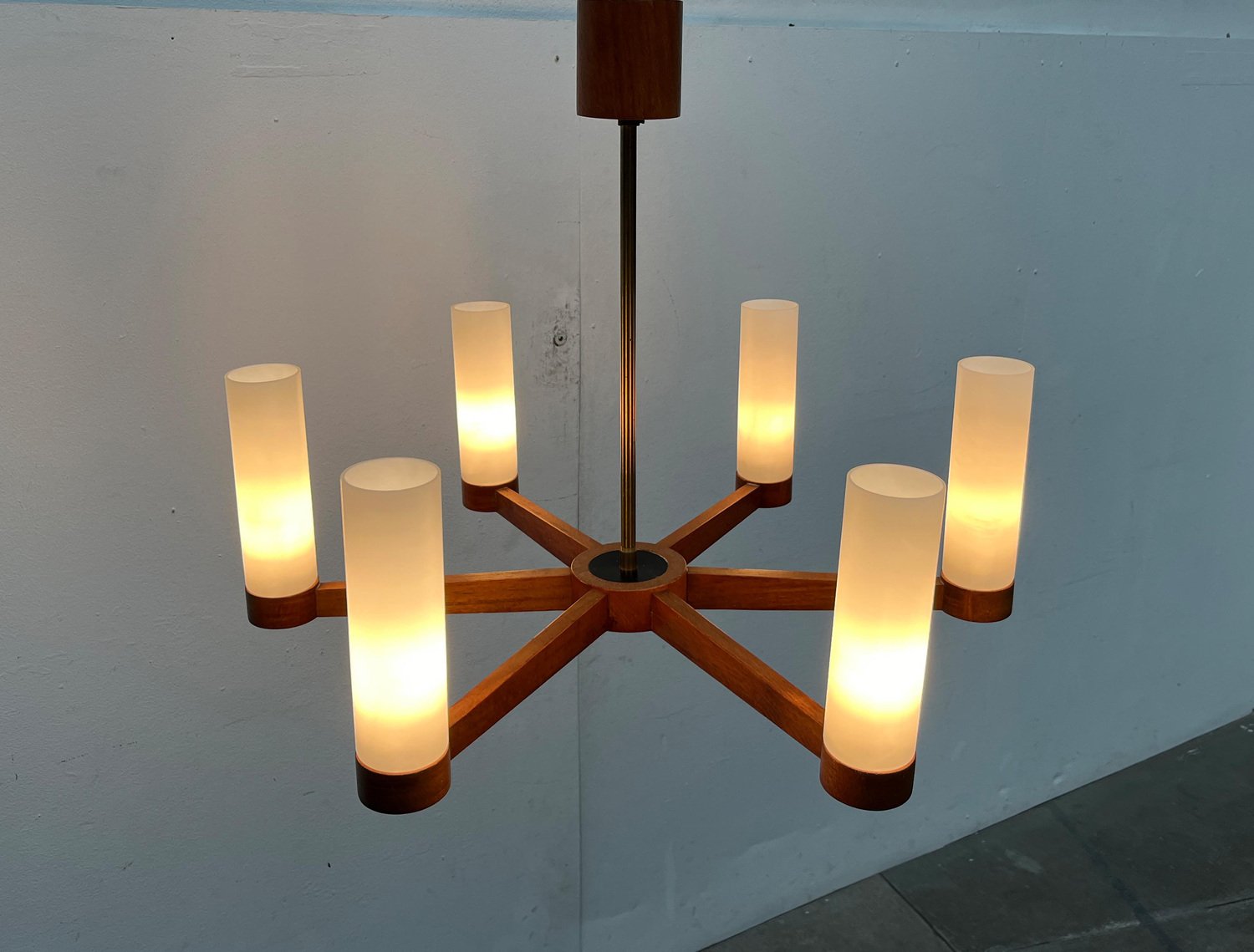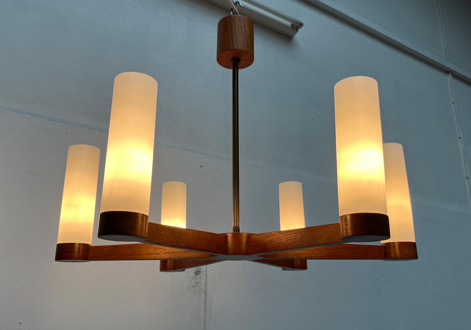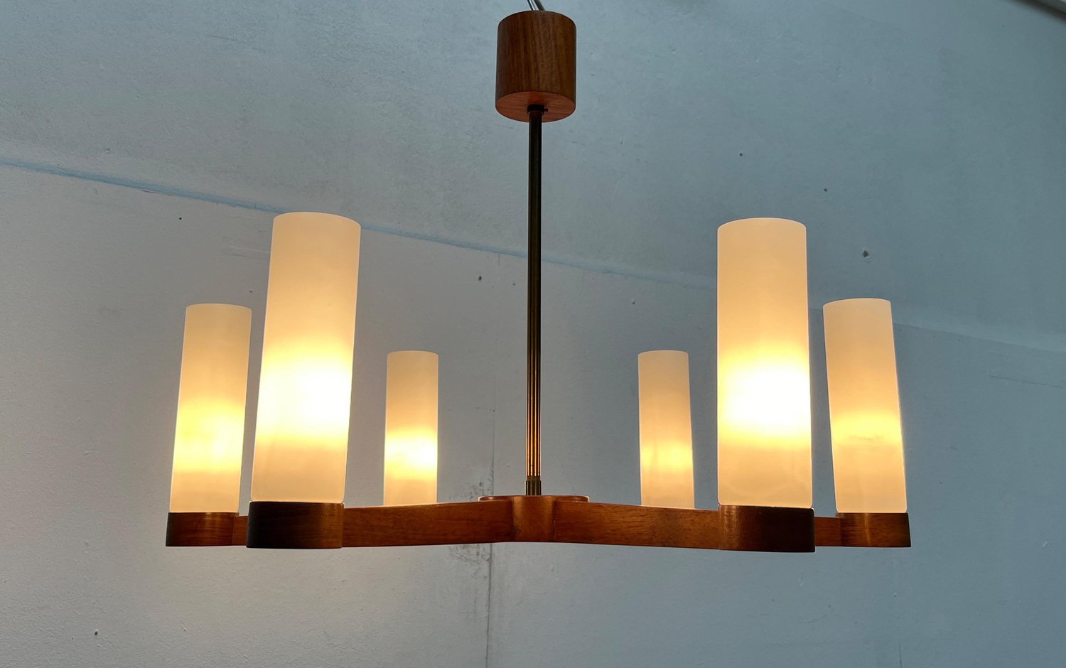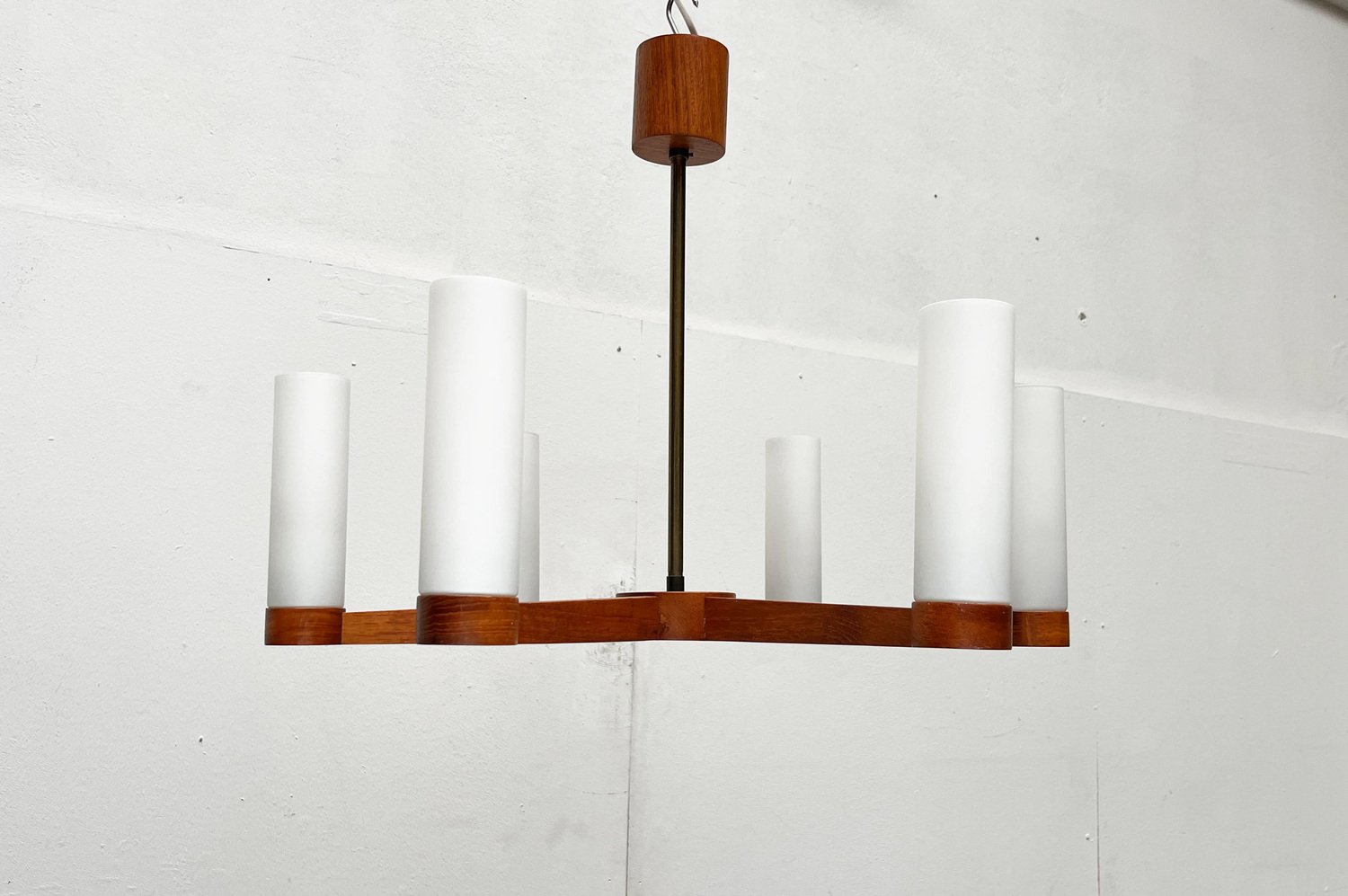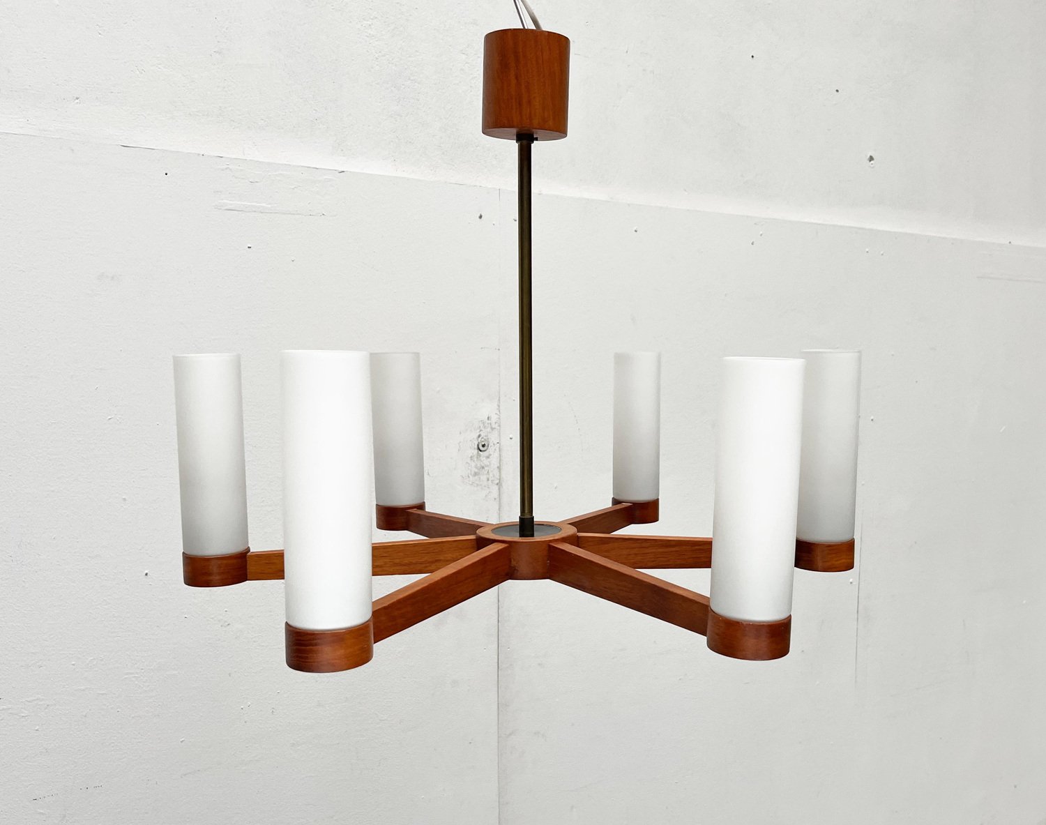 Mid-Century Hängelampe aus Teak & Glas, 1960er