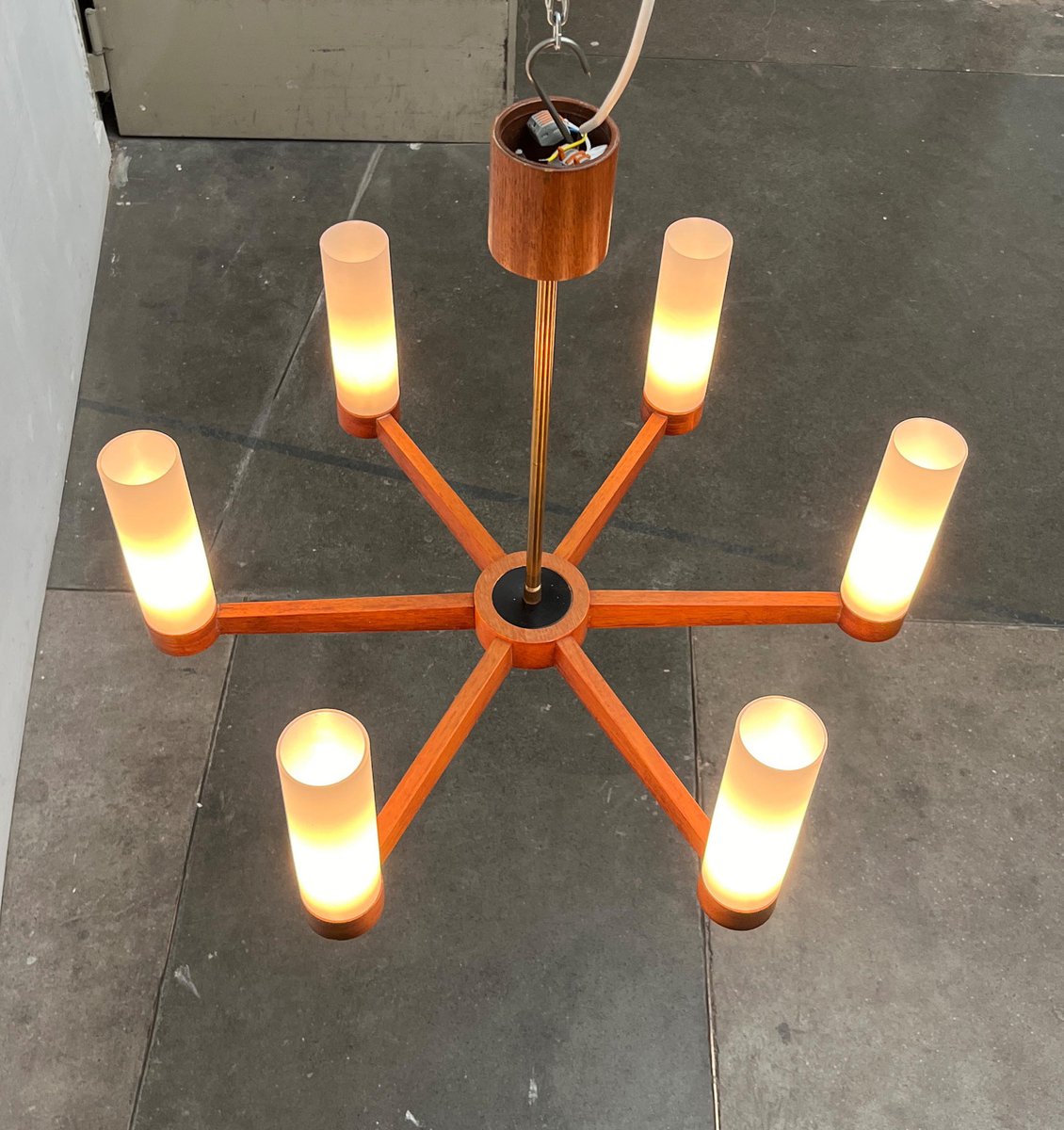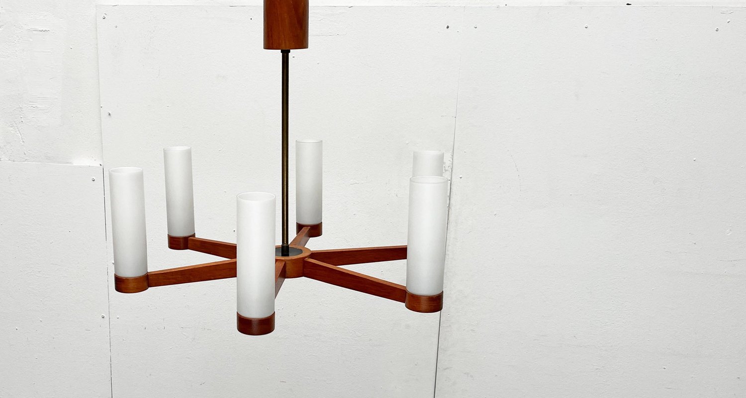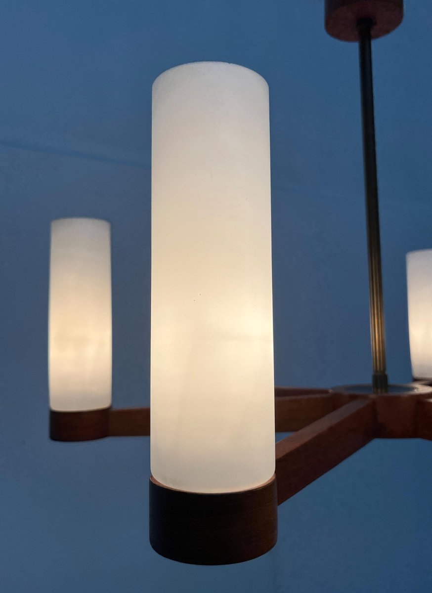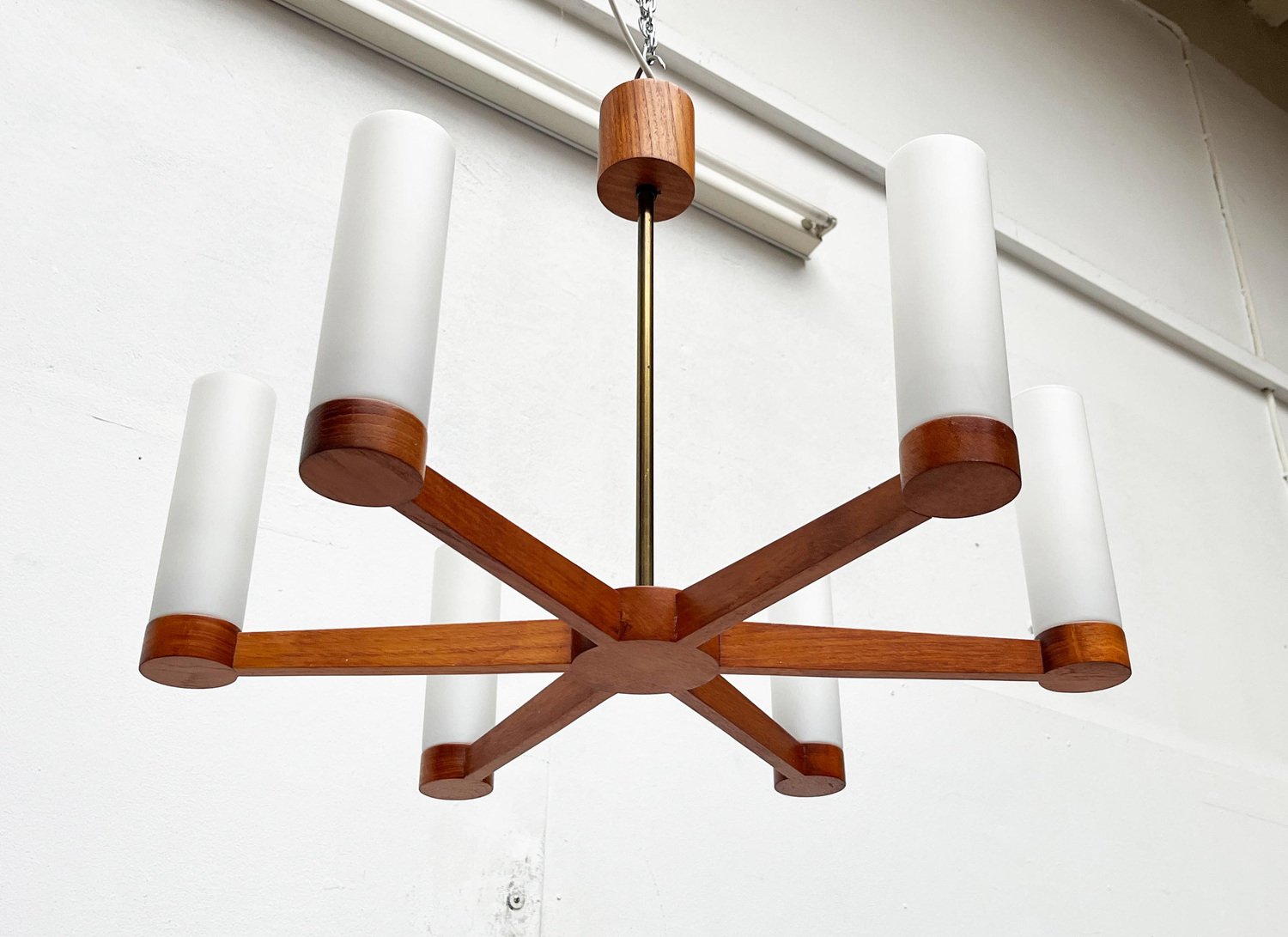 Mid-Century Hängelampe aus Teak & Glas, 1960er