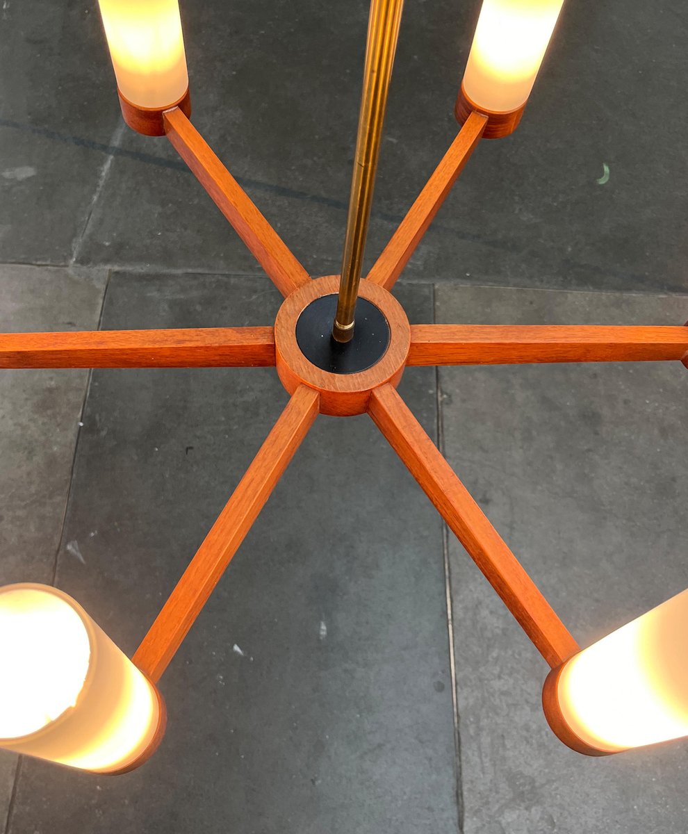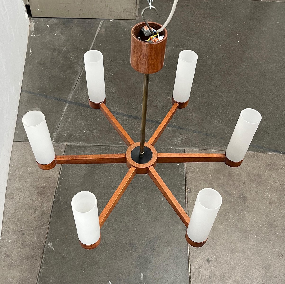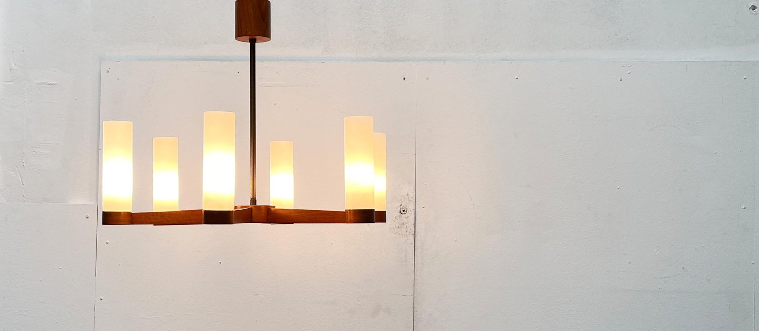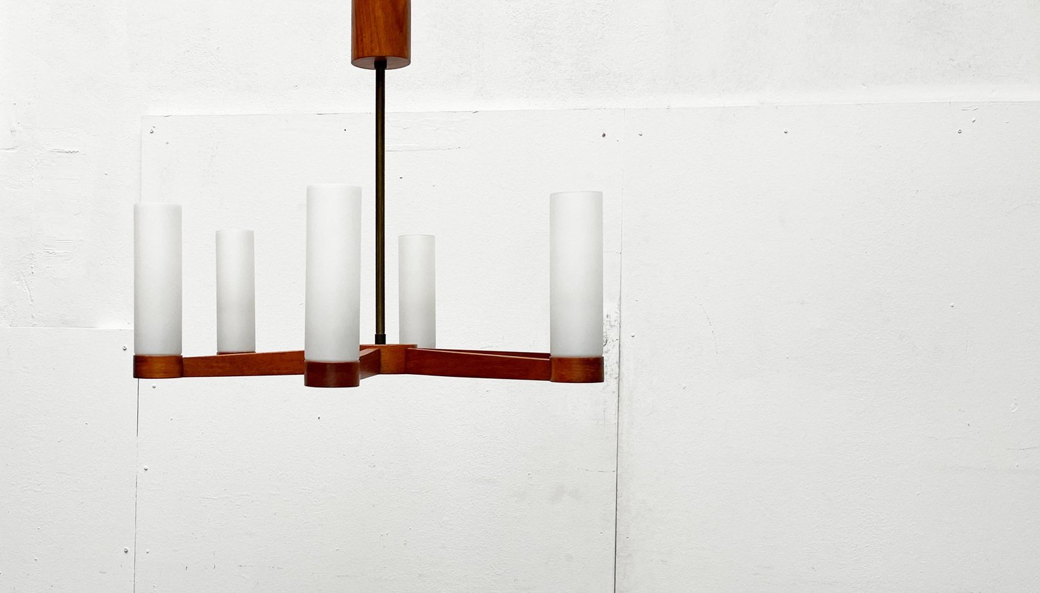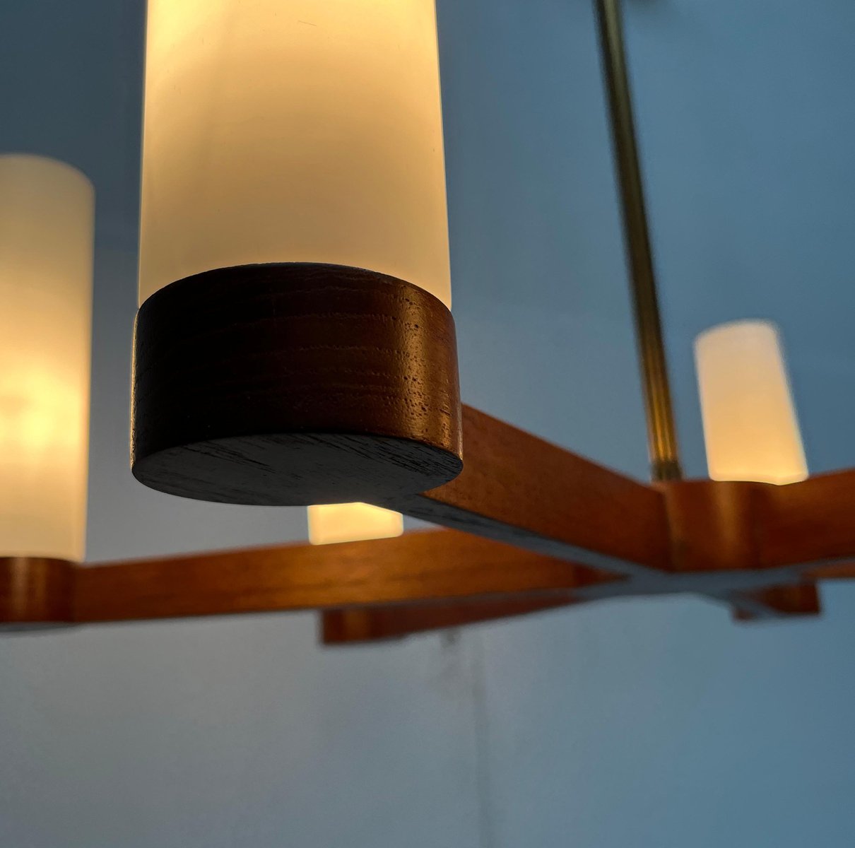 Mid-Century Hängelampe aus Teak & Glas, 1960er