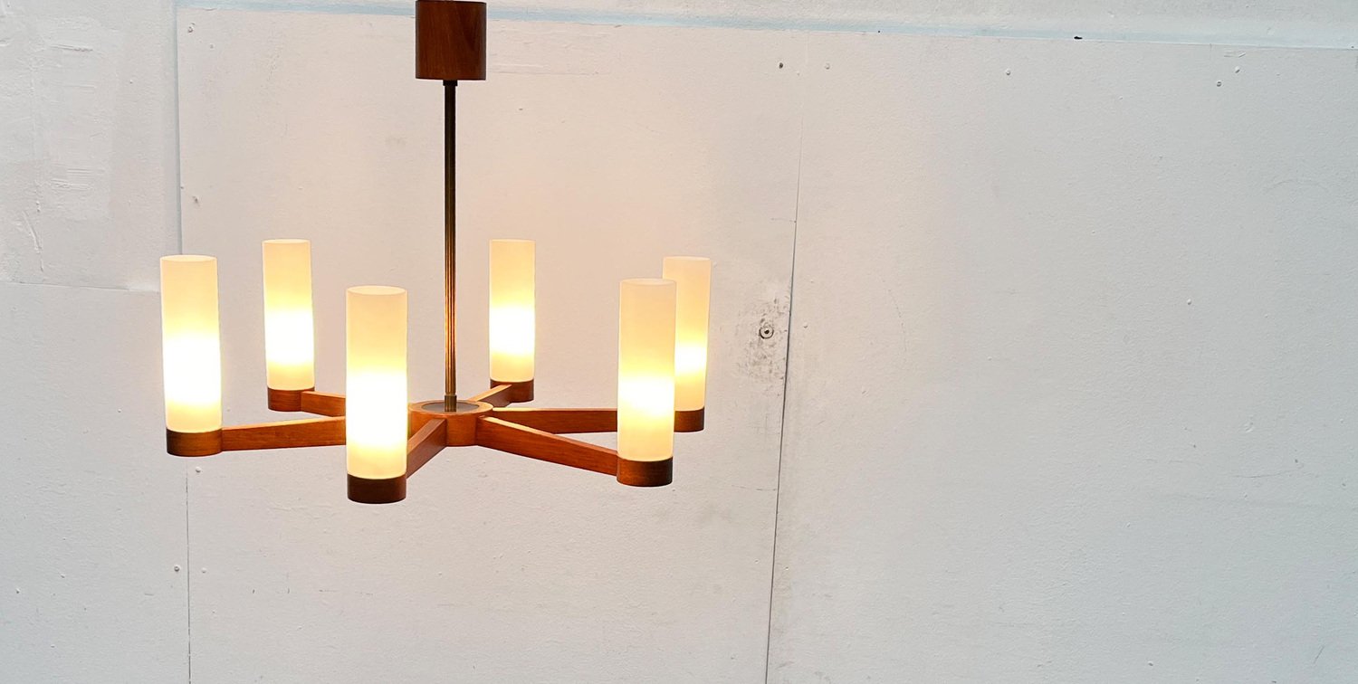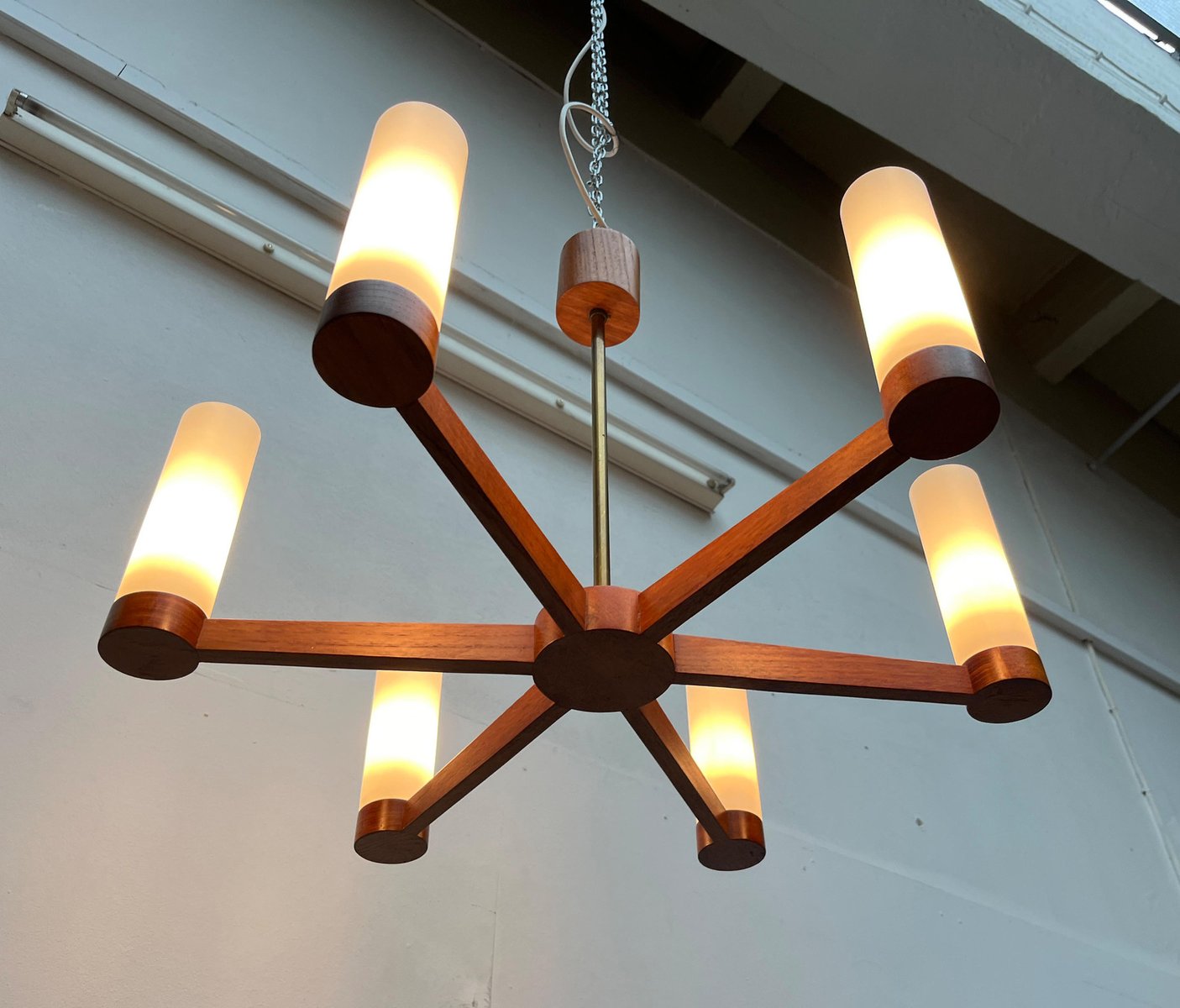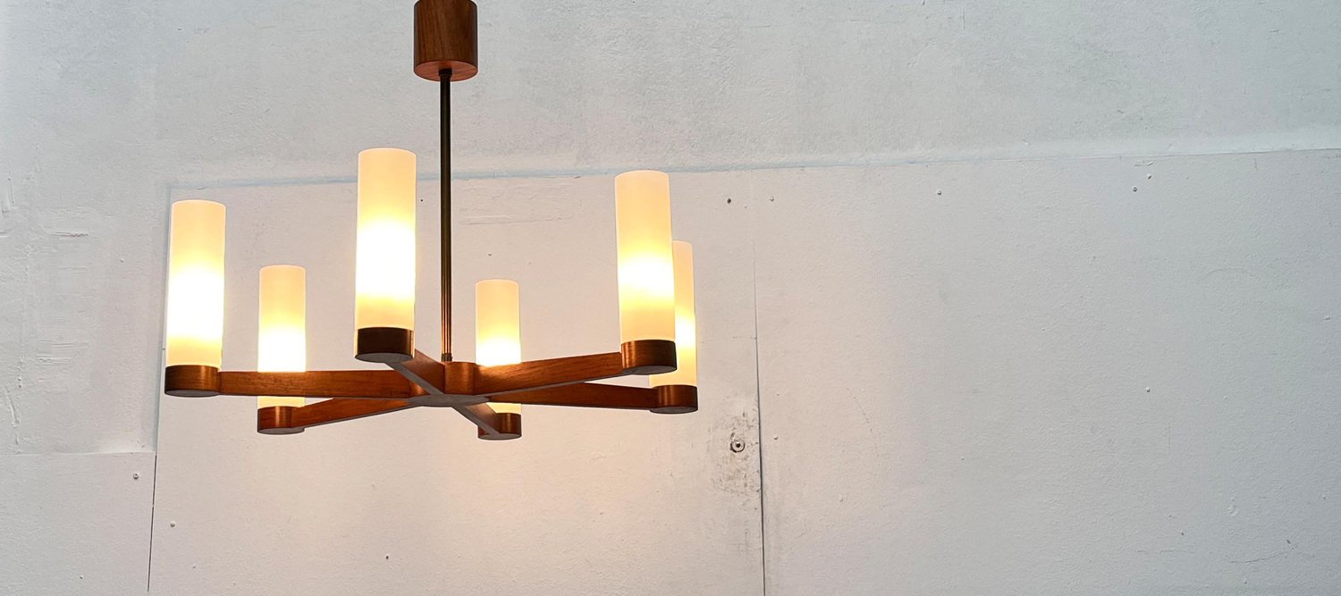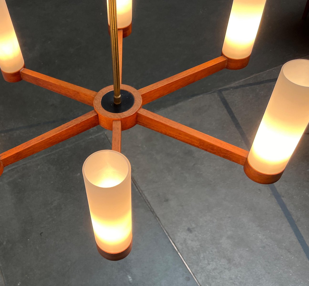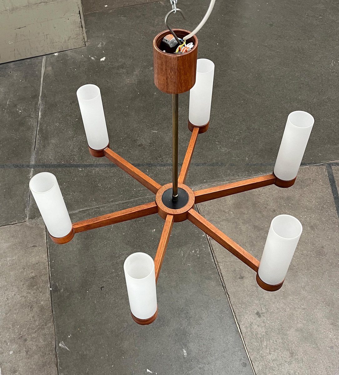 Mid-Century Hängelampe aus Teak & Glas, 1960er