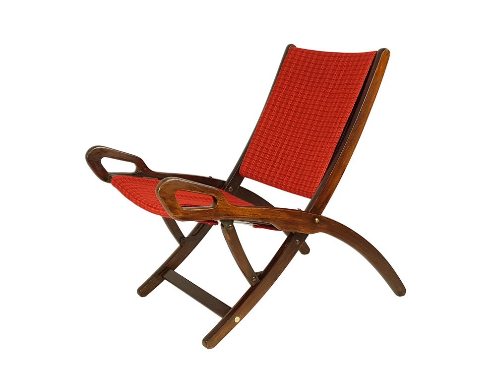 Mid-Century Klappstuhl aus Holz & Stoff von Gio Ponti für Reguitti, 1950er