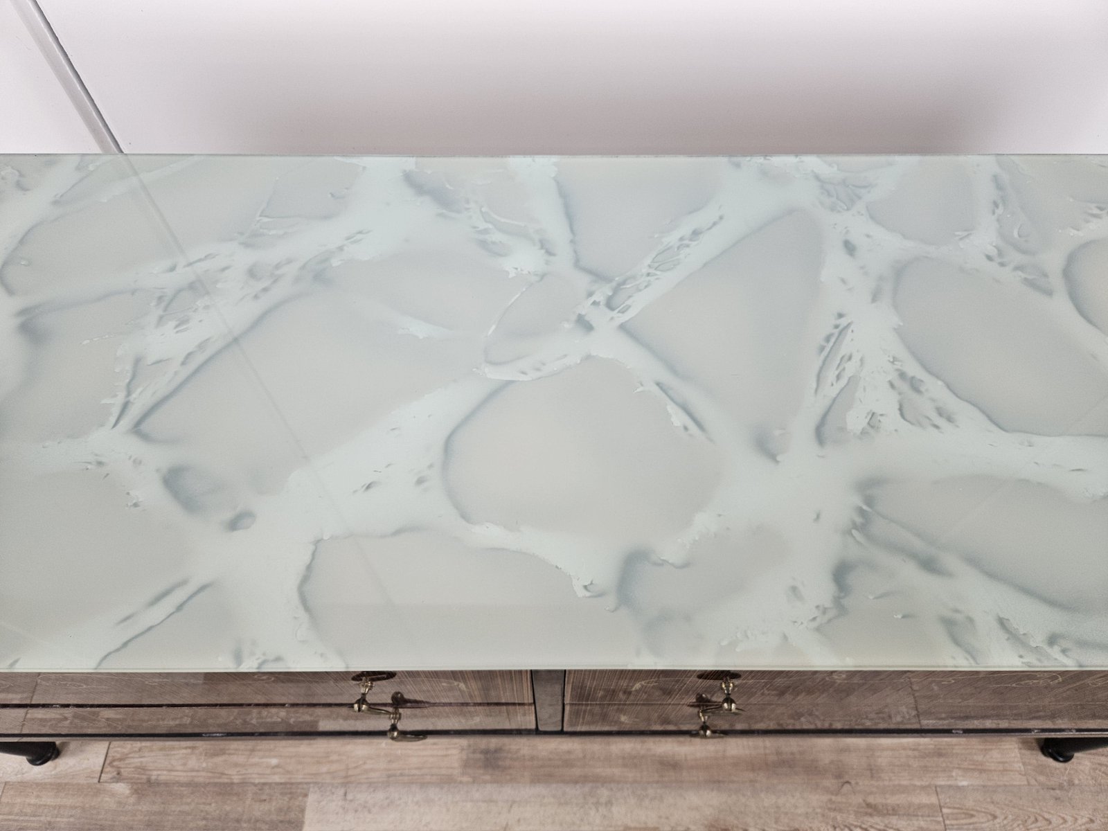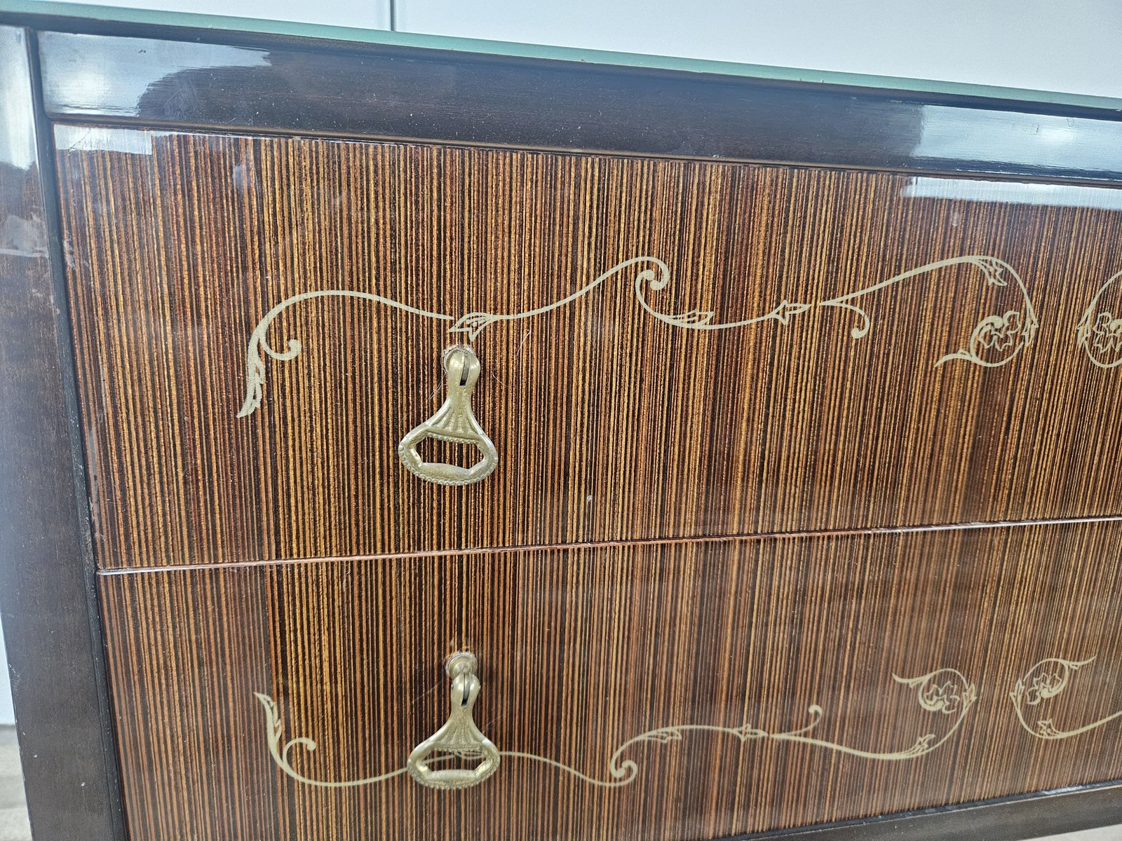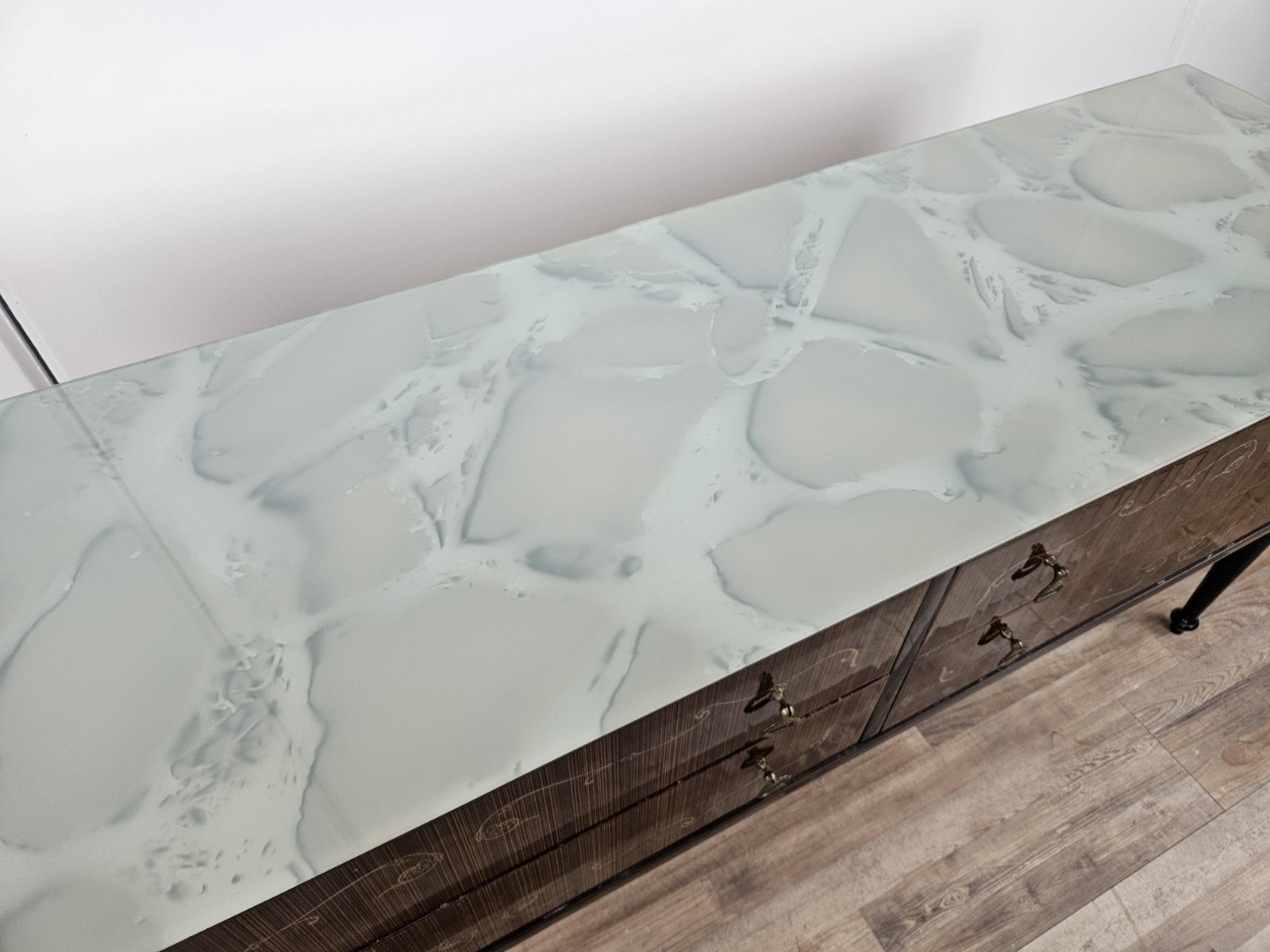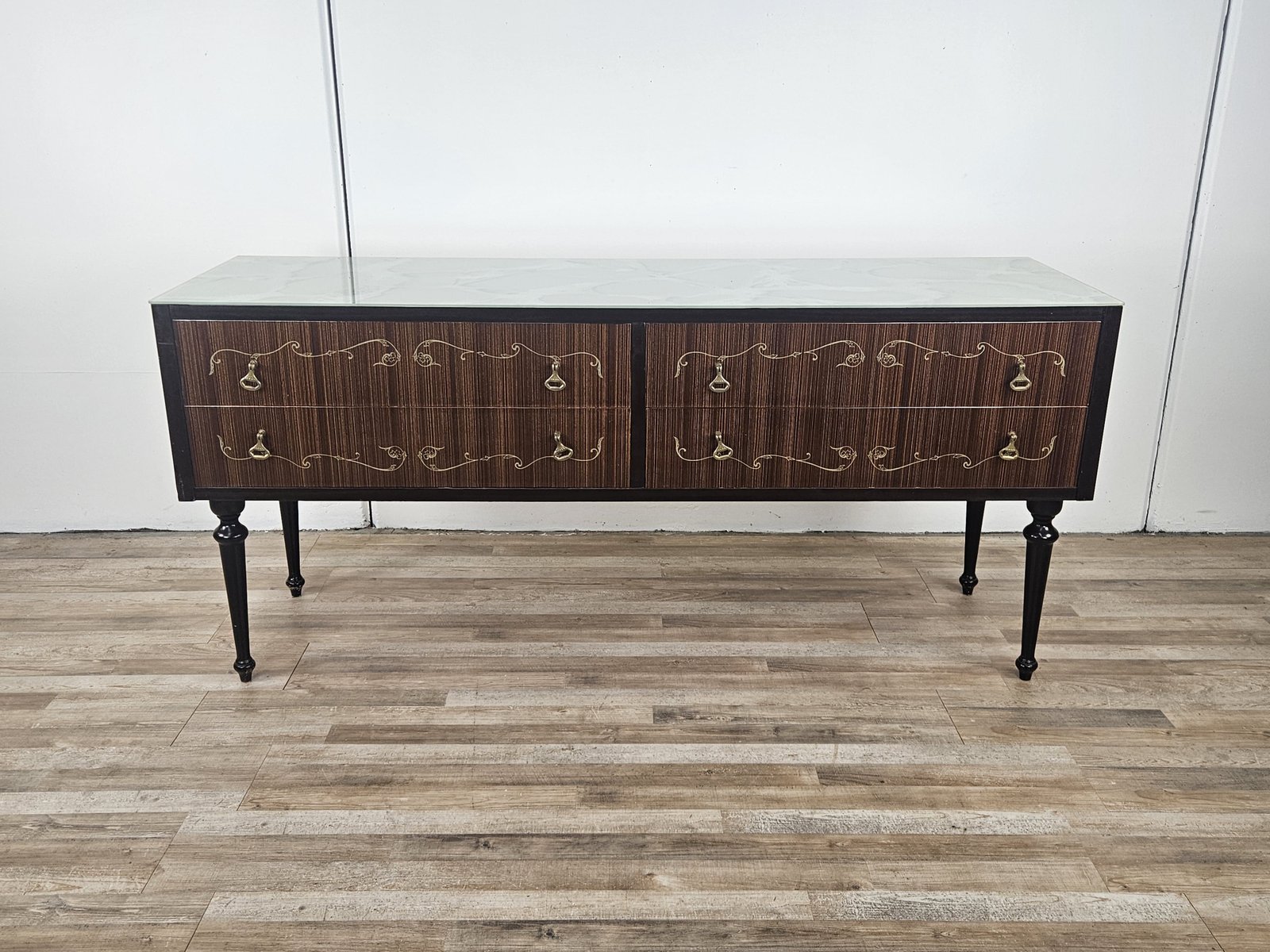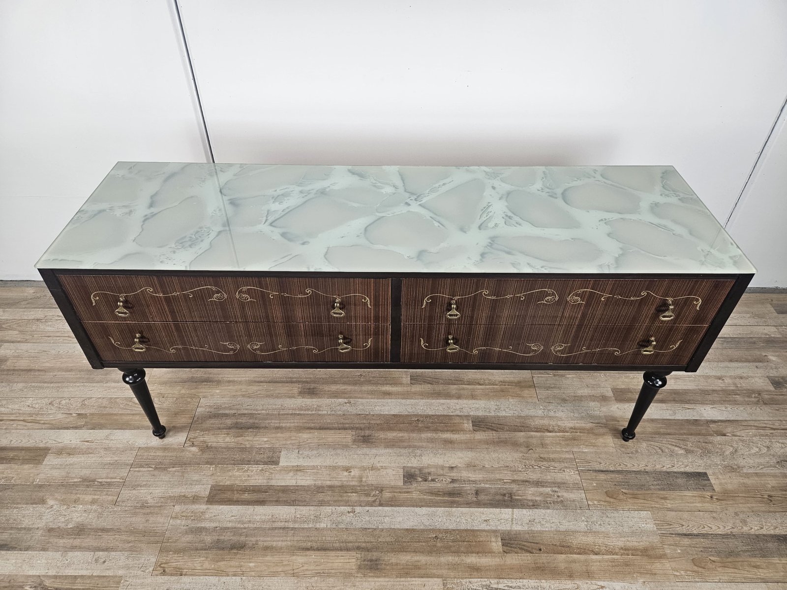 Mid-Century Kommode mit Blauem Glas & Vier Schubladen, 1960er