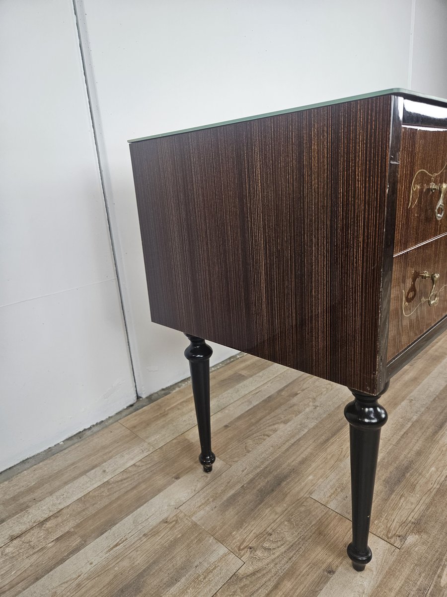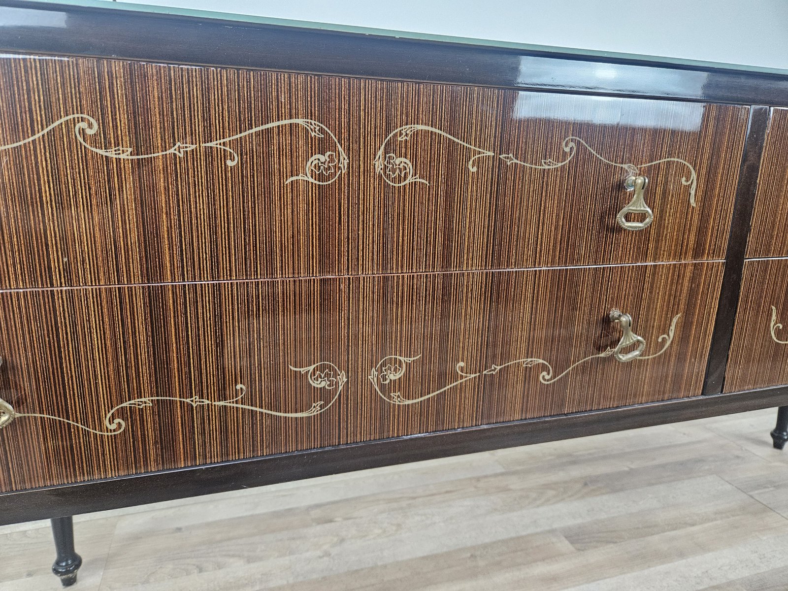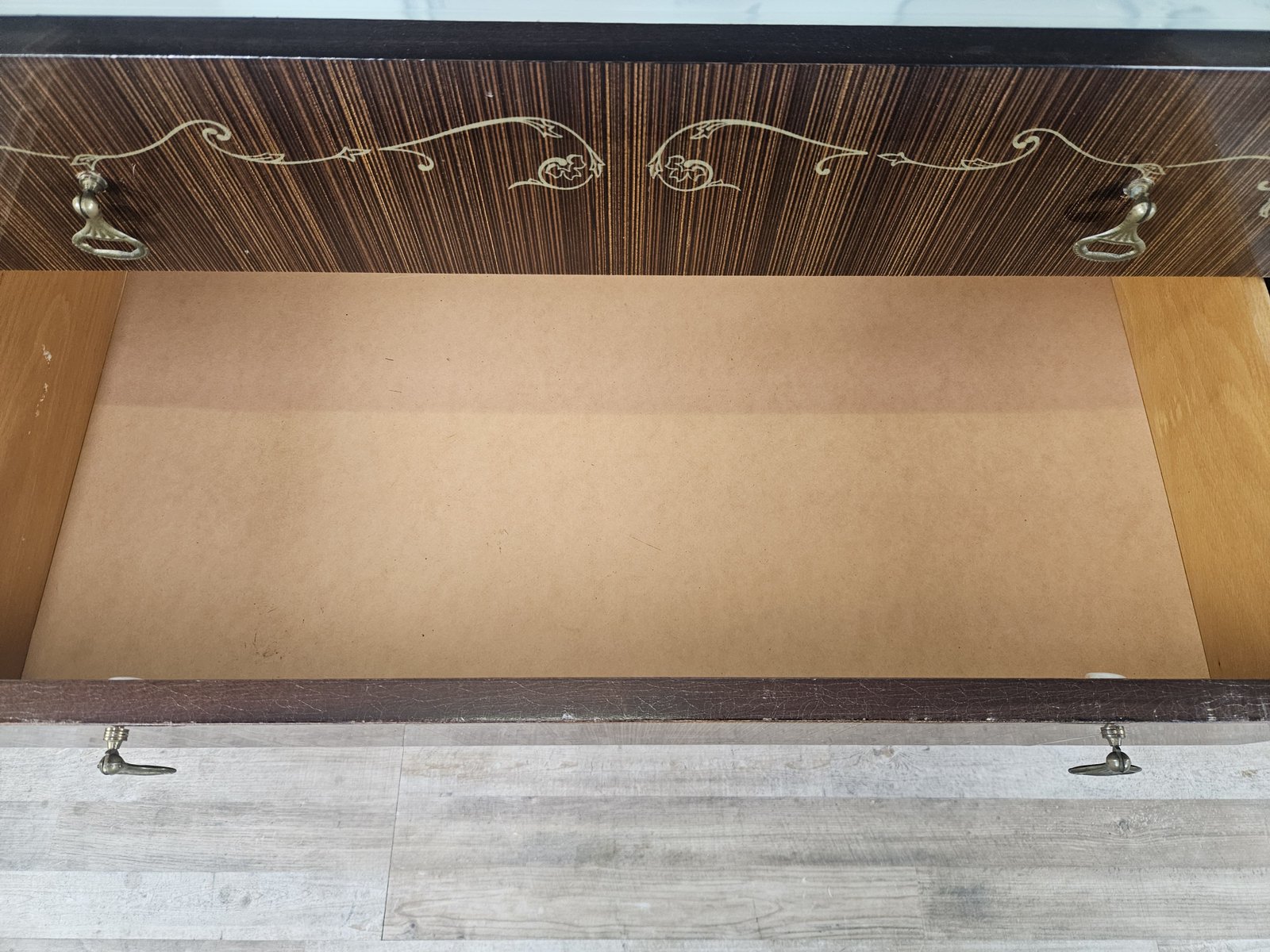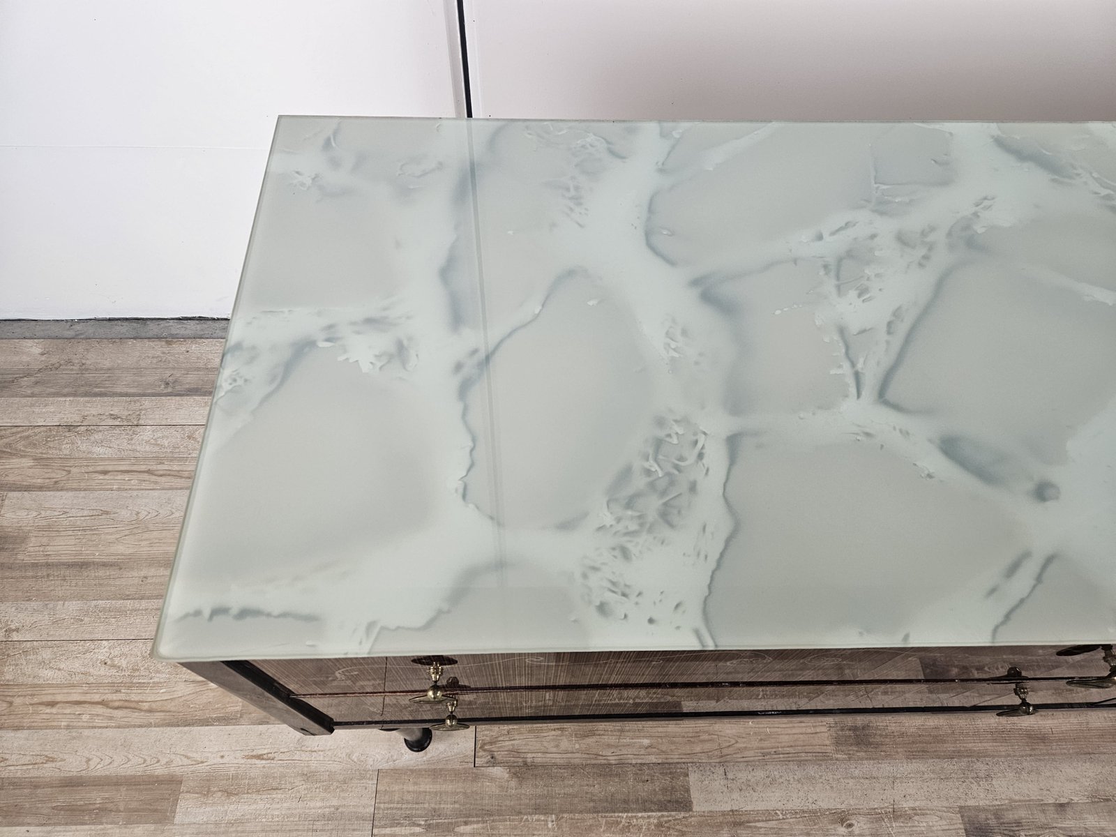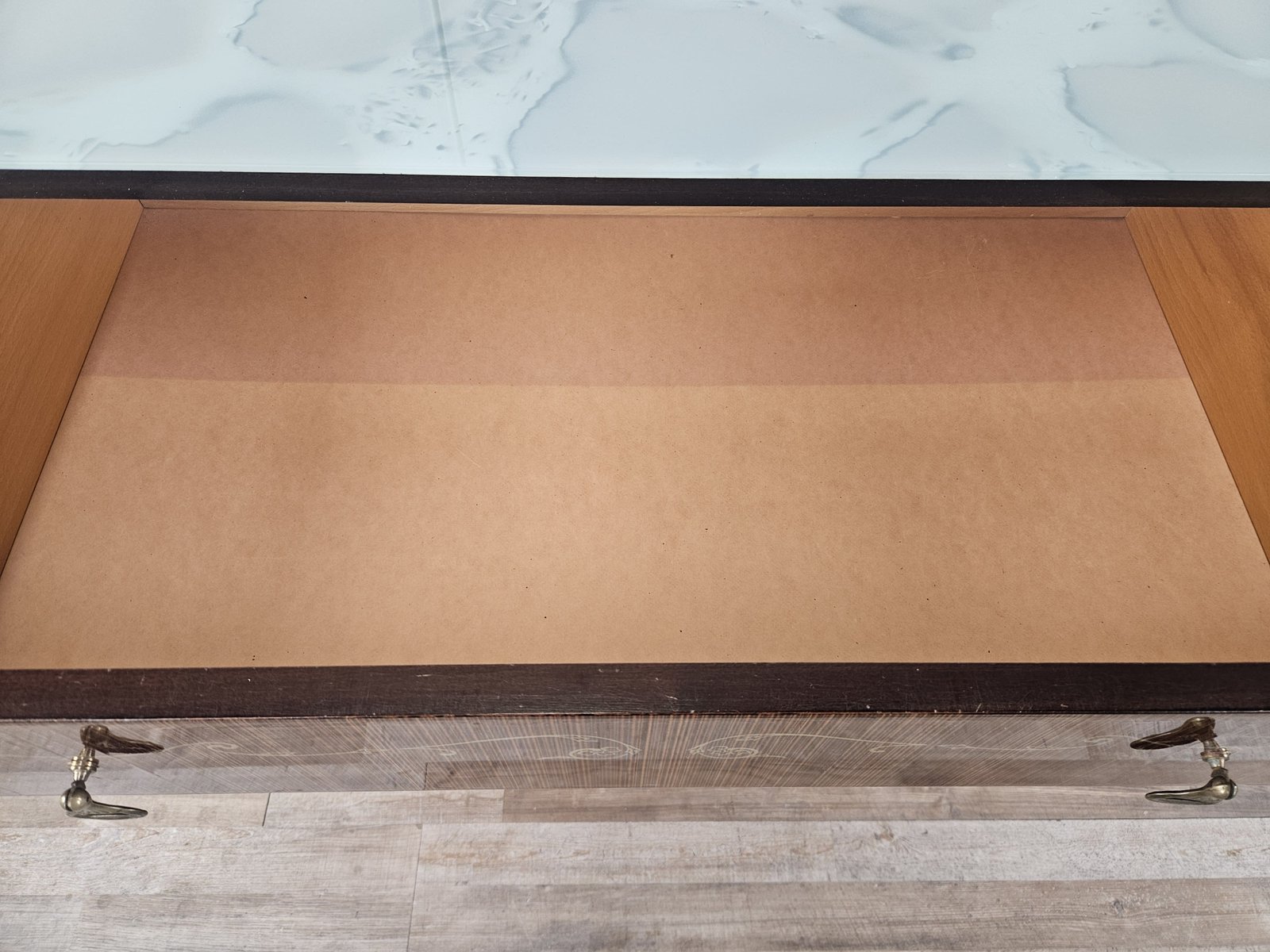Mid-Century Kommode mit Blauem Glas & Vier Schubladen, 1960er