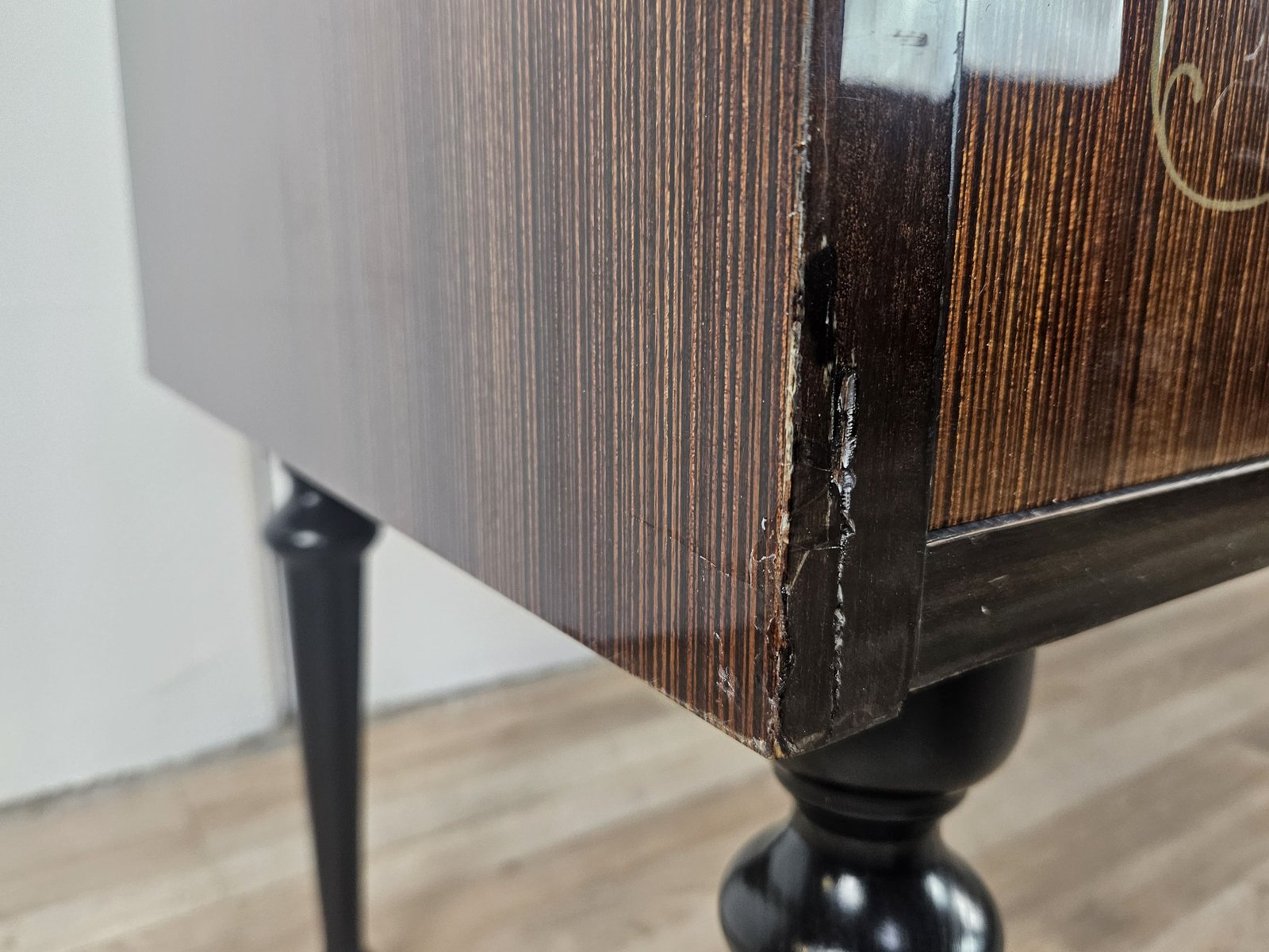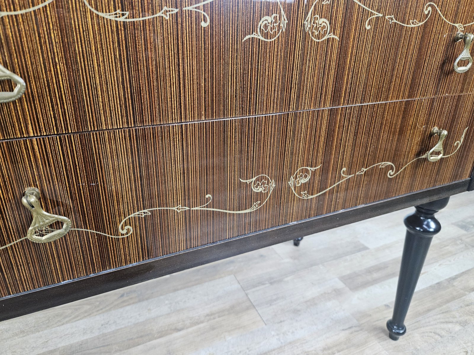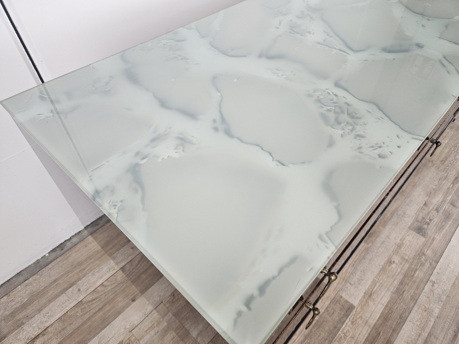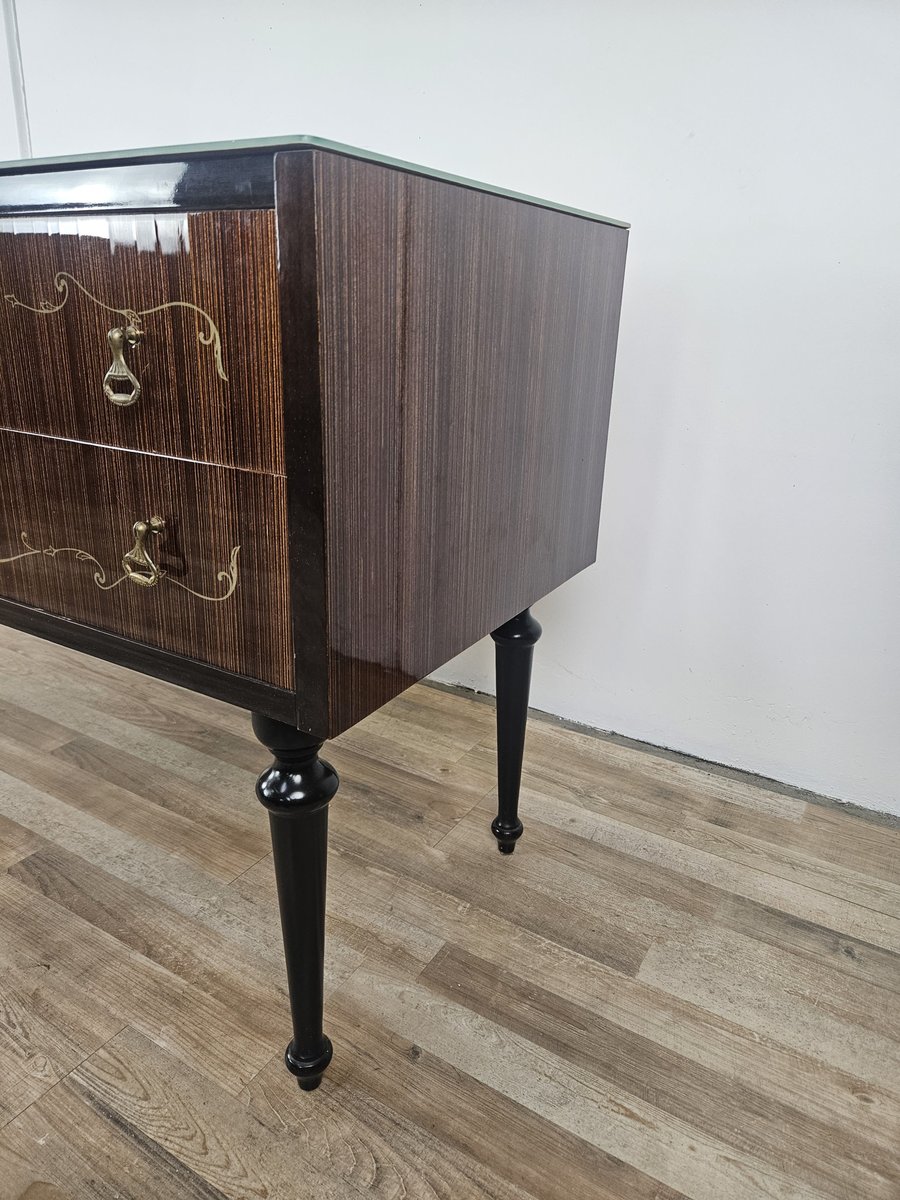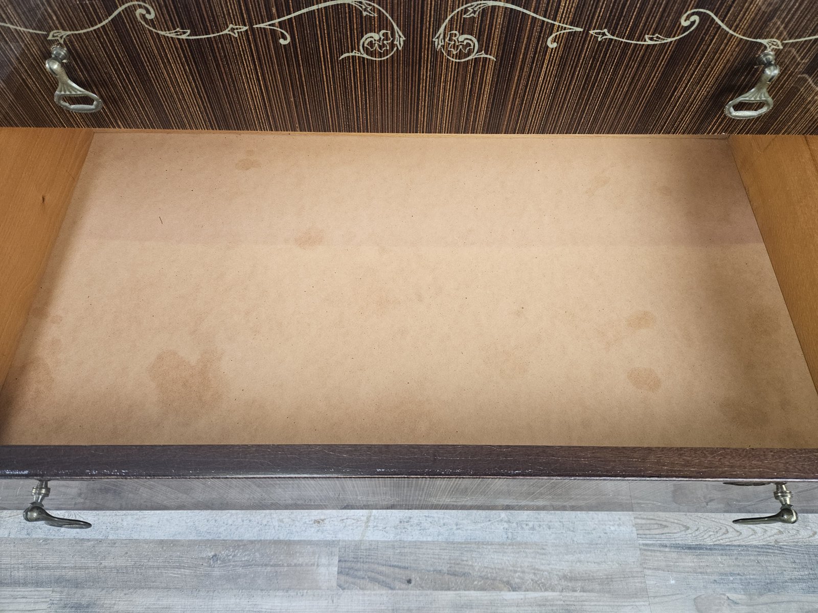 Mid-Century Kommode mit Blauem Glas & Vier Schubladen, 1960er