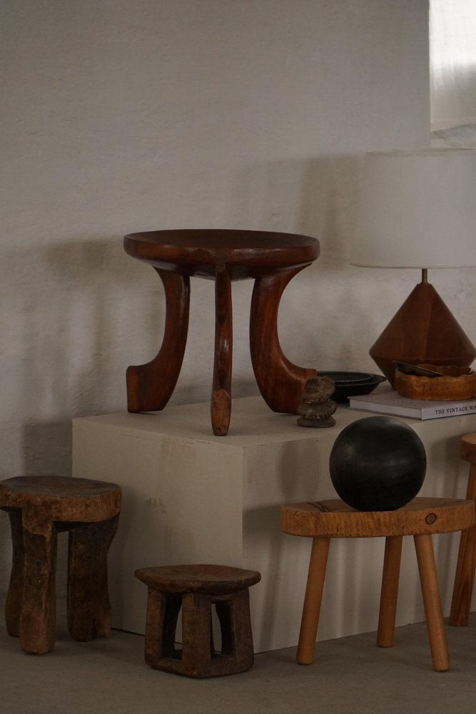 A beautifully crafted Oromo stool from Ethiopia, dating to the mid-20th century. Hand-carved from solid wood, this stool displays the clean, sculptural lines characteristic of Oromo design, combining both functionality and artistic expression. Its tactile surface and warm, natural patina reveal the careful, hands-on craftsmanship of the artisan, reflecting a deep respect for materials and tradition. Traditionally used as a seating object, it also serves as a decorative sculptural piece in modern interiors, offering a striking element in living rooms, hallways, or gallery displays. The simplicity of form and the subtle elegance of its hand-carved details make it a timeless example of East African tribal art. This stool embodies the aesthetic sensibilities, cultural significance, and practical artistry of the Oromo people, bridging the worlds of functional craft and contemporary decorative design.