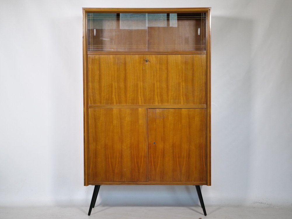Mid-Century Sekretär & Vitrine aus Nussholz von J. Düppre, 1960er