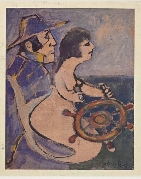 The spirit of navigation is a very beautiful ink and tempera on paper realized by Mino Maccari in 1963. The painting is hand-signed by the artist on the lower right corner, and on the back of the paper there is a charcoal drawing. Image Dimensions: 50 x 35 cm Mino Maccari was an Italian writer, painter, engraver and journalist, winner the Feltrinelli Prize for painting on 1963. For his pictorial work rich in evident chromatic accentuations and quick brushstrokes, the violent drawing combined with the living line of the graphic sign of his engravings, is recognized by the complete artist critic.