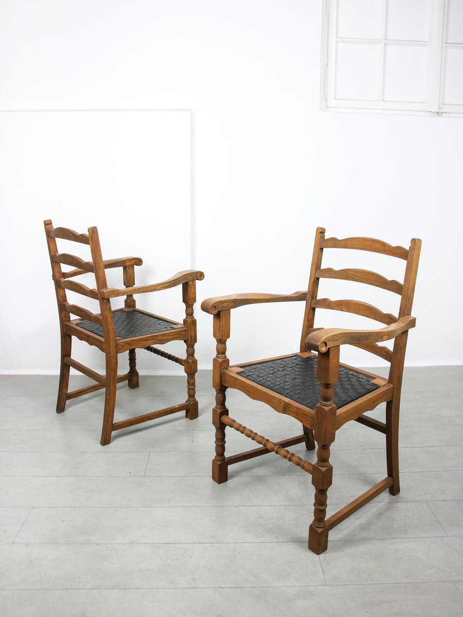 Mittelalterliche Vintage Stühle aus Eiche, 4er Set