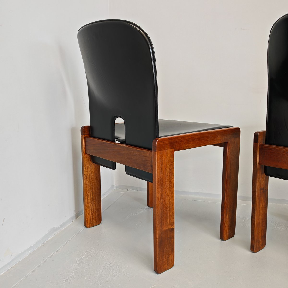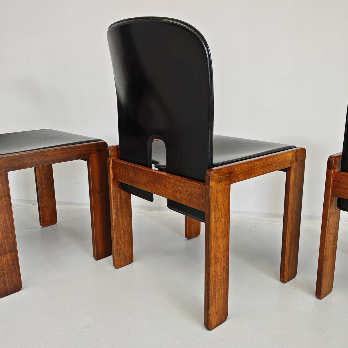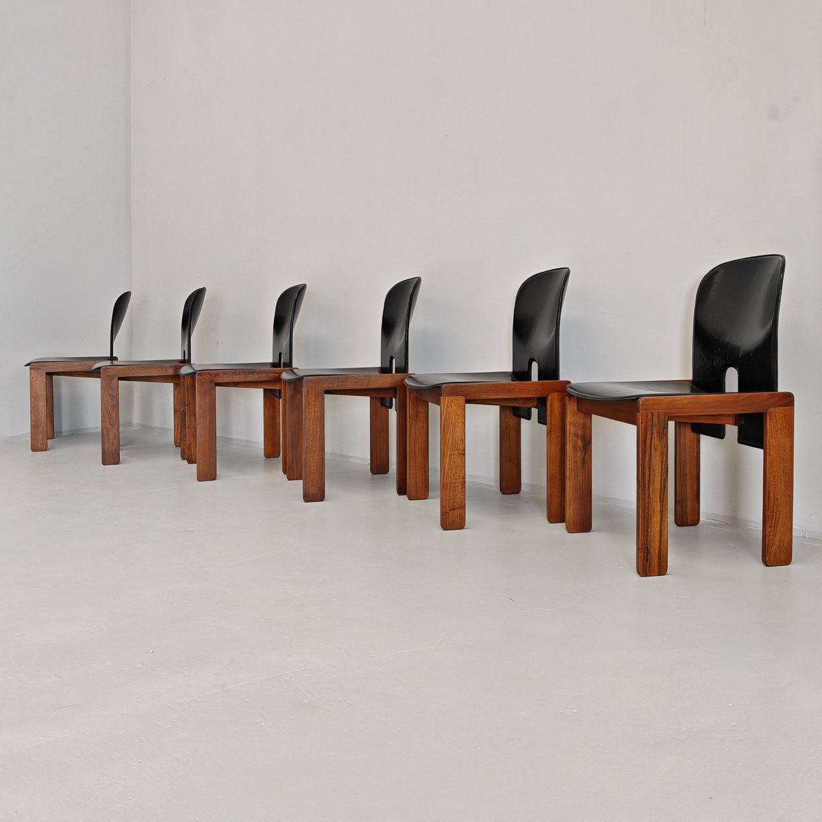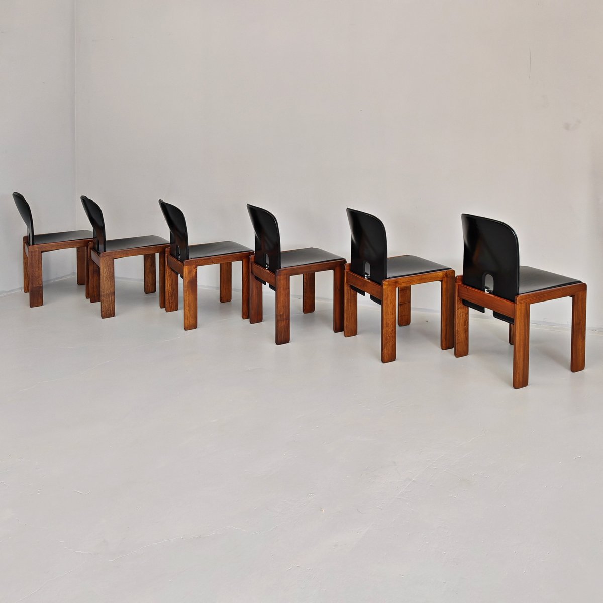 Modell 121 Stühle aus Leder & Nussholz von Afra & Tobia Scarpa für Cassina, 1960er, 6er Set