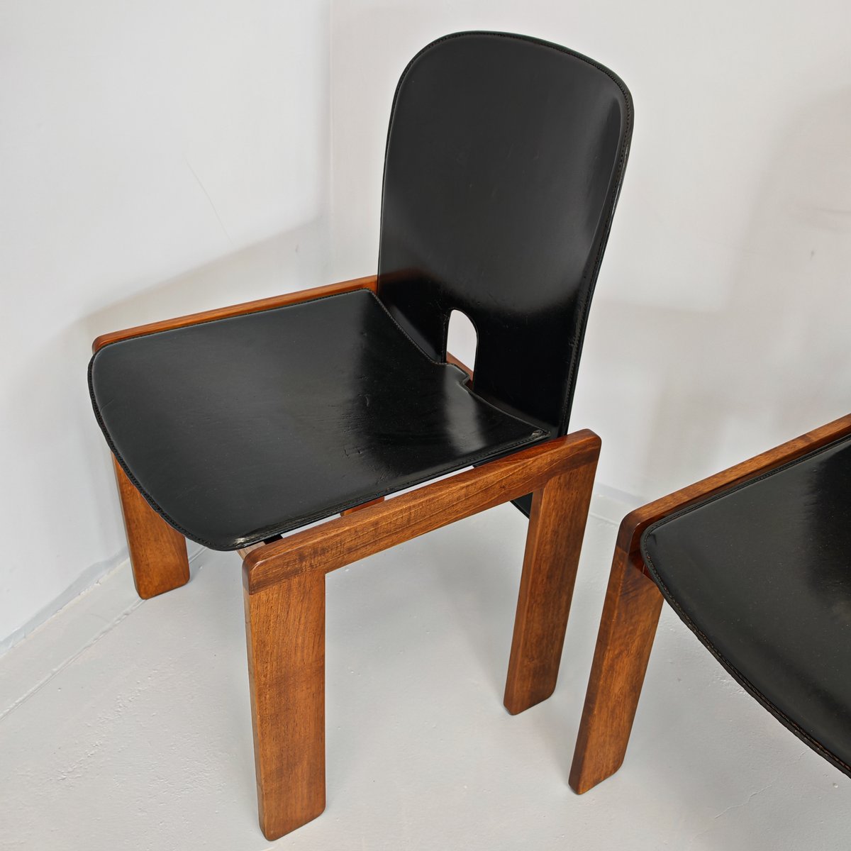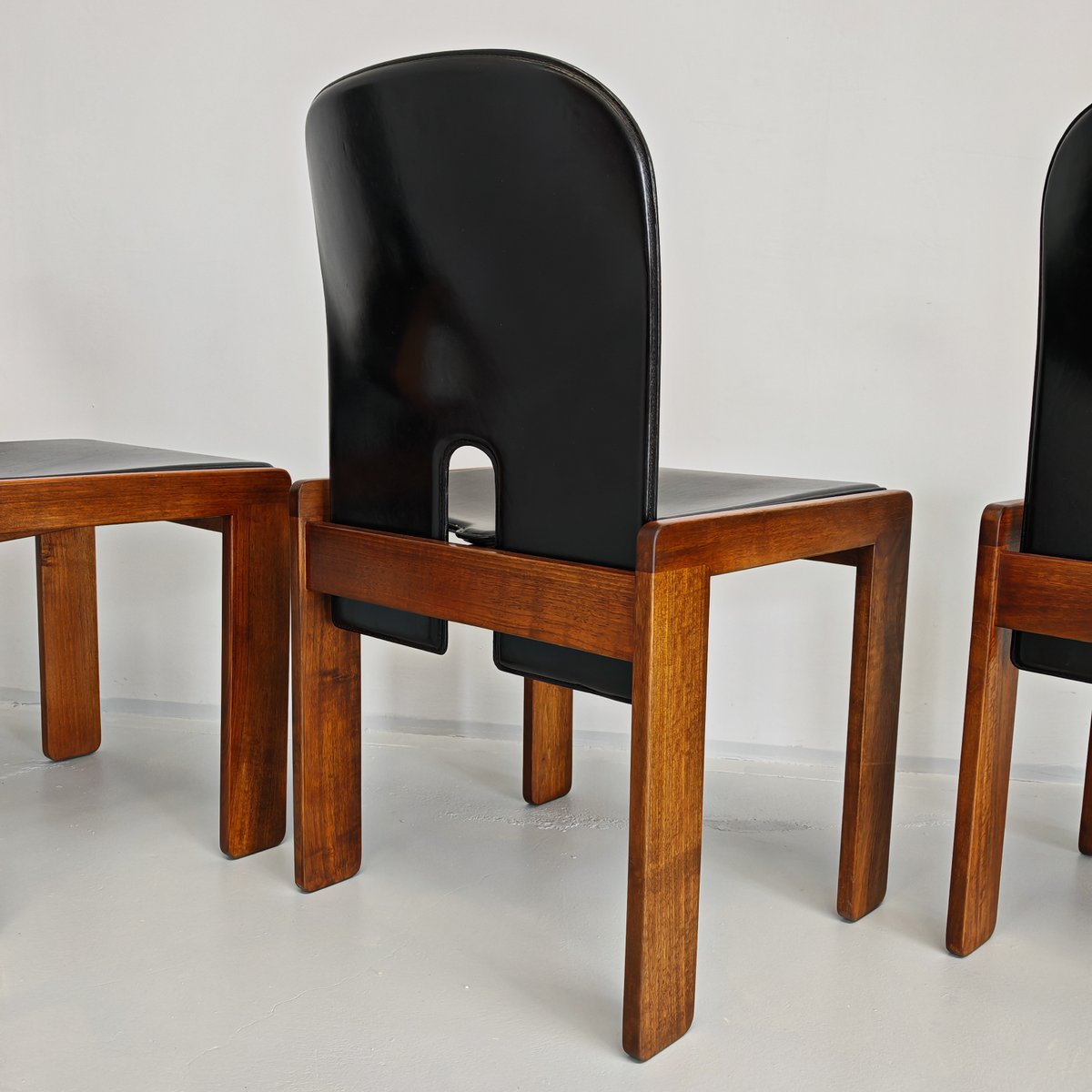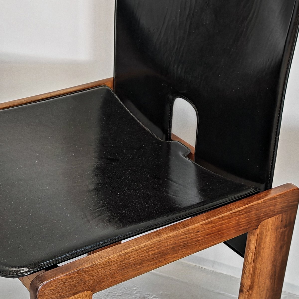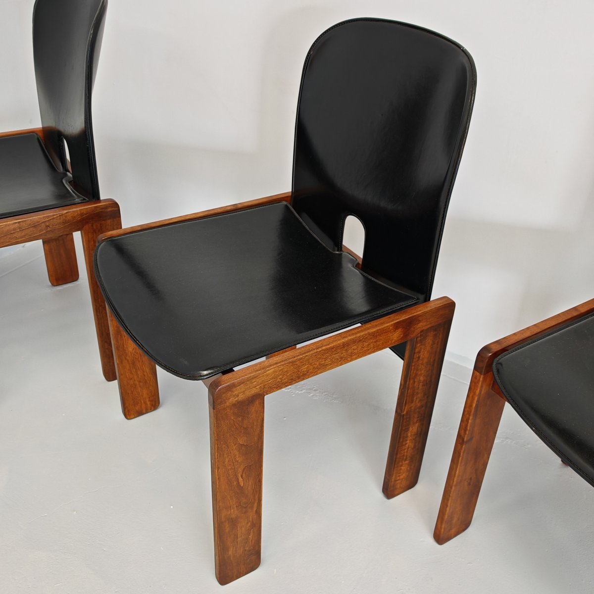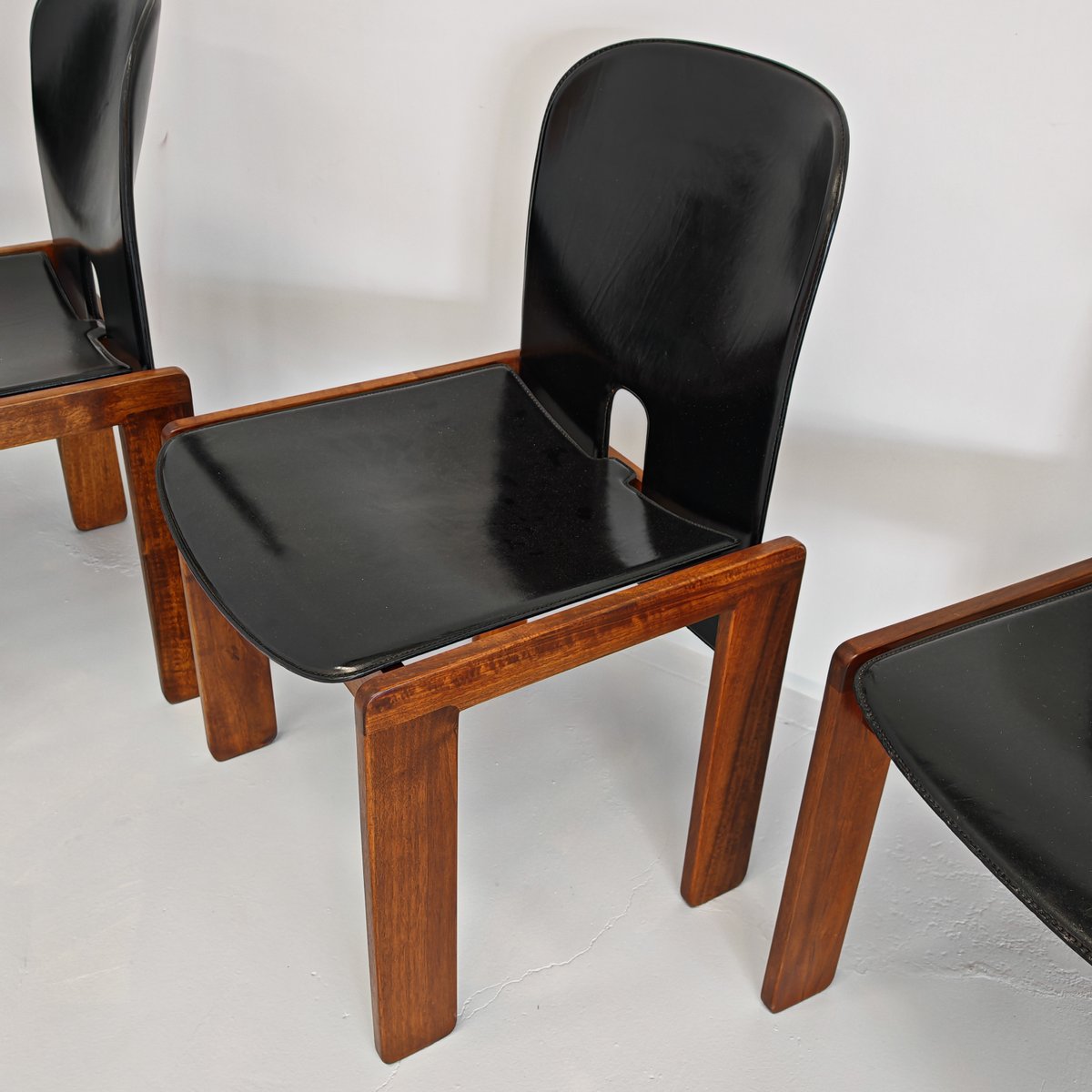Modell 121 Stühle aus Leder & Nussholz von Afra & Tobia Scarpa für Cassina, 1960er, 6er Set