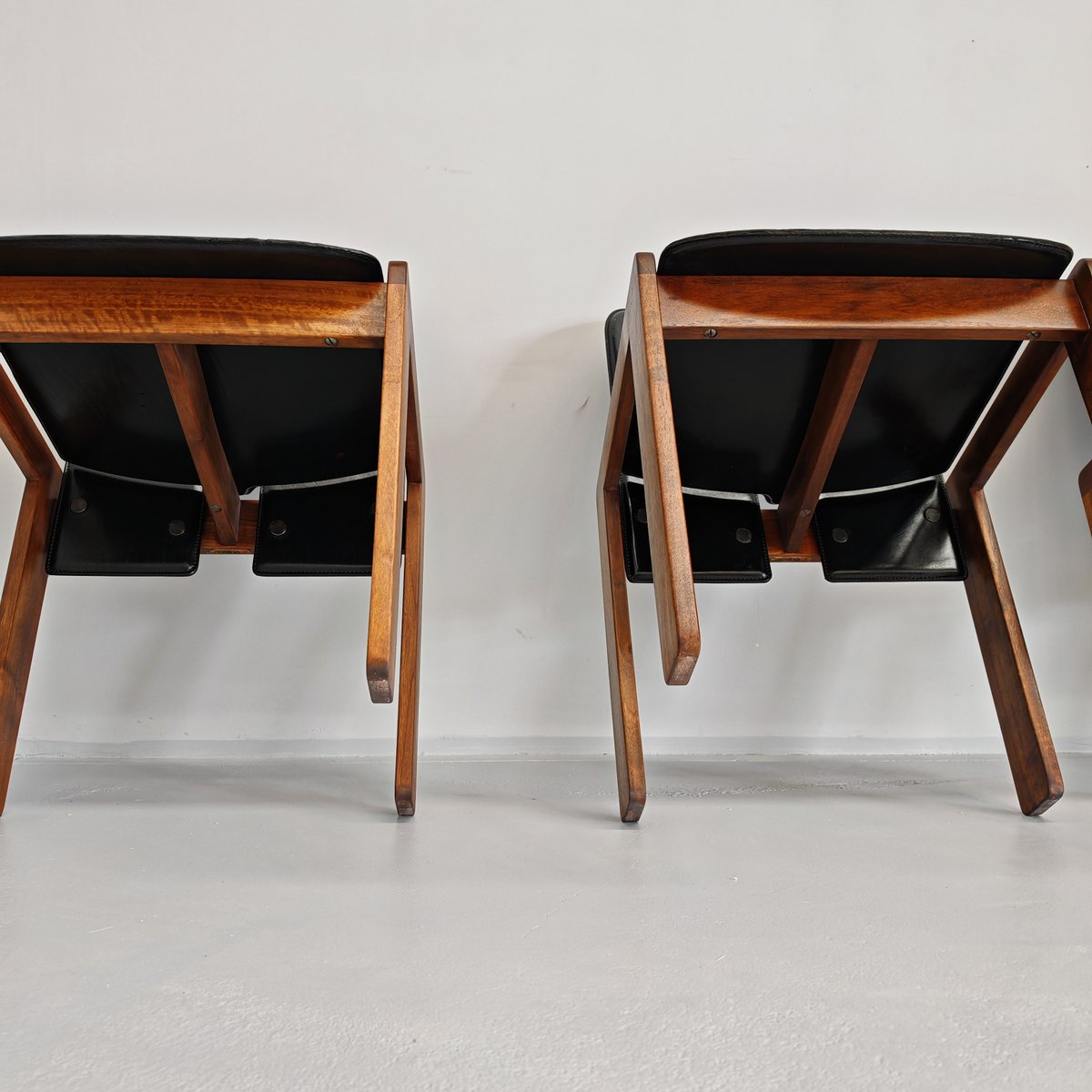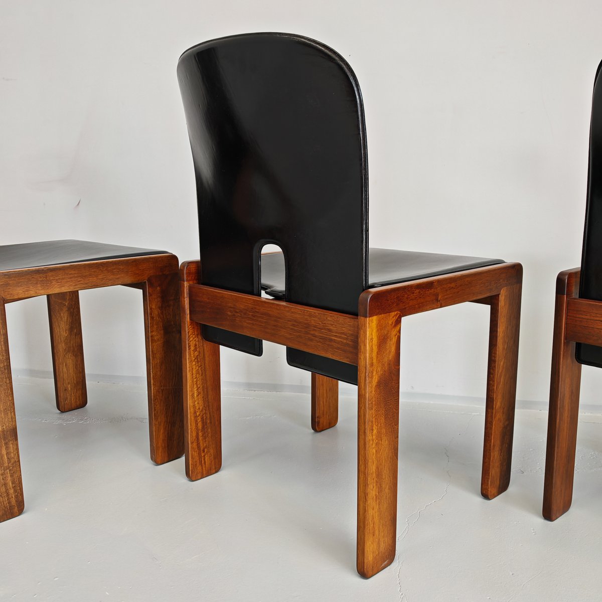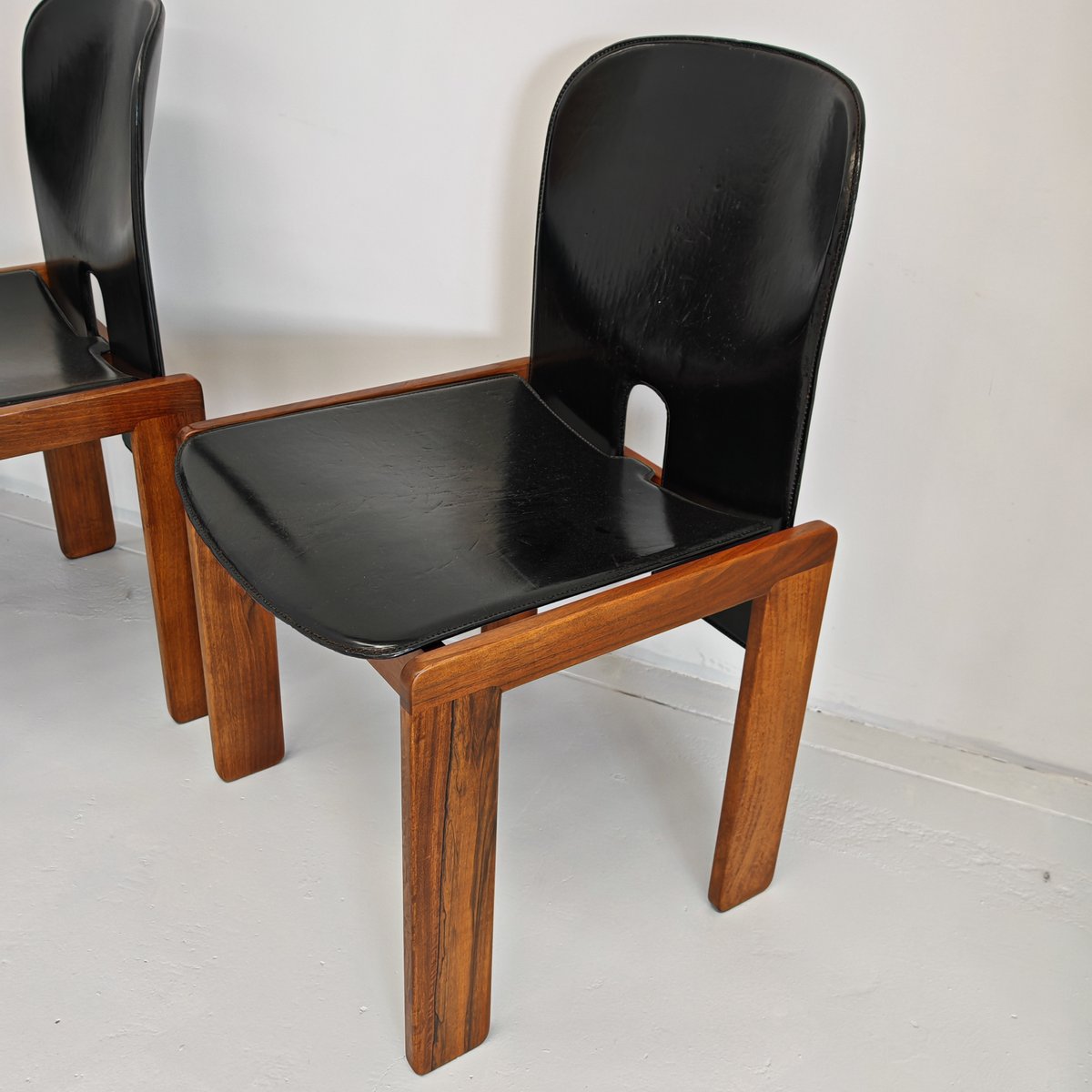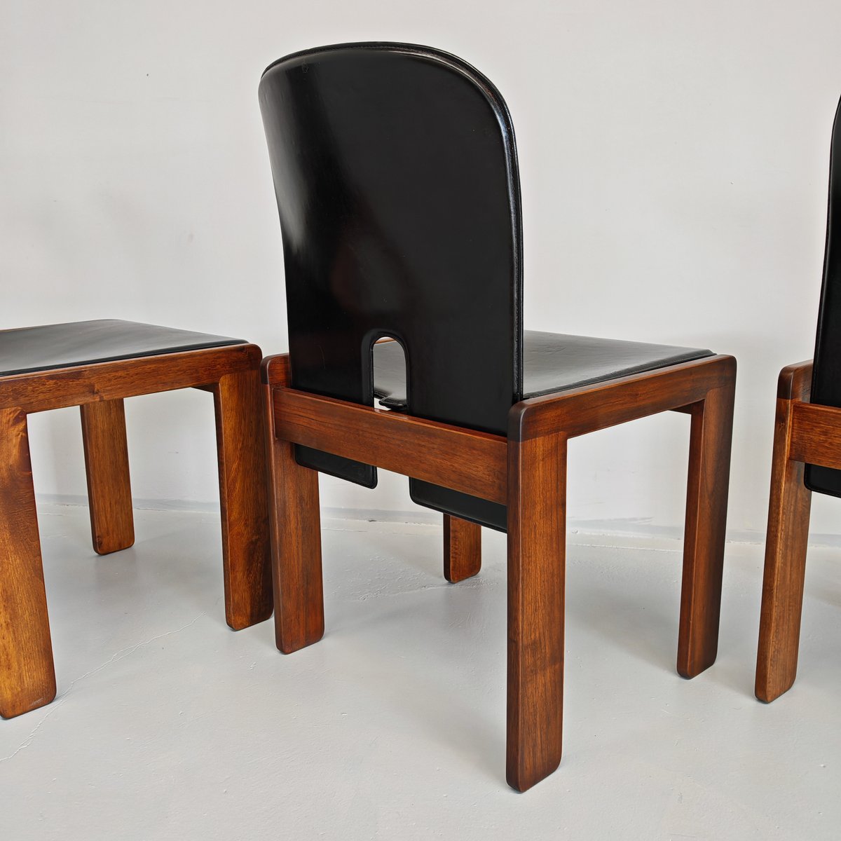 Modell 121 Stühle aus Leder & Nussholz von Afra & Tobia Scarpa für Cassina, 1960er, 6er Set