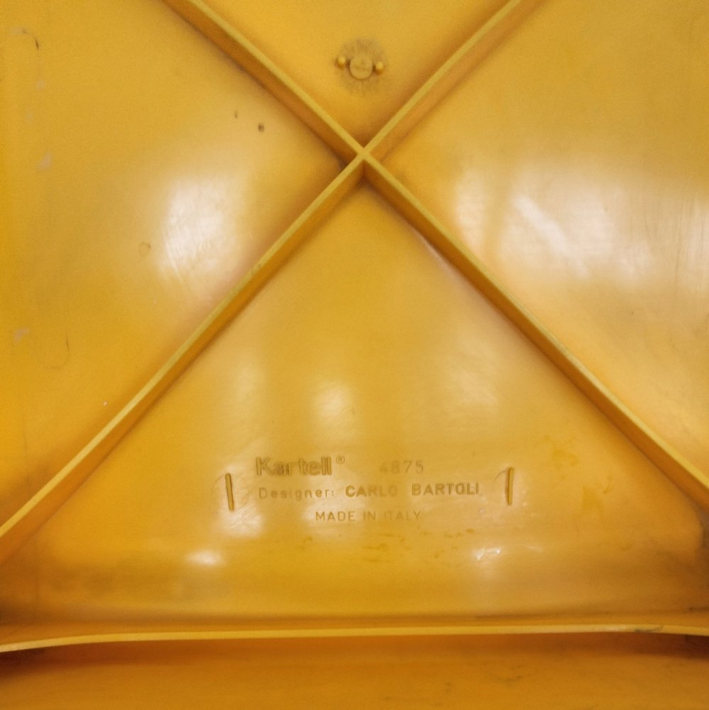 Die auf luxuriöses Plastikmobiliar und Dekorationen spezialisierte italienische Designmarke Kartell wurde 1949 von Giulio Castelli (1920 - 2006) und seiner Frau Anna Ferrieri (1918 - 2006) in Mailand gegründet. Als Sohn eines Plastikforschers war Castelli von experimentellen, neuartigen Materialien von klein auf sehr angetan und studierte später chemische Verfahrenstechnik bei dem Nobelpreisträger und Chemiker Giulio Natta. Währenddessen studierte Ferrieri am Polytechnikum in Mailand bei dem einflussreichen, neo-rationalistischen Architekten und Designer Franco Albini.
