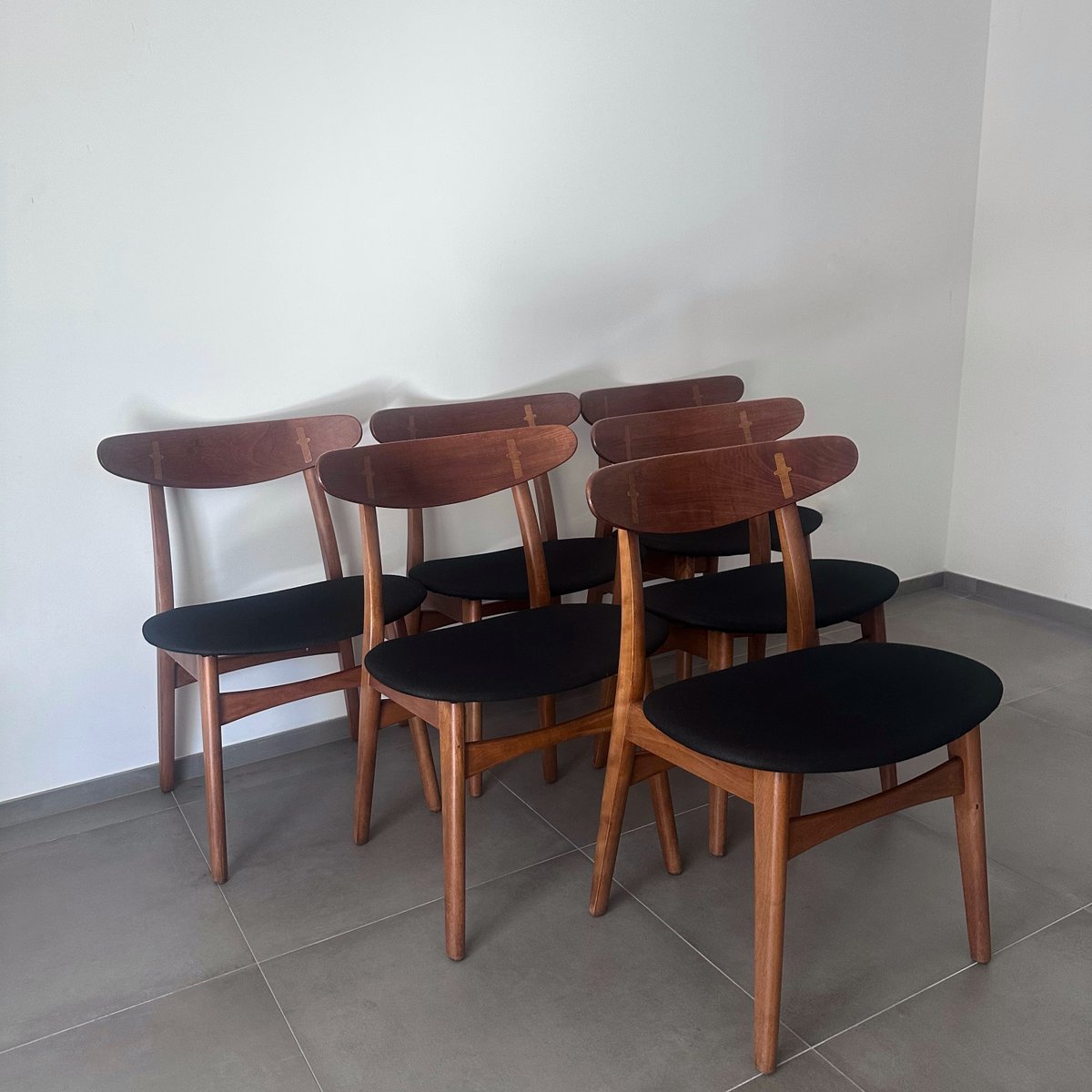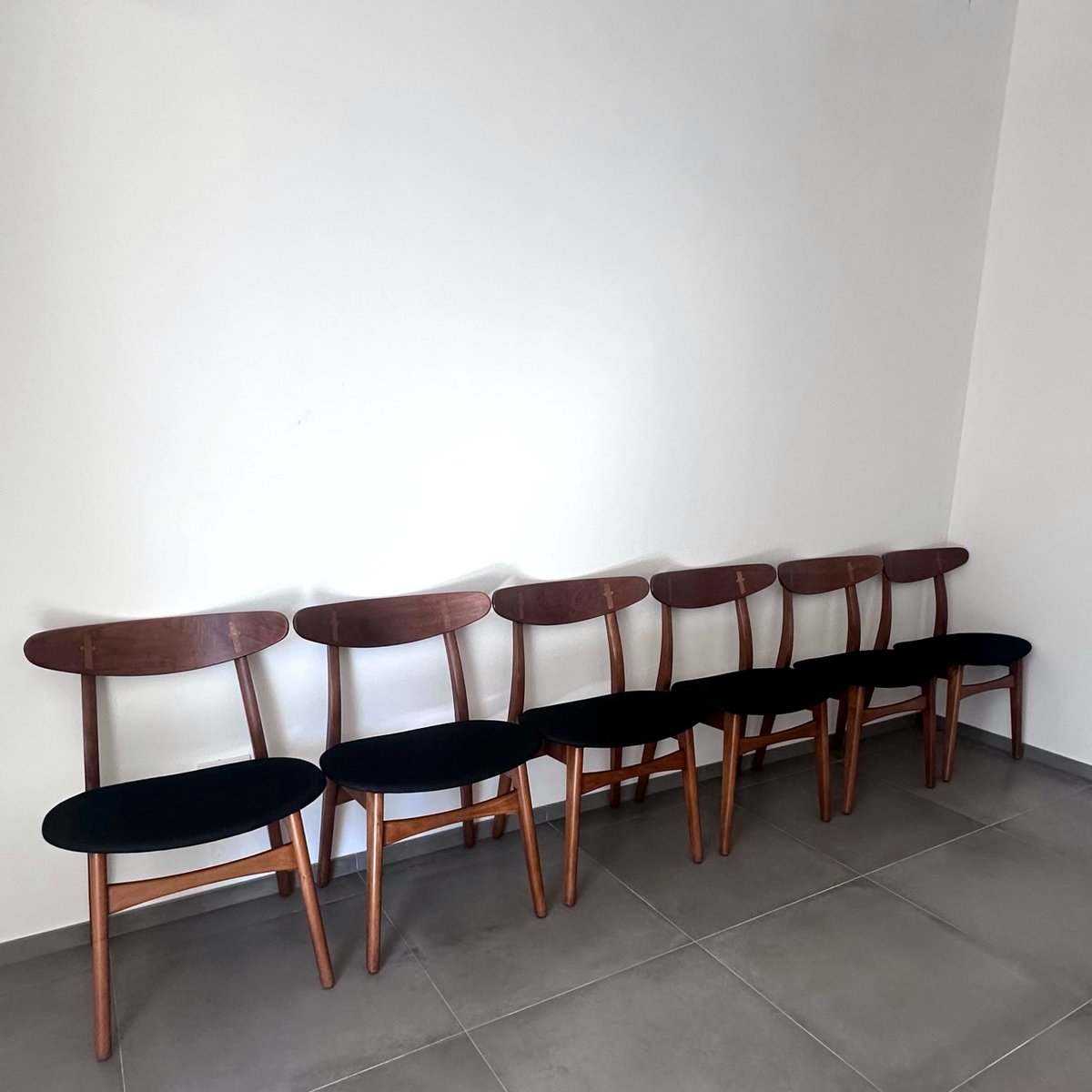 Innerhalb der ersten drei Wochen bei dem Unternehmen entwarf Wegner den CH22 Sessel, den CH23 Esszimmerstuhl, den CH24 Wishbone Stuhl und den CH25 Sessel für Carl Hansen & Søn. Diese erste Kollektion, die 1950 auf den Markt kam, machte sowohl Wegner als auch Carl Hansen & Søn international berühmt. Die mutigen skulpturalen Designs sowohl des Wishbone Stuhles als auch des CH25 Sessels brachen mit der Tradition und waren radikal für die Zeit. Wegners Verwendung von Papierkordel-Gewebe—ein während des Krieges verwendetes Ersatzmaterial— für den Sitz seines CH25 war etwas vollkommen Neues. Holgers Entscheidung, in die Arbeiten eines nahezu unbekannten Designers zu investieren, war ein großes Risiko, jedoch eines, das sich für den Hersteller auszahlen sollte.