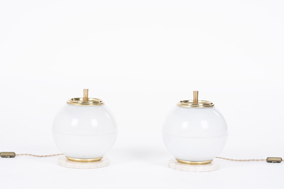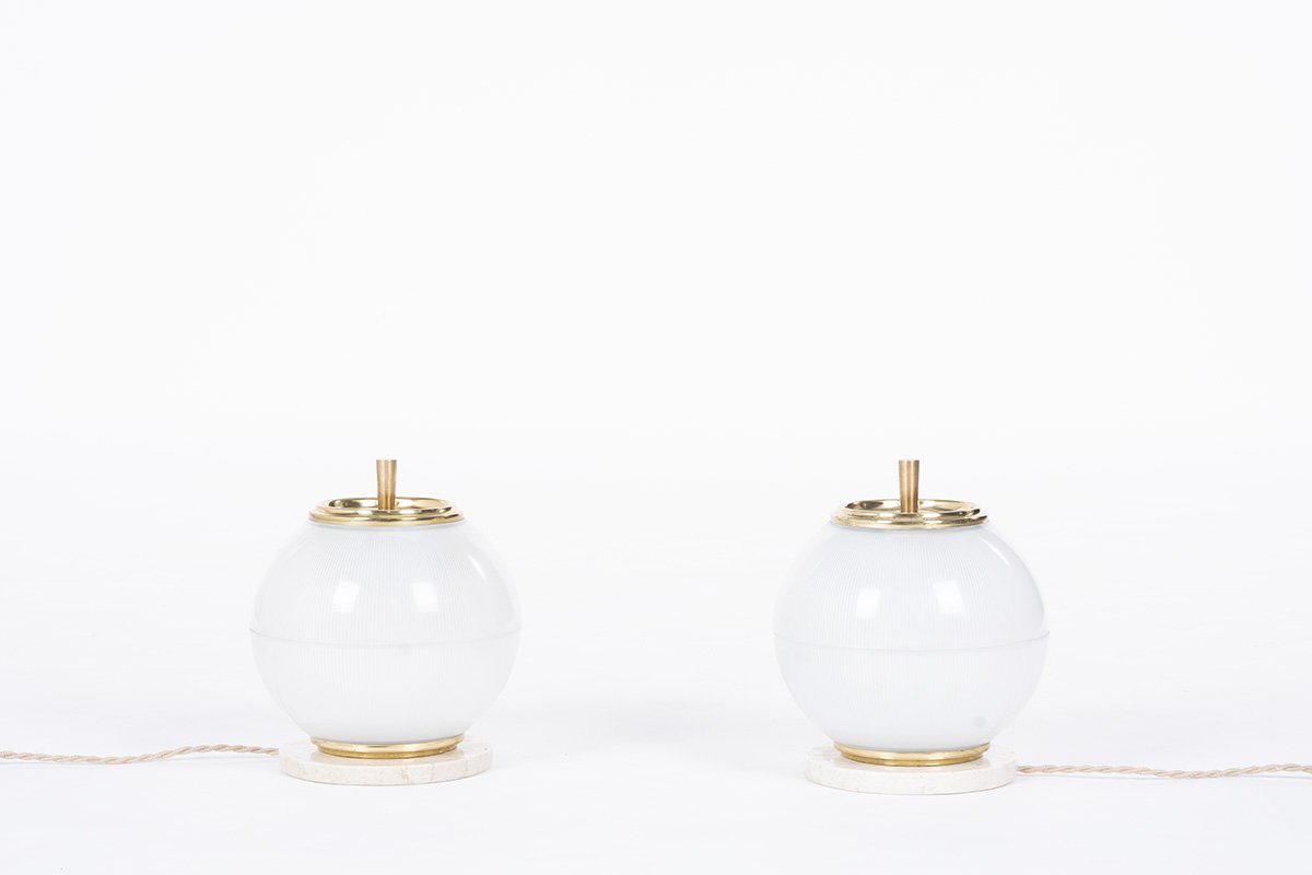 Modell Holophane Lampen aus Messing & Marmor, 1960er, 2er Set