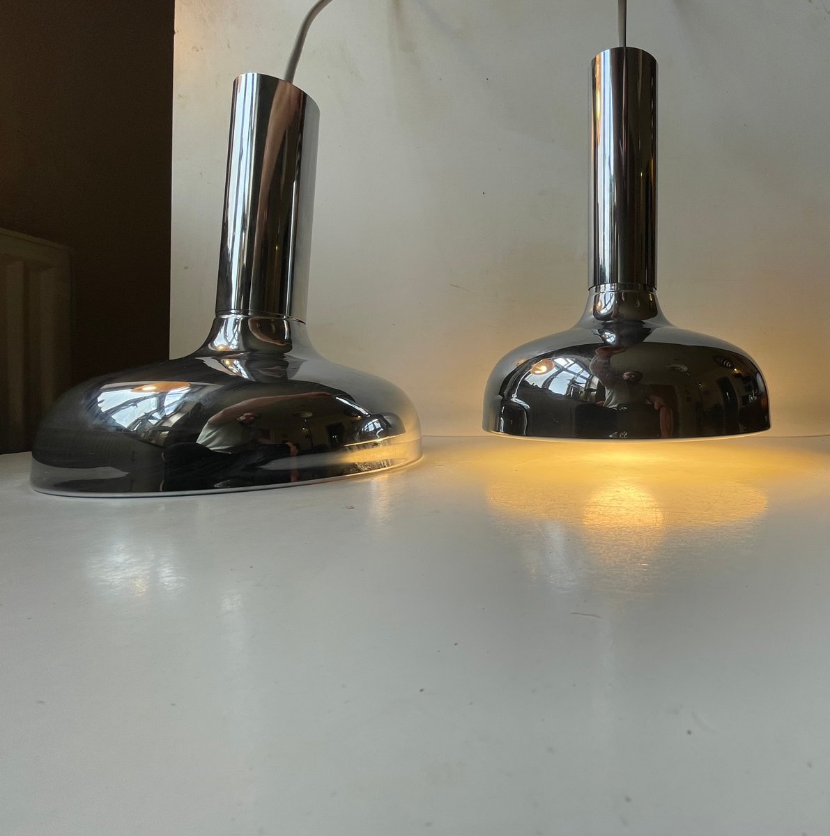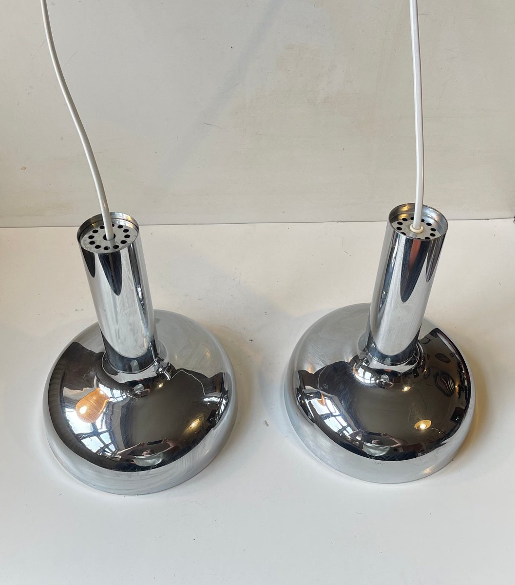 Moderne dänische Hängelampen aus verspiegeltem Chrom von Frank Bentler, 1970er, 2er Set