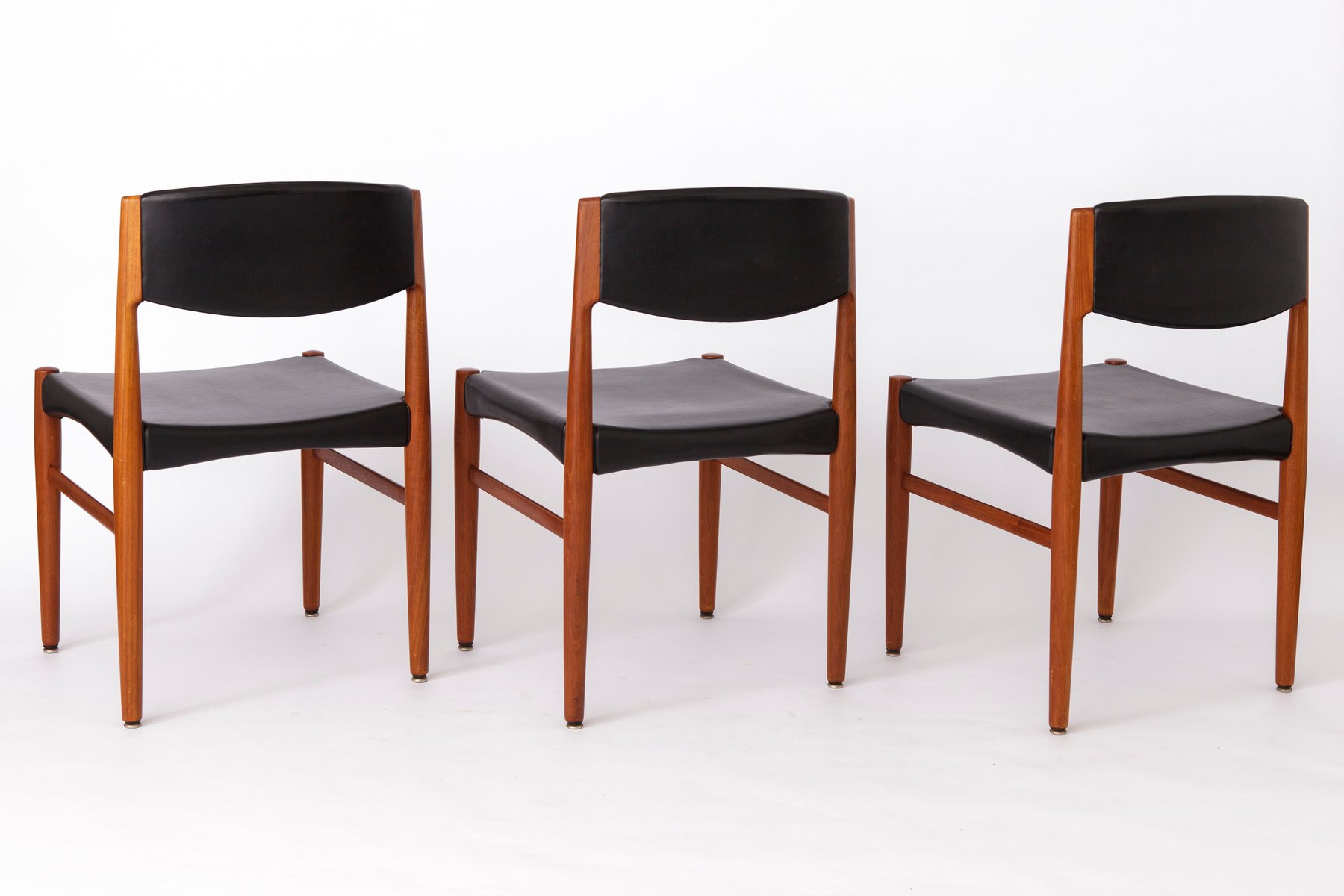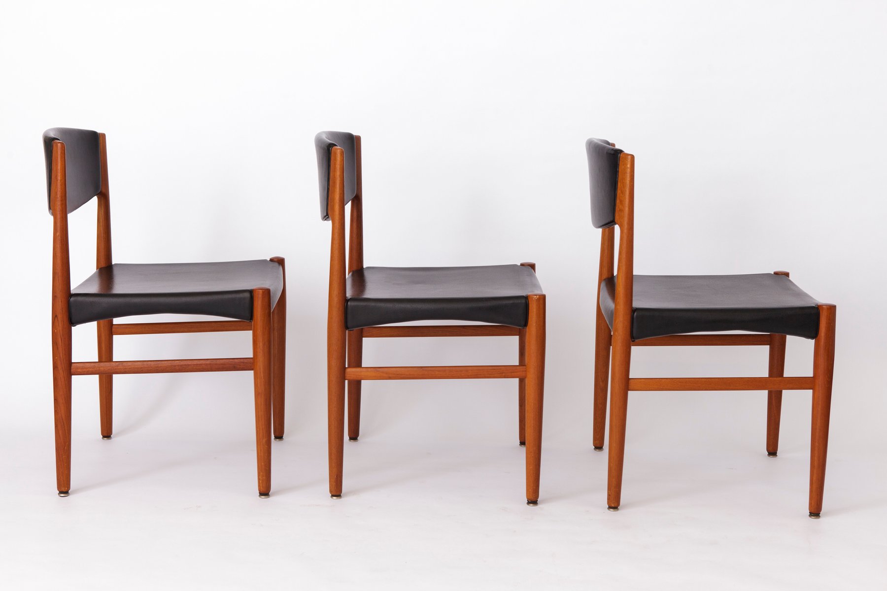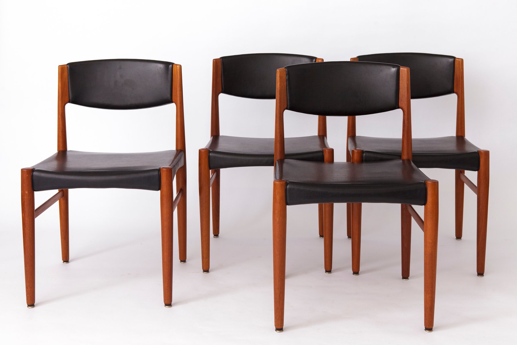 Moderne Mid-Century Teak Esszimmerstühle mit schwarzen Ledersitzen von Grete Jalk für Glostrup, Dänemark, 1960er, 4er Set