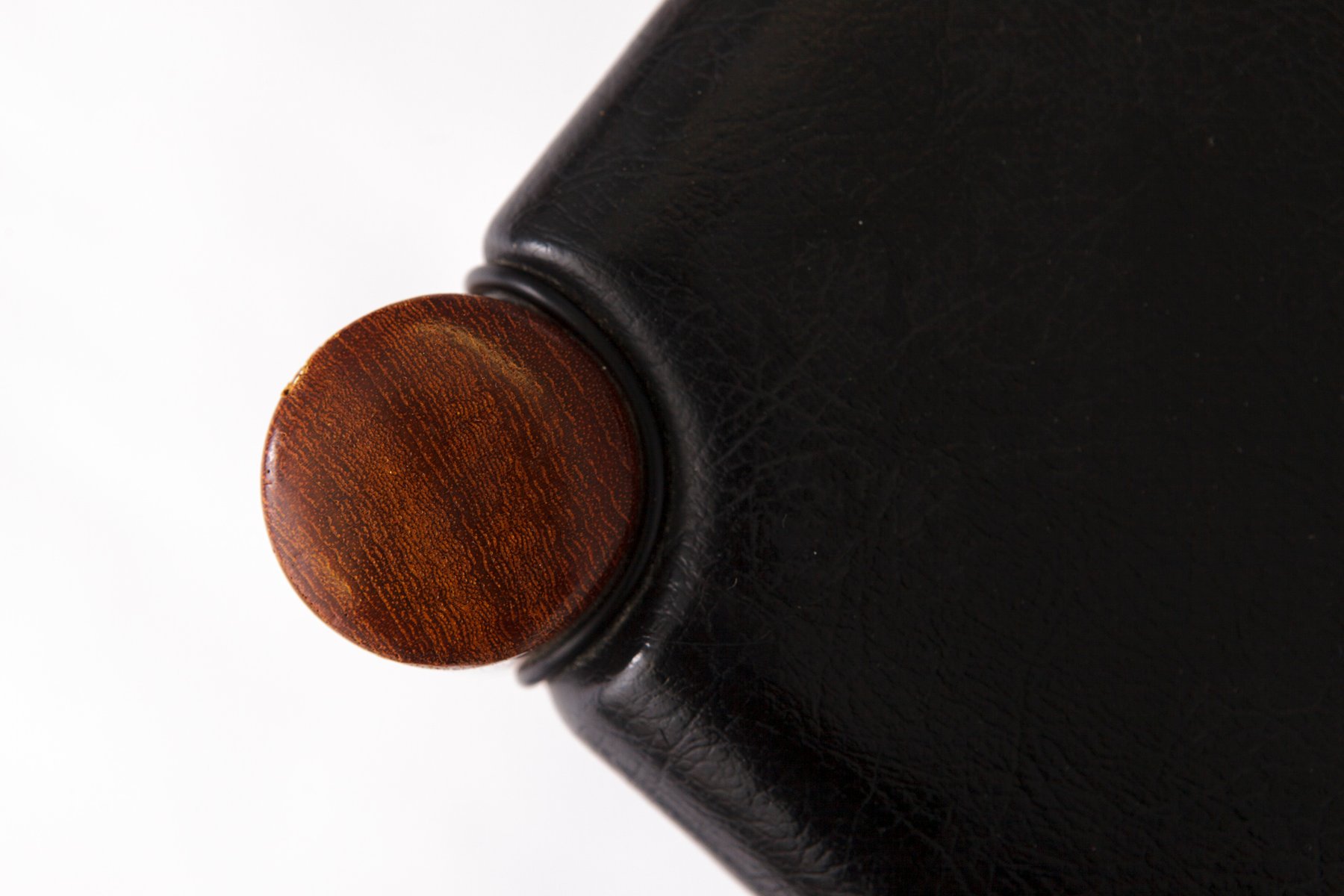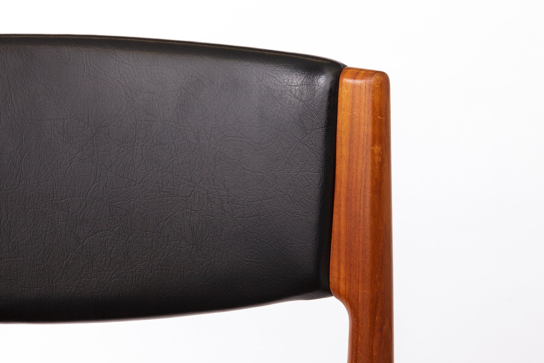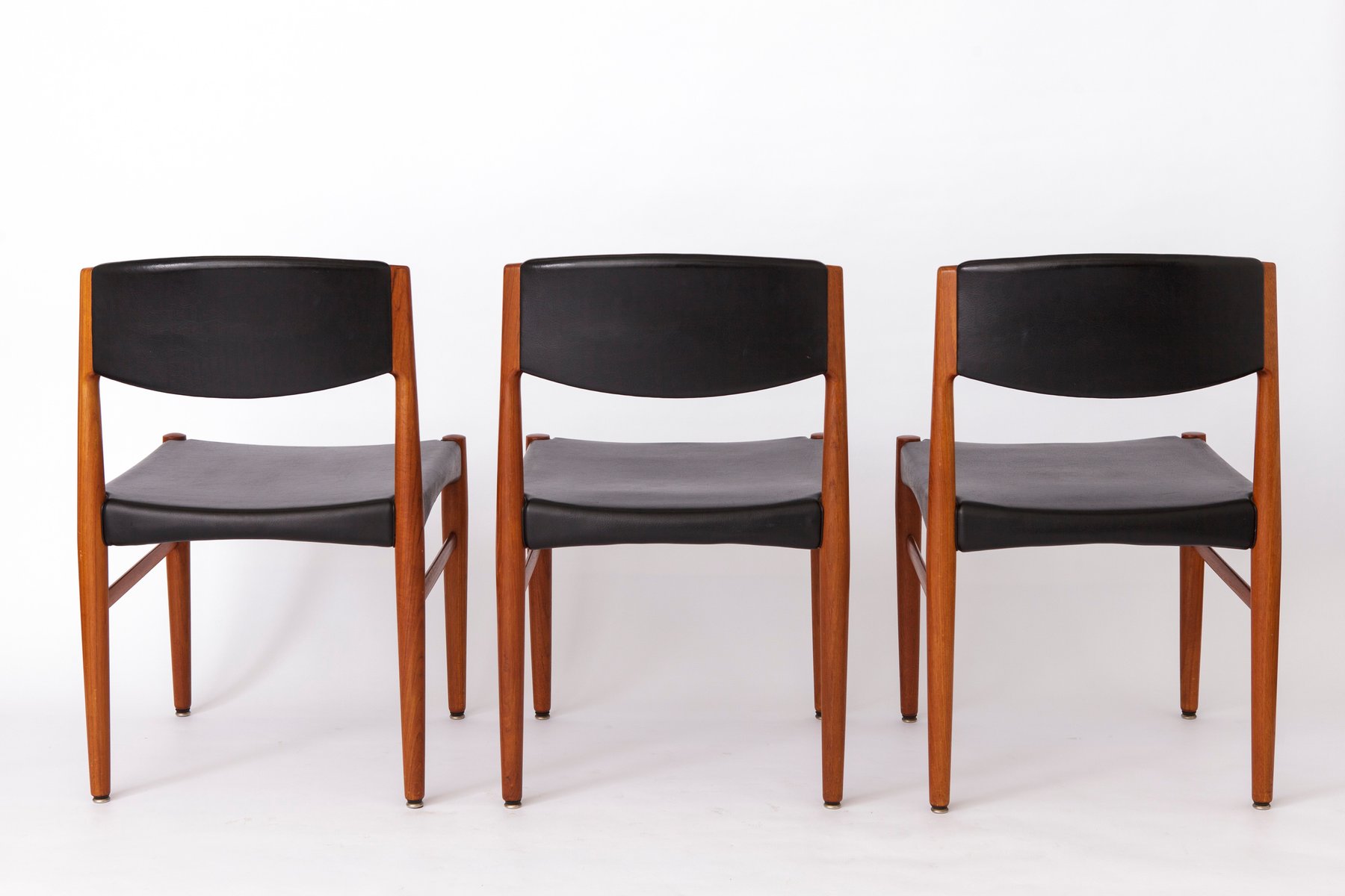 Moderne Mid-Century Teak Esszimmerstühle mit schwarzen Ledersitzen von Grete Jalk für Glostrup, Dänemark, 1960er, 4er Set