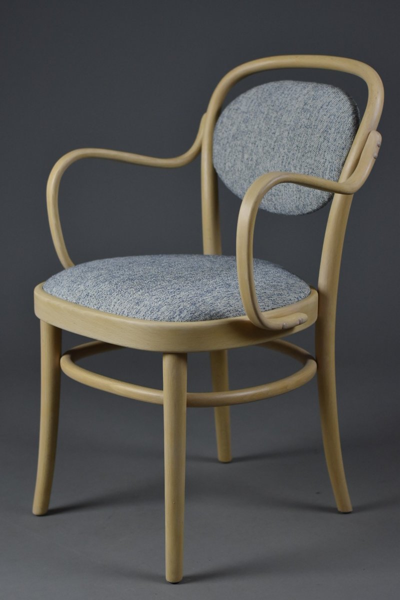 Seats and backrests reupholstered with a high-quality melange wool fabric in soft blue (from a premium European supplier)