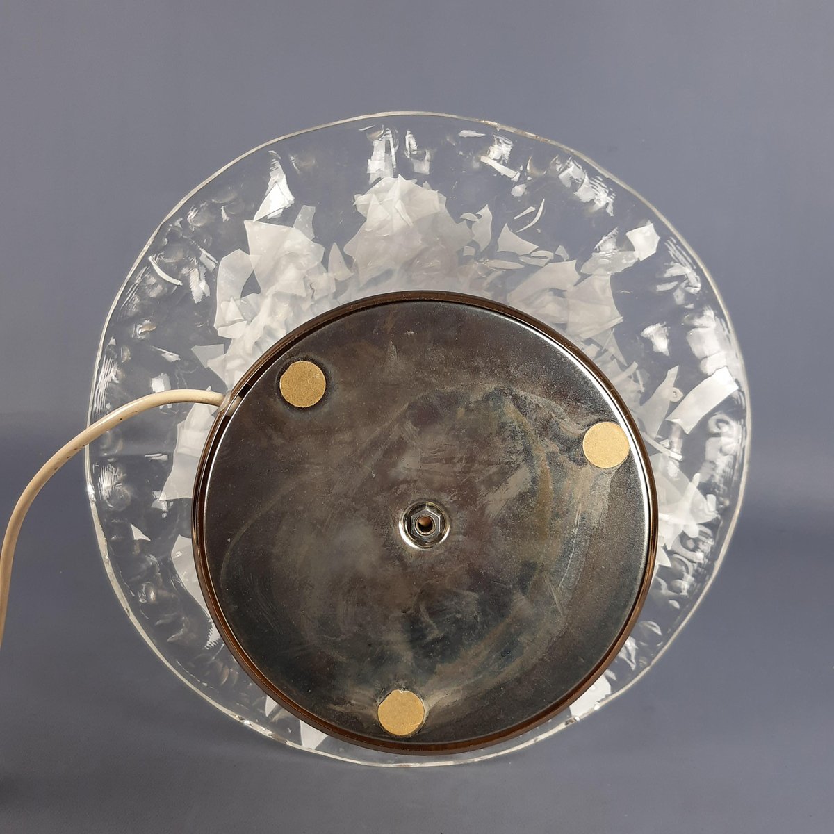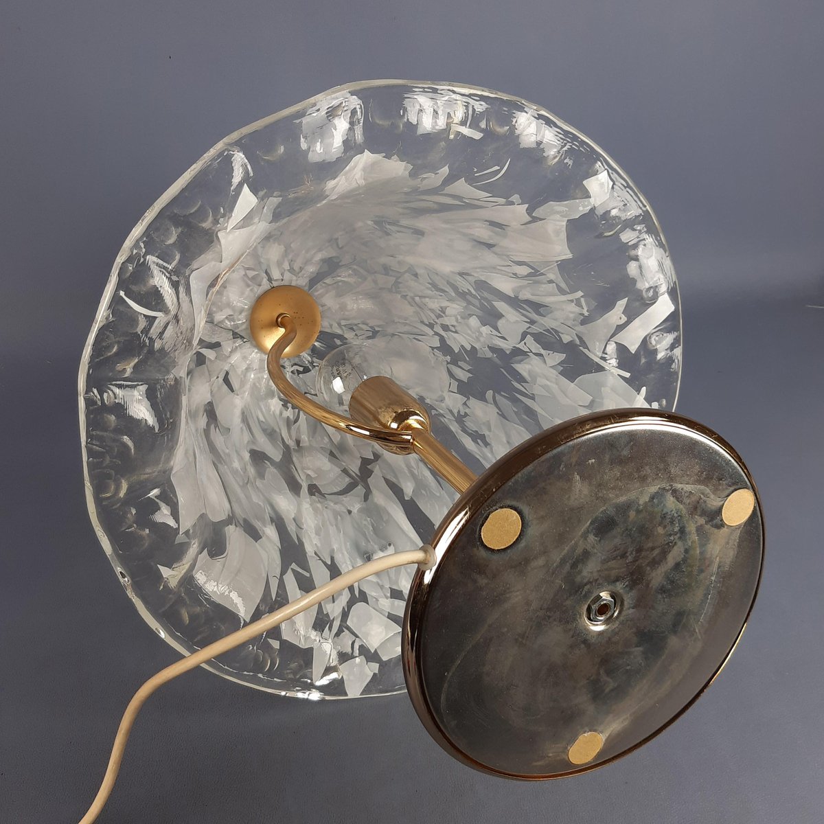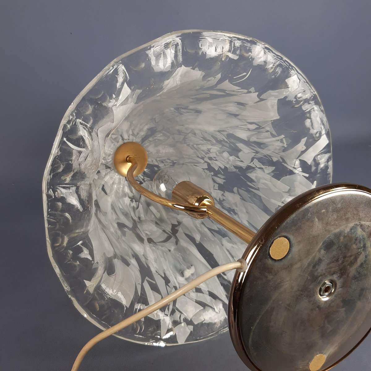 Zustand: Ausgezeichneter Vintage-Zustand. Sowohl das Glas als auch der Messingsockel sind gut erhalten (leichte Spuren auf dem Messingsockel sind typisch für das Alter, behalten aber ihren Charme). Funktioniert einwandfrei.
