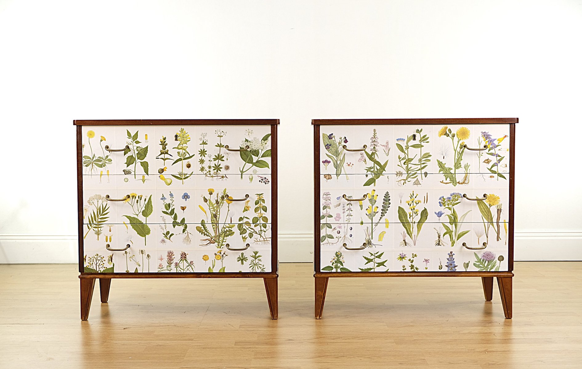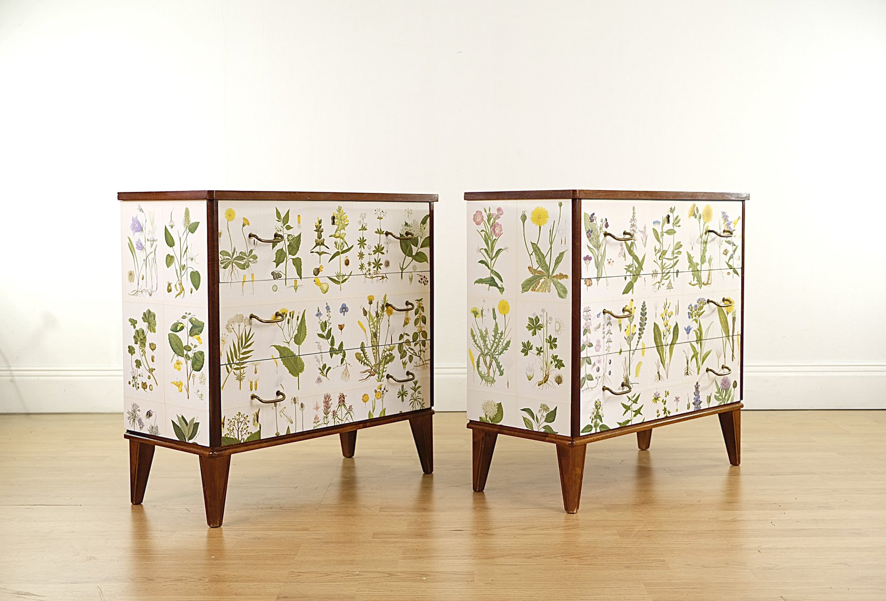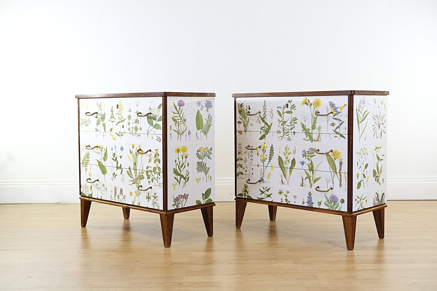 Moderne skandinavische Kommoden mit Nordens Flora Illustrationen, 1940er, 2 . Set