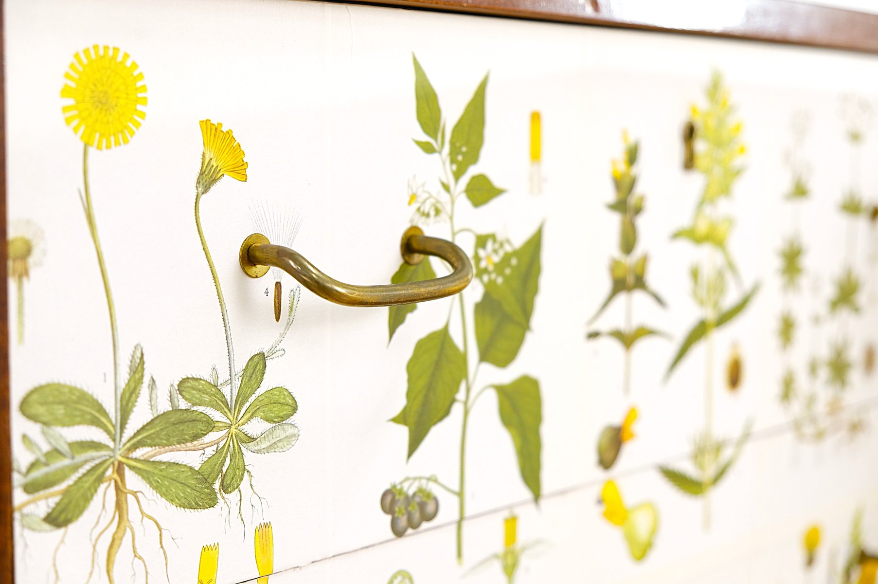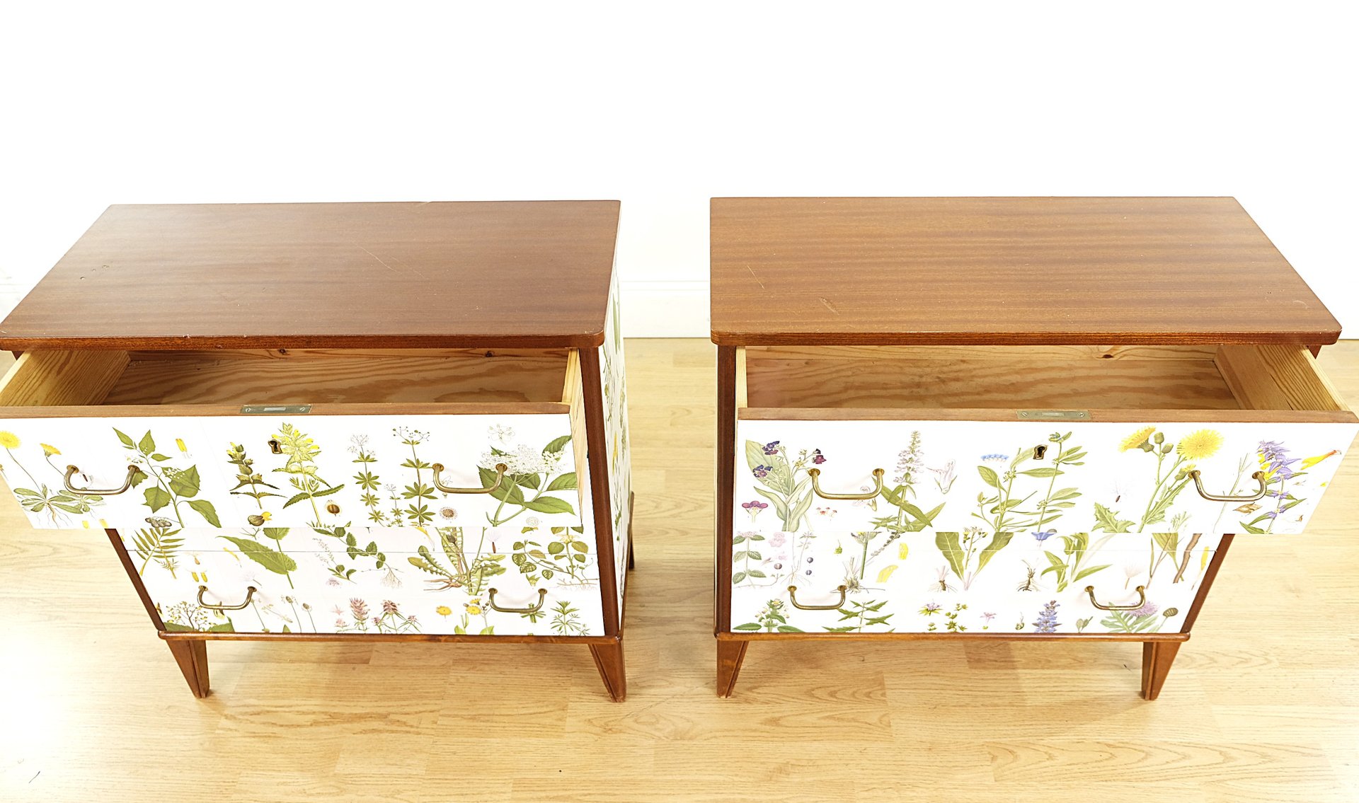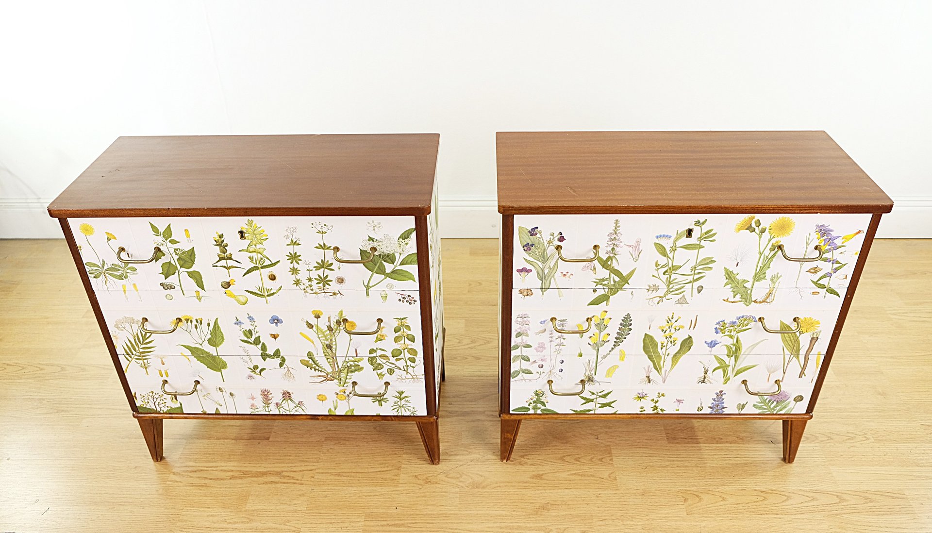 Moderne skandinavische Kommoden mit Nordens Flora Illustrationen, 1940er, 2 . Set
