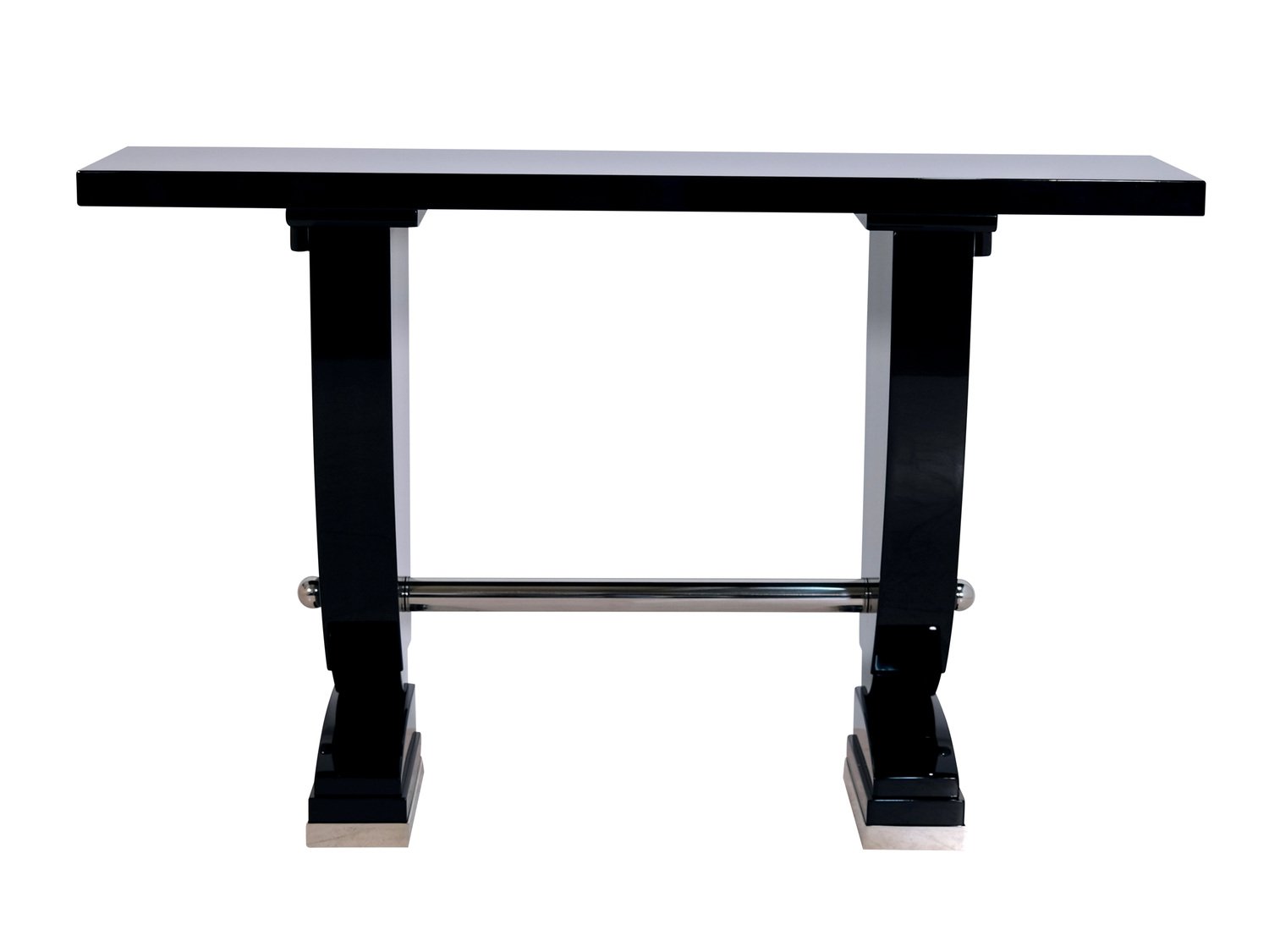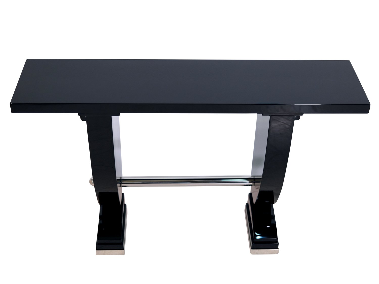 Moderner französischer Art Deco Konsolentisch aus Schwarzem Lack & Verchromtem Metall, 1930er