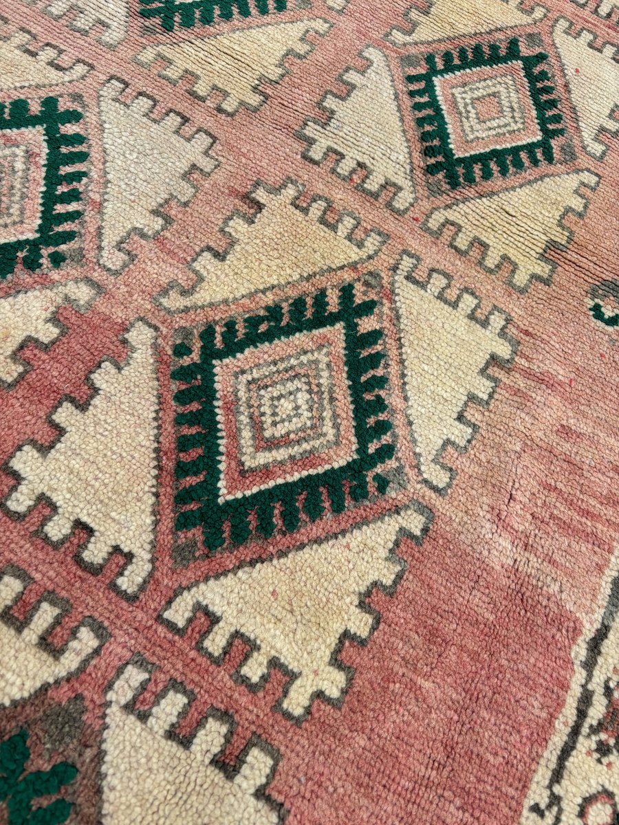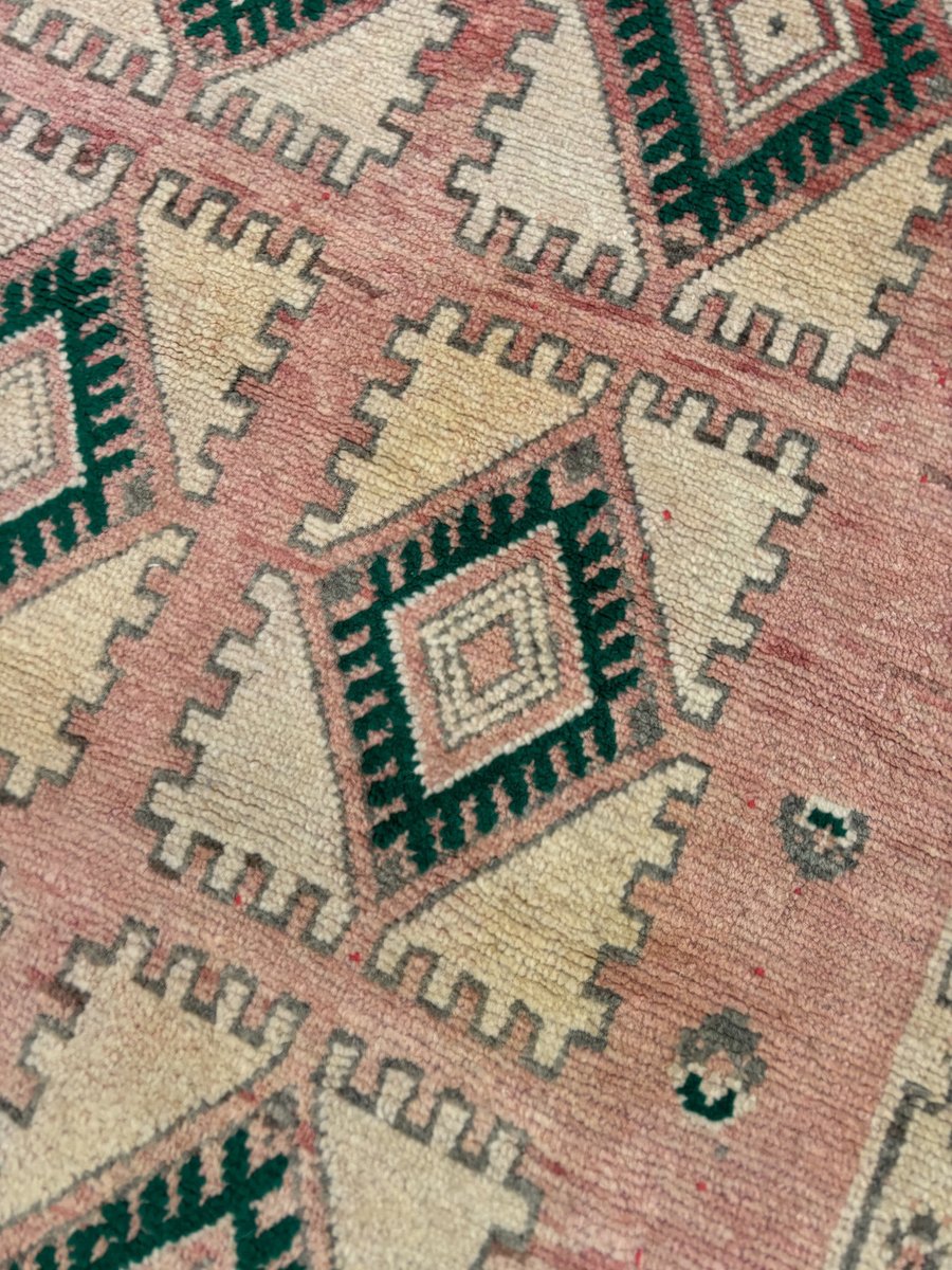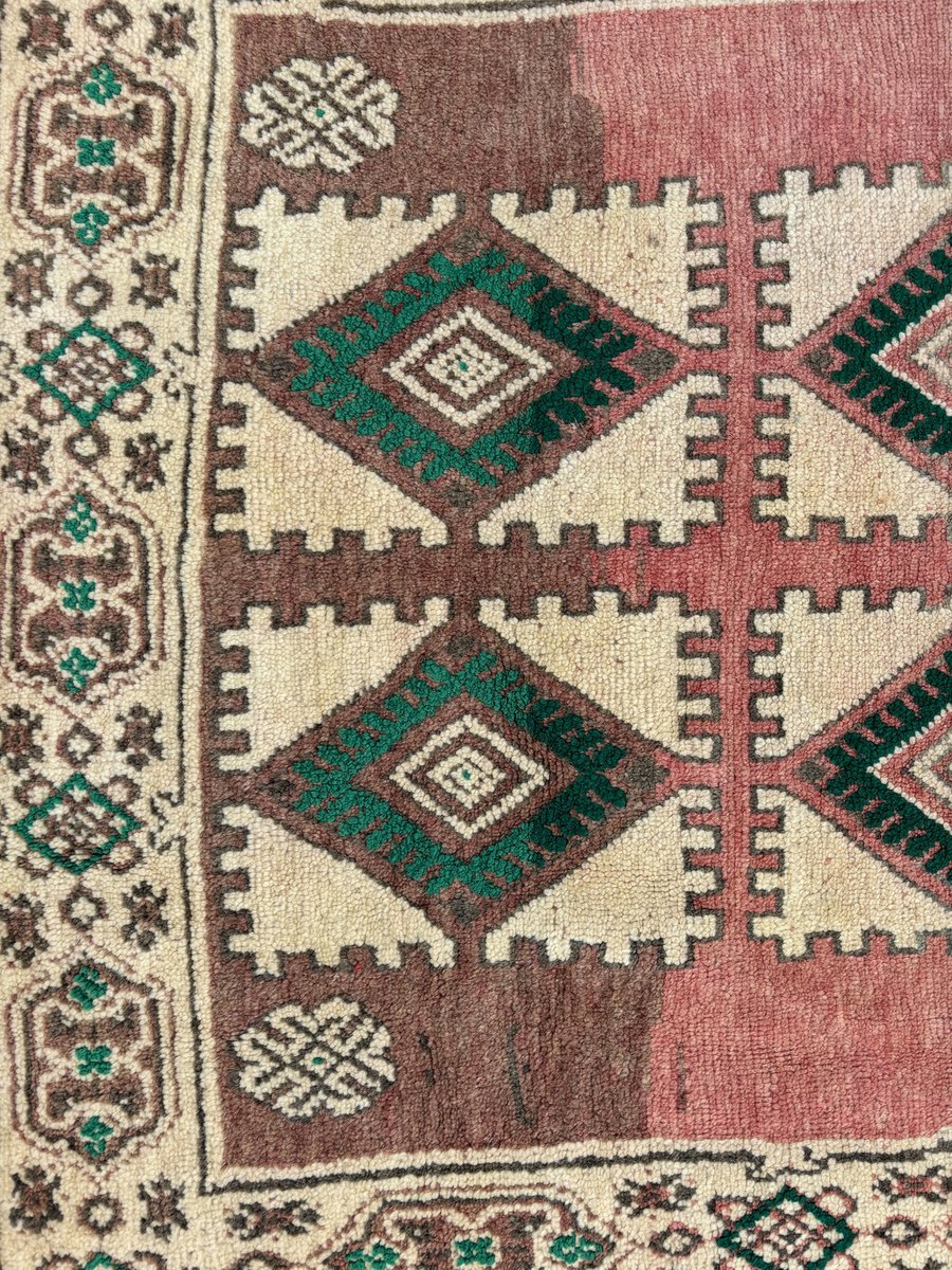 Discover the timeless elegance of this stunning Boujad rug, handwoven in the Atlas Mountains of Morocco. This one-of-a-kind piece is the result of the ancestral craftsmanship of Berber women, who have passed down the art of traditional weaving through generations.