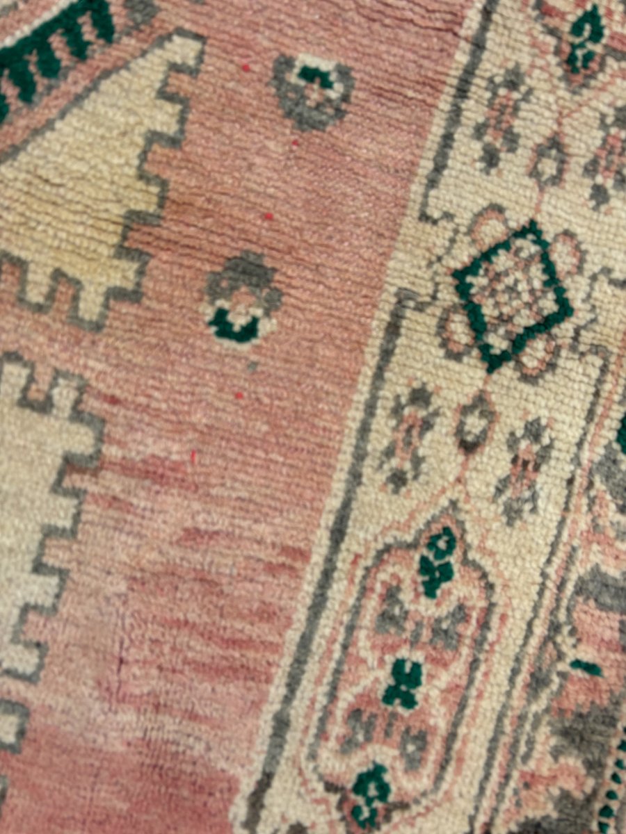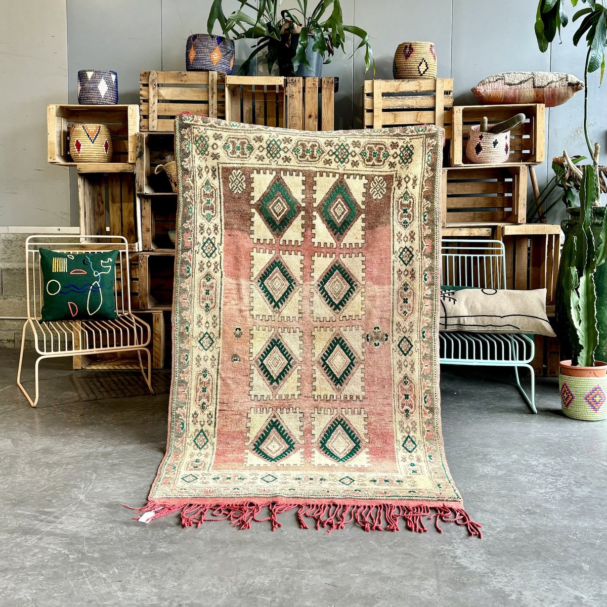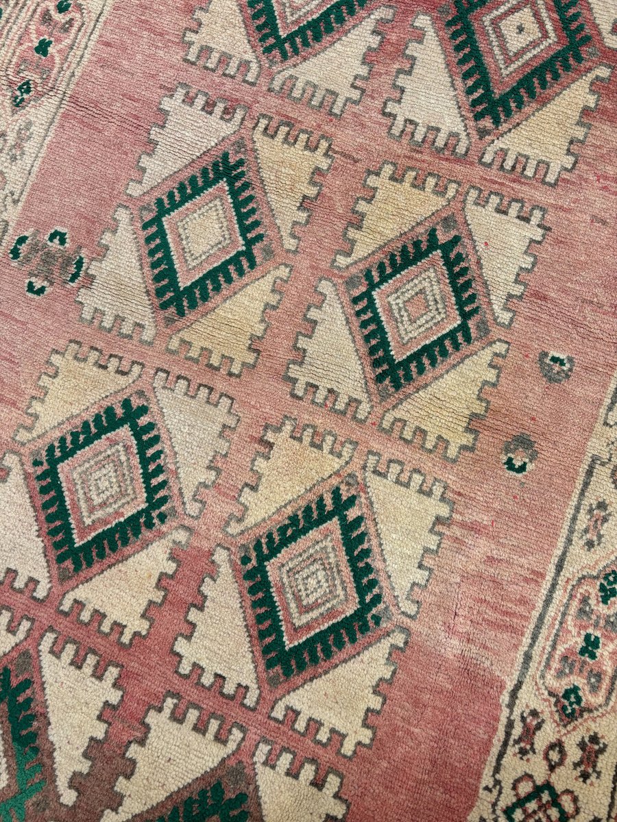 Discover the timeless elegance of this stunning Boujad rug, handwoven in the Atlas Mountains of Morocco. This one-of-a-kind piece is the result of the ancestral craftsmanship of Berber women, who have passed down the art of traditional weaving through generations.