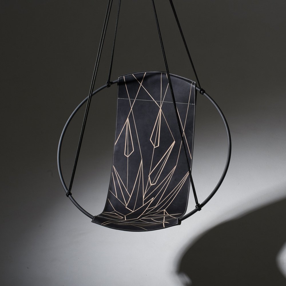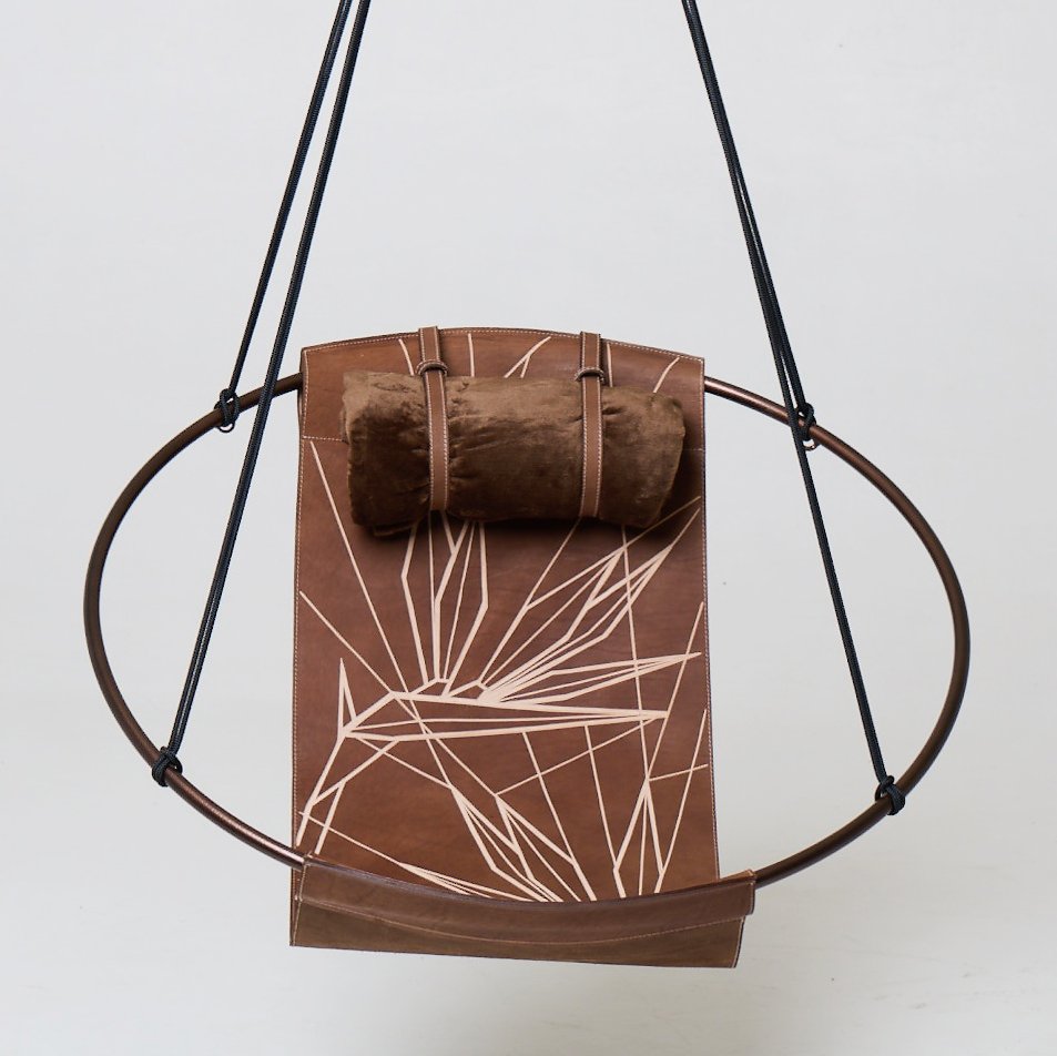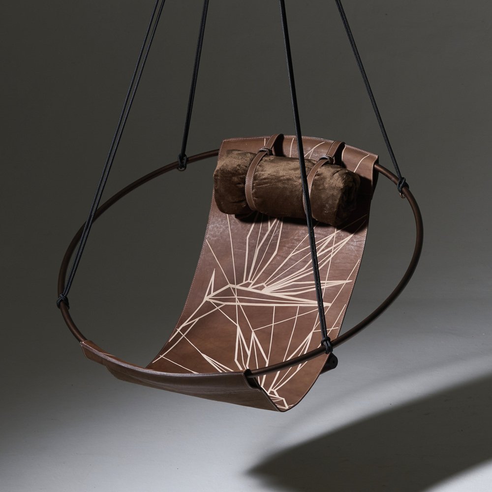 Moderner Minimaler Strelitzia Hängesessel aus Geschnitztem Leder von Joanina Pastoll für Studio Stirling